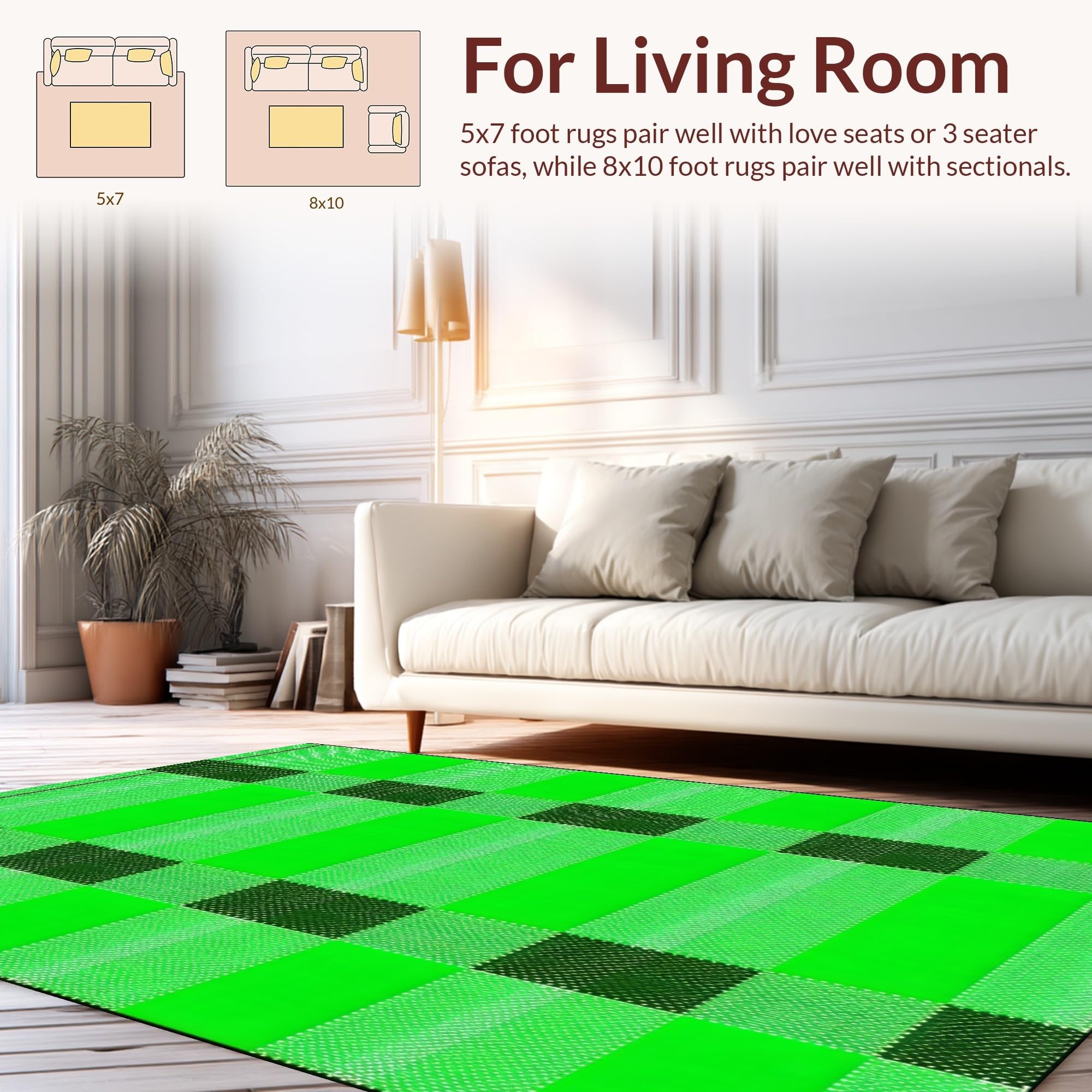 Ultra Soft Area Rug, Non Slip, Stain Resistant, Washable Area Rugs for Living Room, Bedroom, Charming Check Patterned Welcome Mat(Green) Overview:
