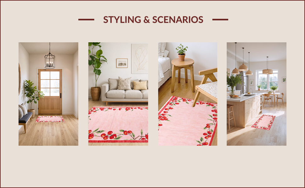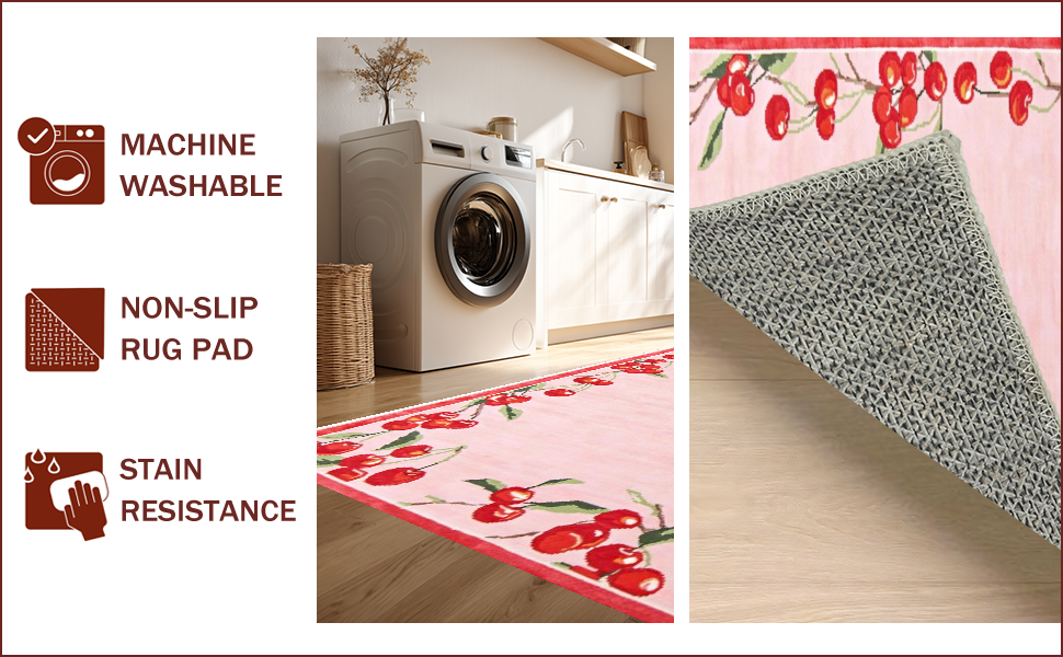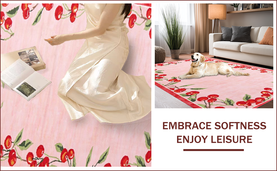 Ultra Soft Area Rug, Non Slip, Stain Resistant, Washable Area Rugs for Living Room, Bedroom, Charming Cherry Blossom Motif(Pink) Overview: