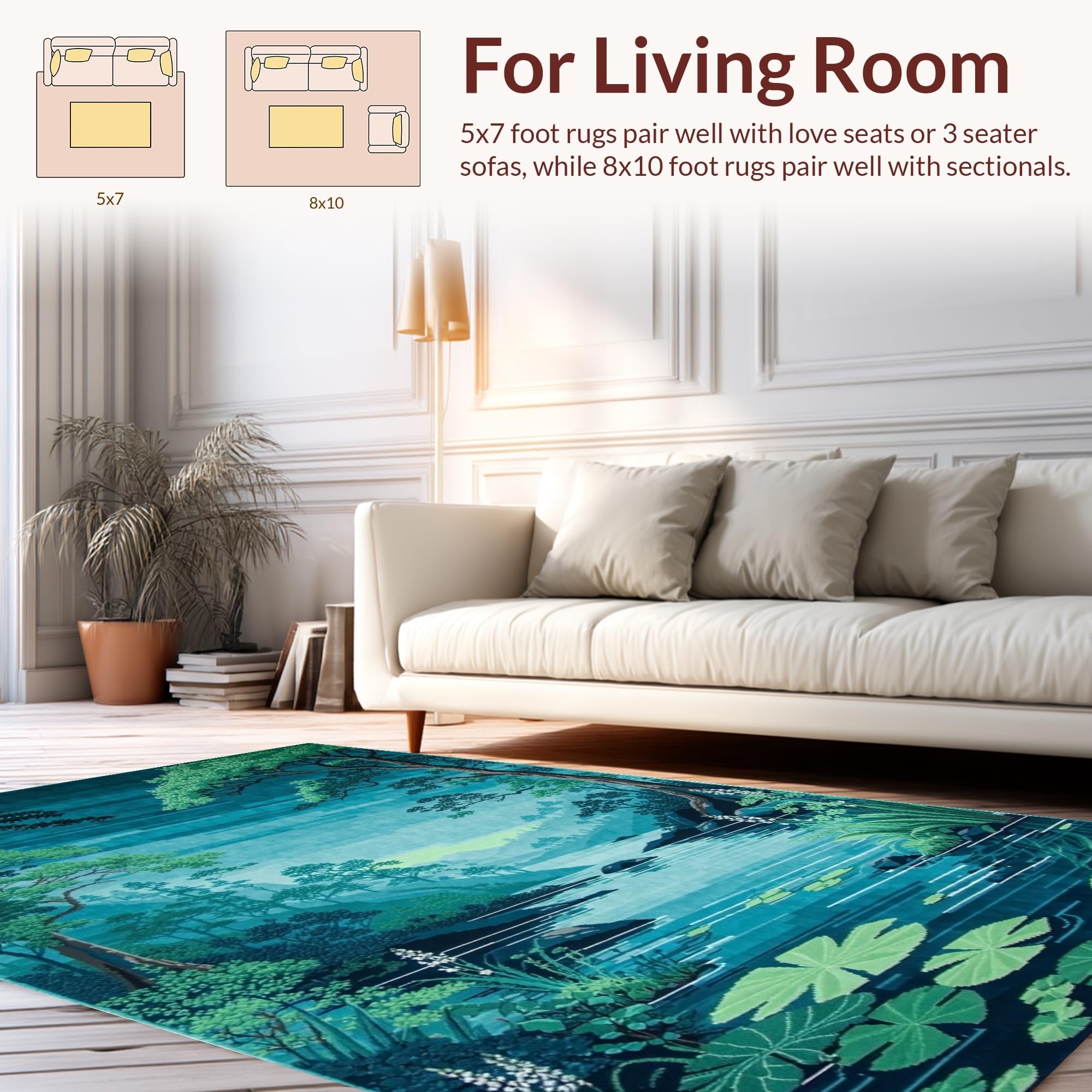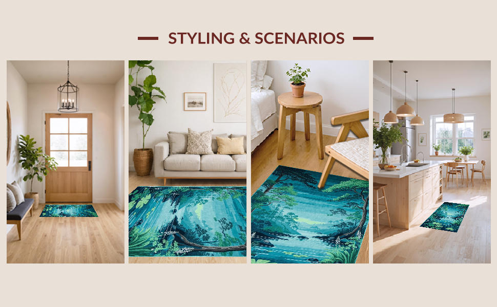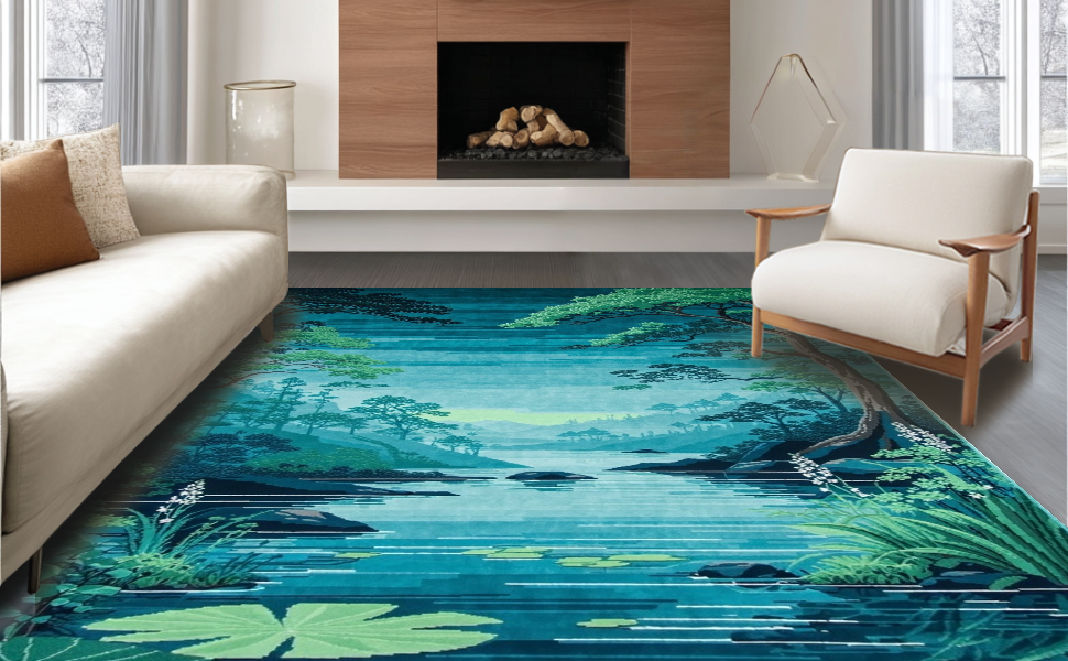 Ultra Soft Area Rug, Non Slip, Stain Resistant, Washable Area Rugs for Living Room, Bedroom, Charming Child-Friendly Water Scene(Blue) Overview: