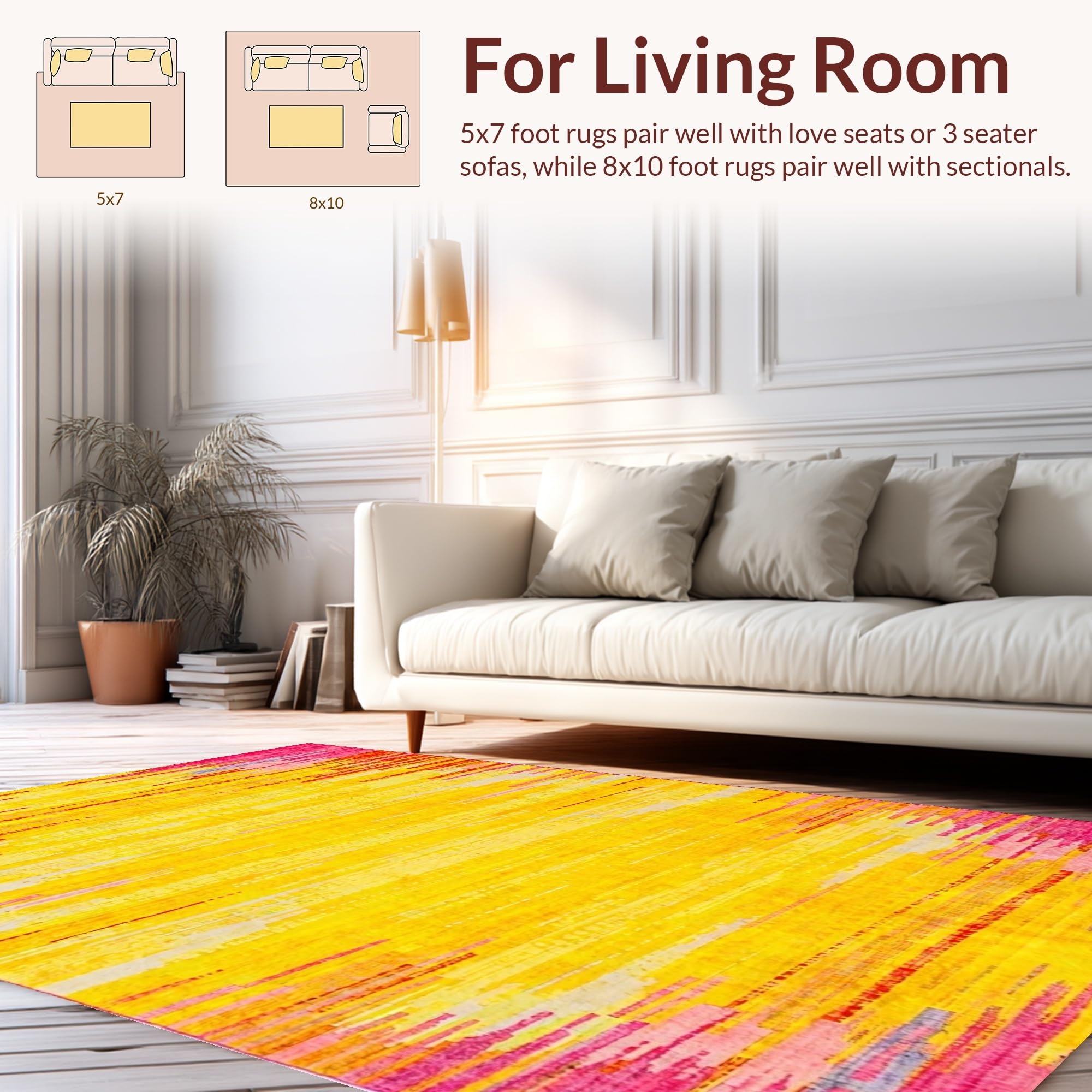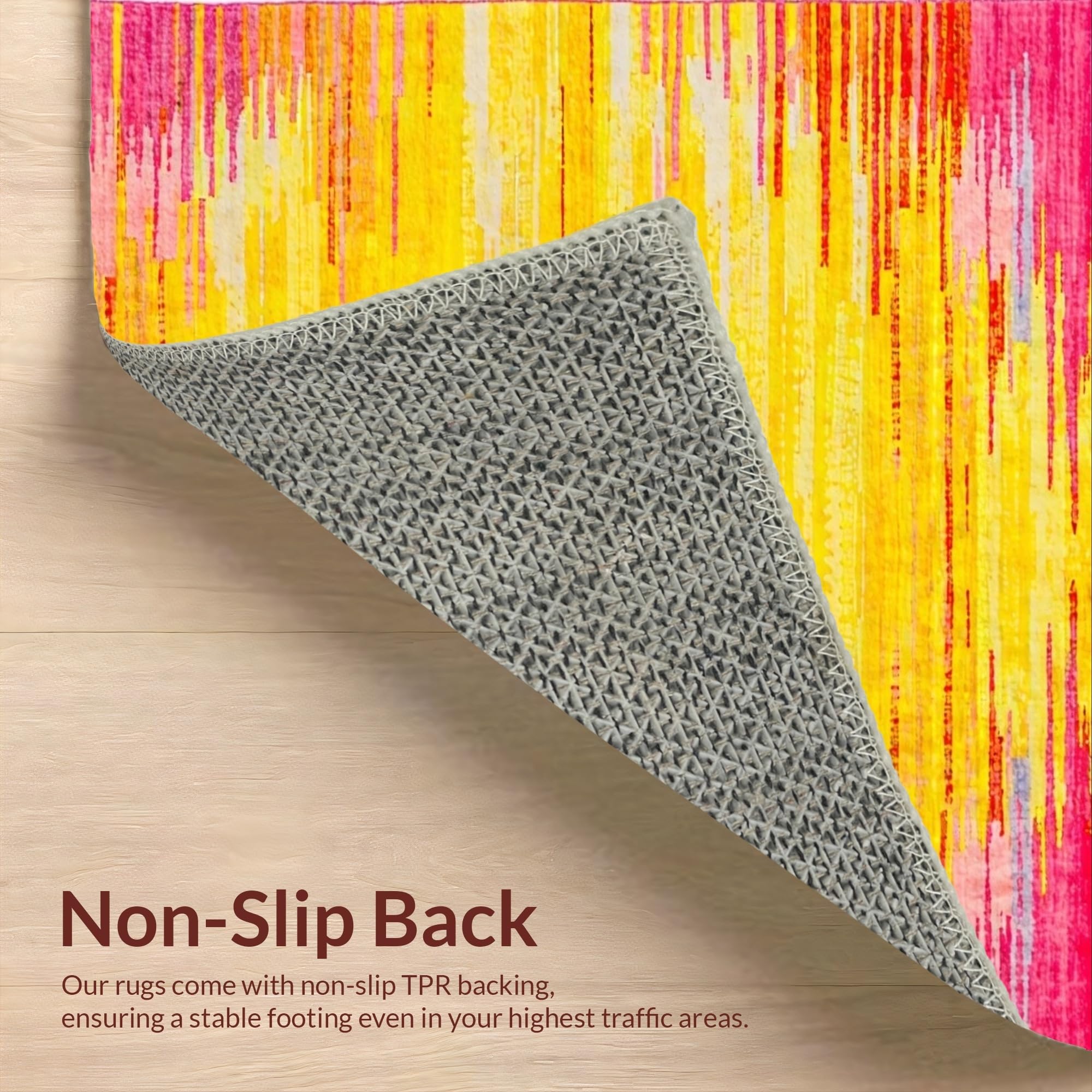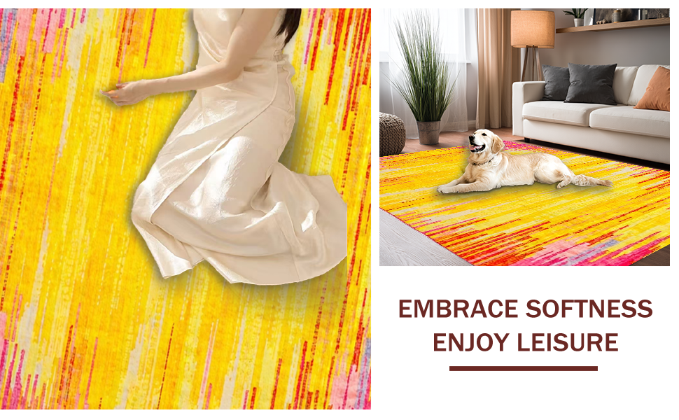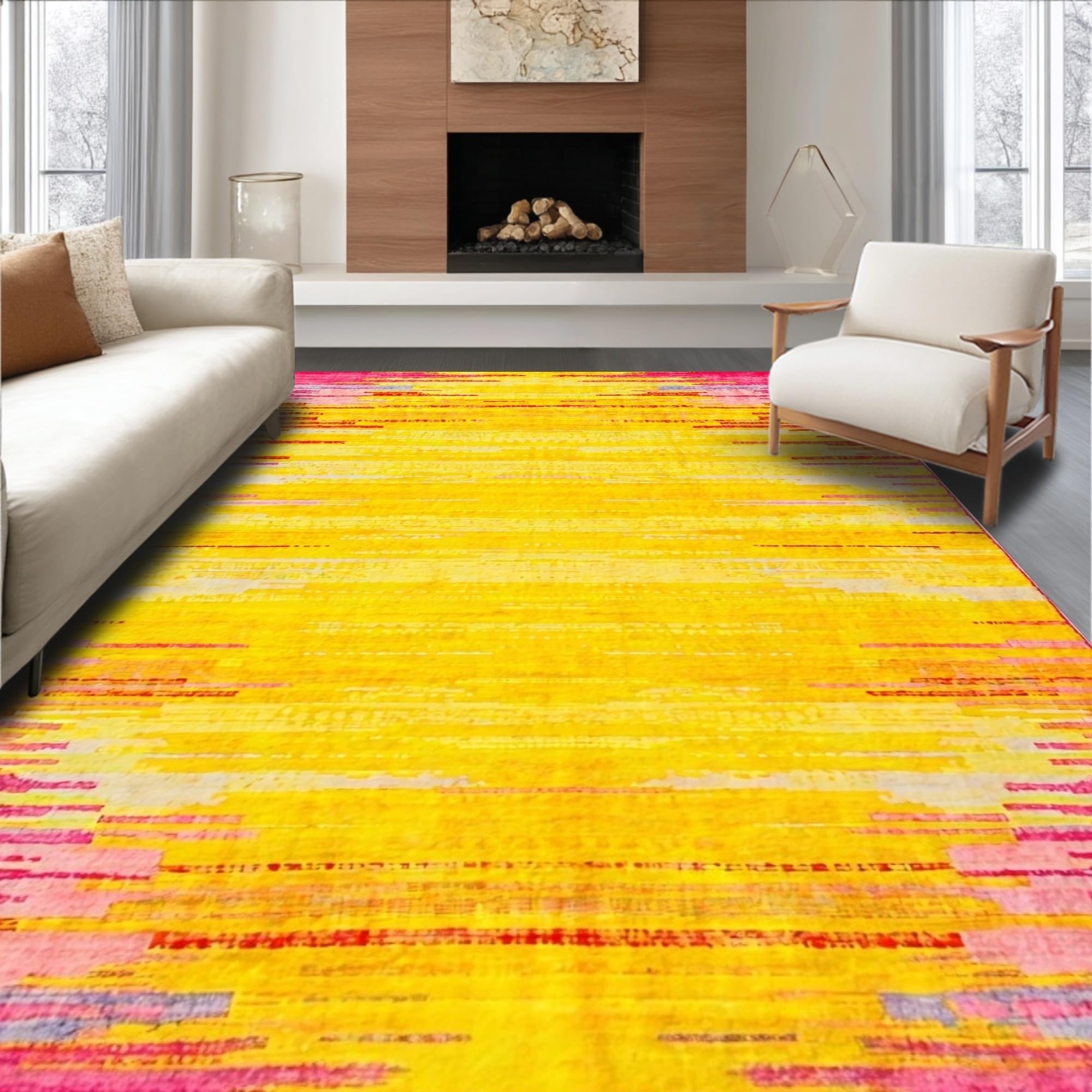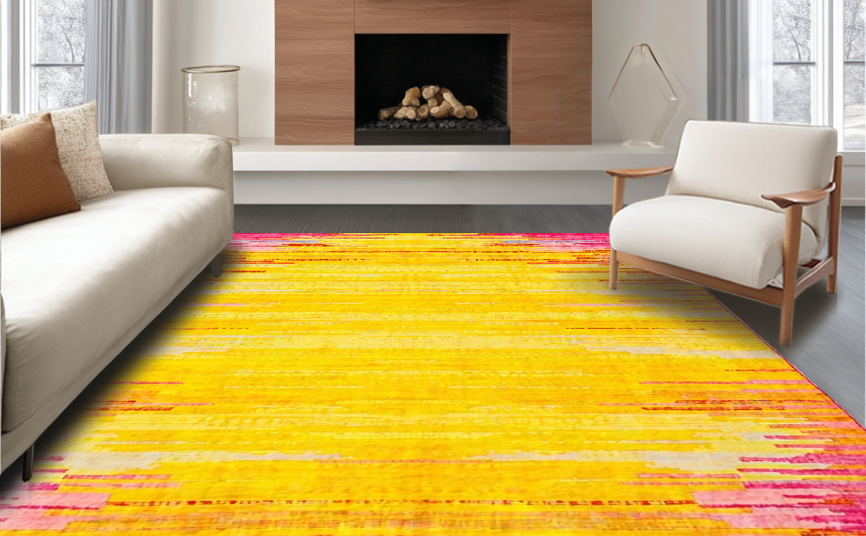 Ultra Soft Area Rug, Non Slip, Stain Resistant, Washable Area Rugs for Living Room, Bedroom, Charming Circular Color Spectrum(Yellow) Overview: