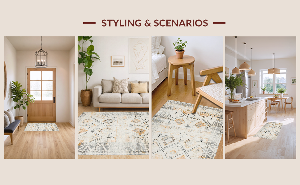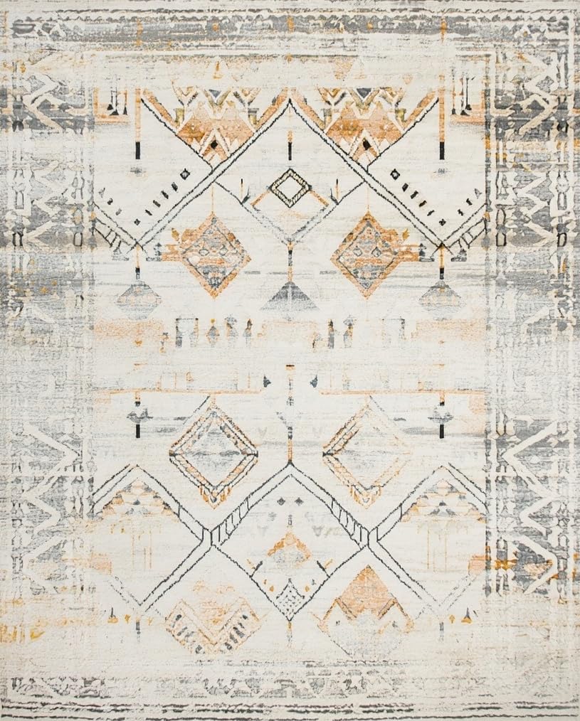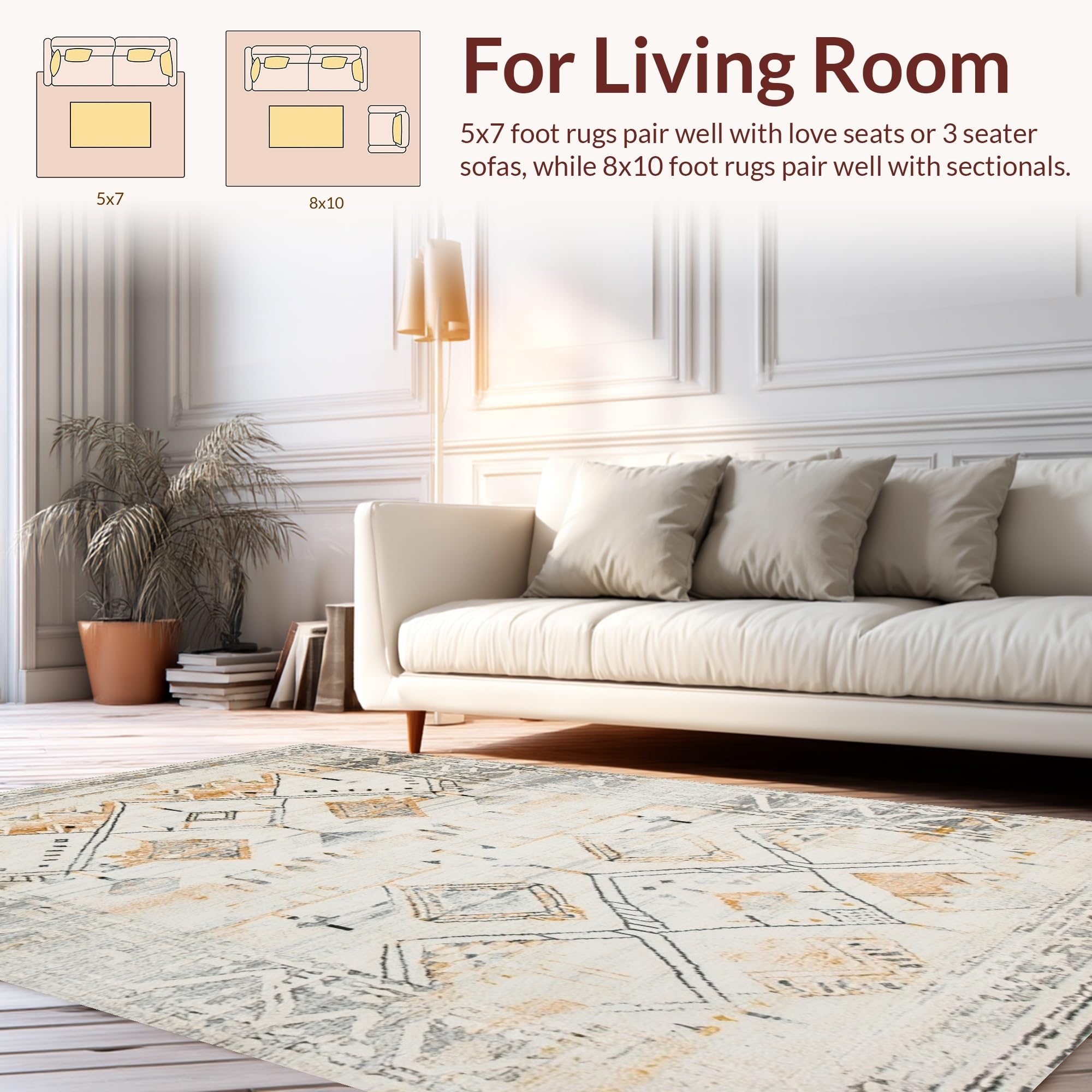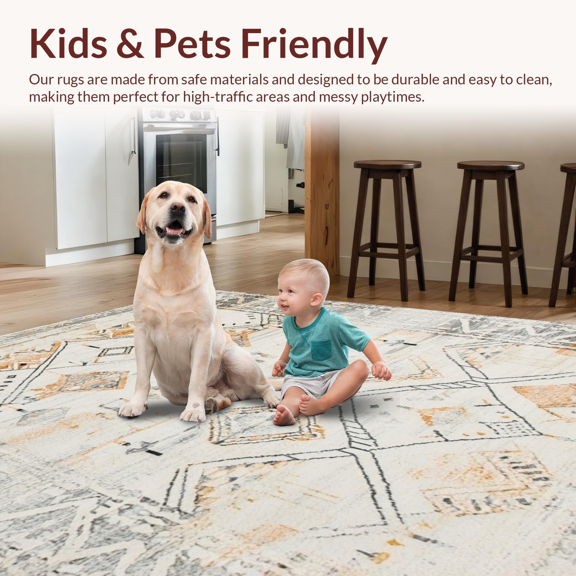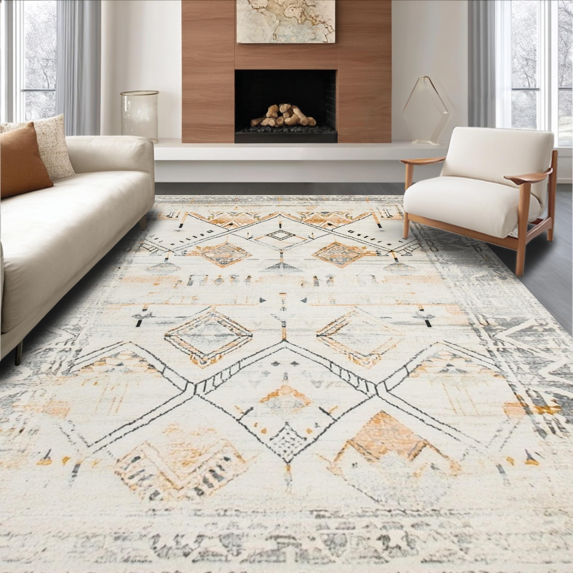Ultra Soft Area Rug, Non Slip, Stain Resistant, Washable Area Rugs for Living Room, Bedroom, Charming Classic Medallion Theme(Ivory) Overview: