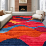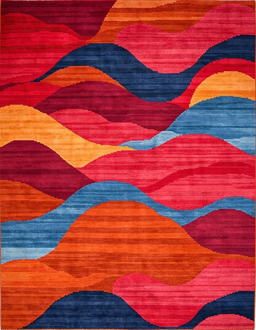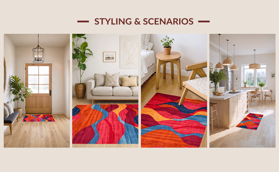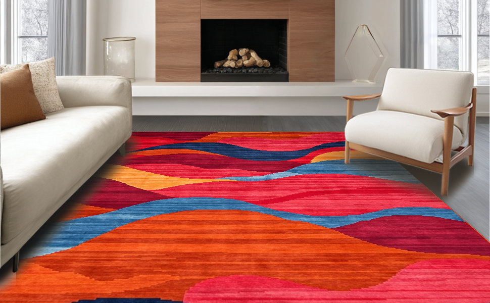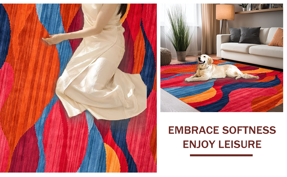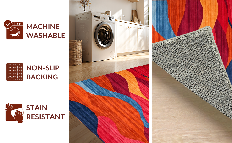 Ultra Soft Area Rug, Non Slip, Stain Resistant, Washable Area Rugs for Living Room, Bedroom, Charming Colorblock Retro Style(Red) Overview: