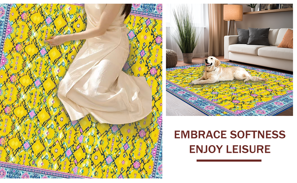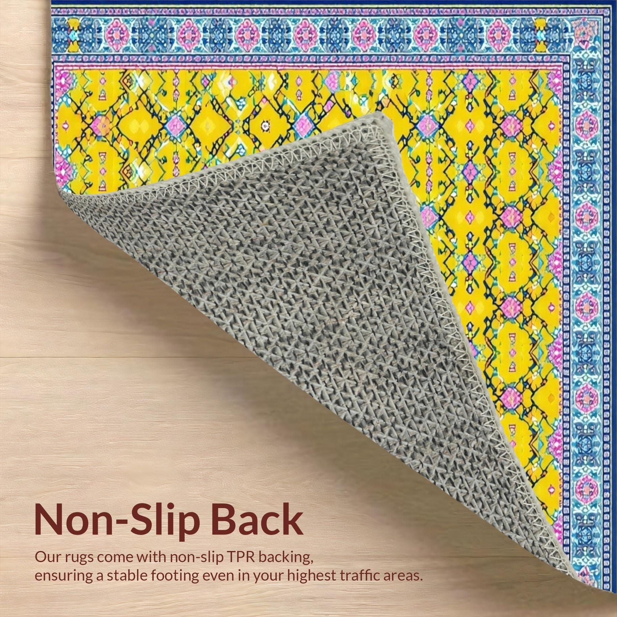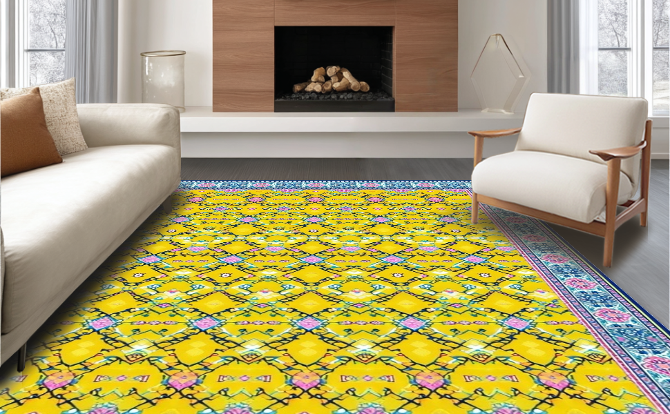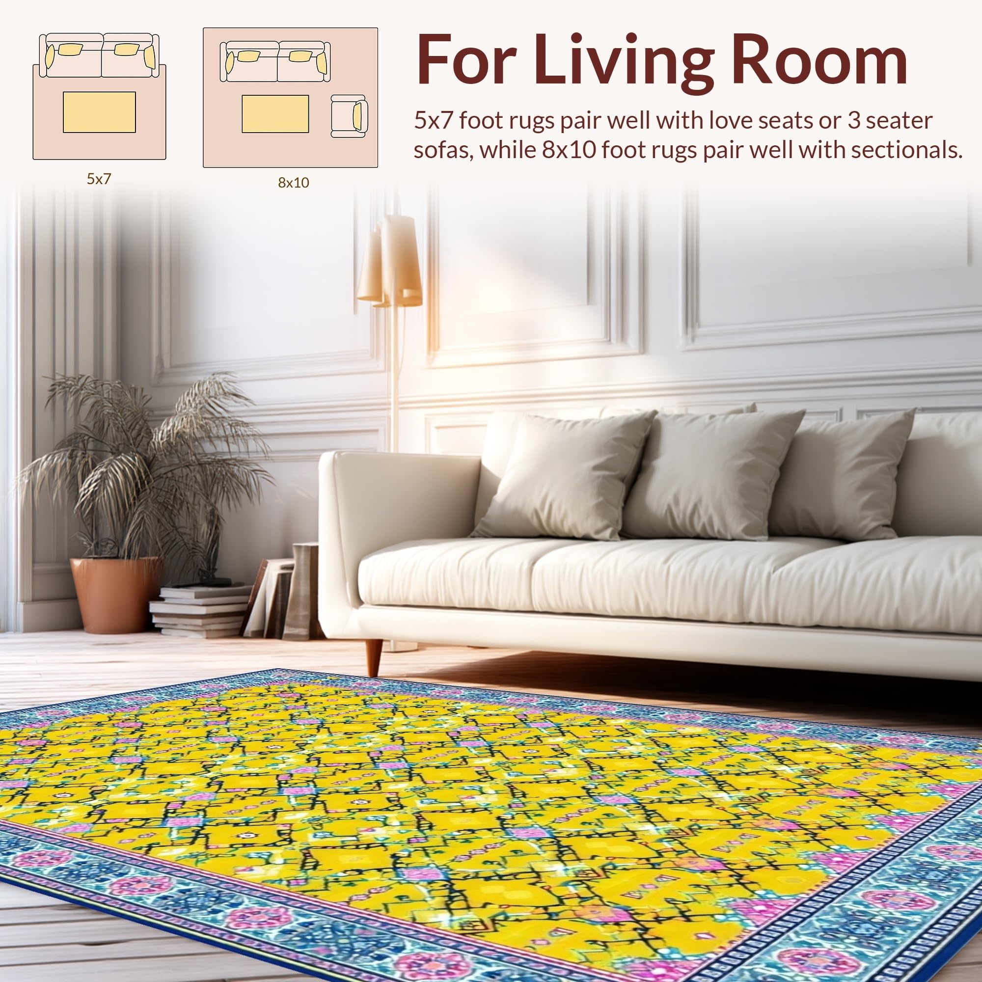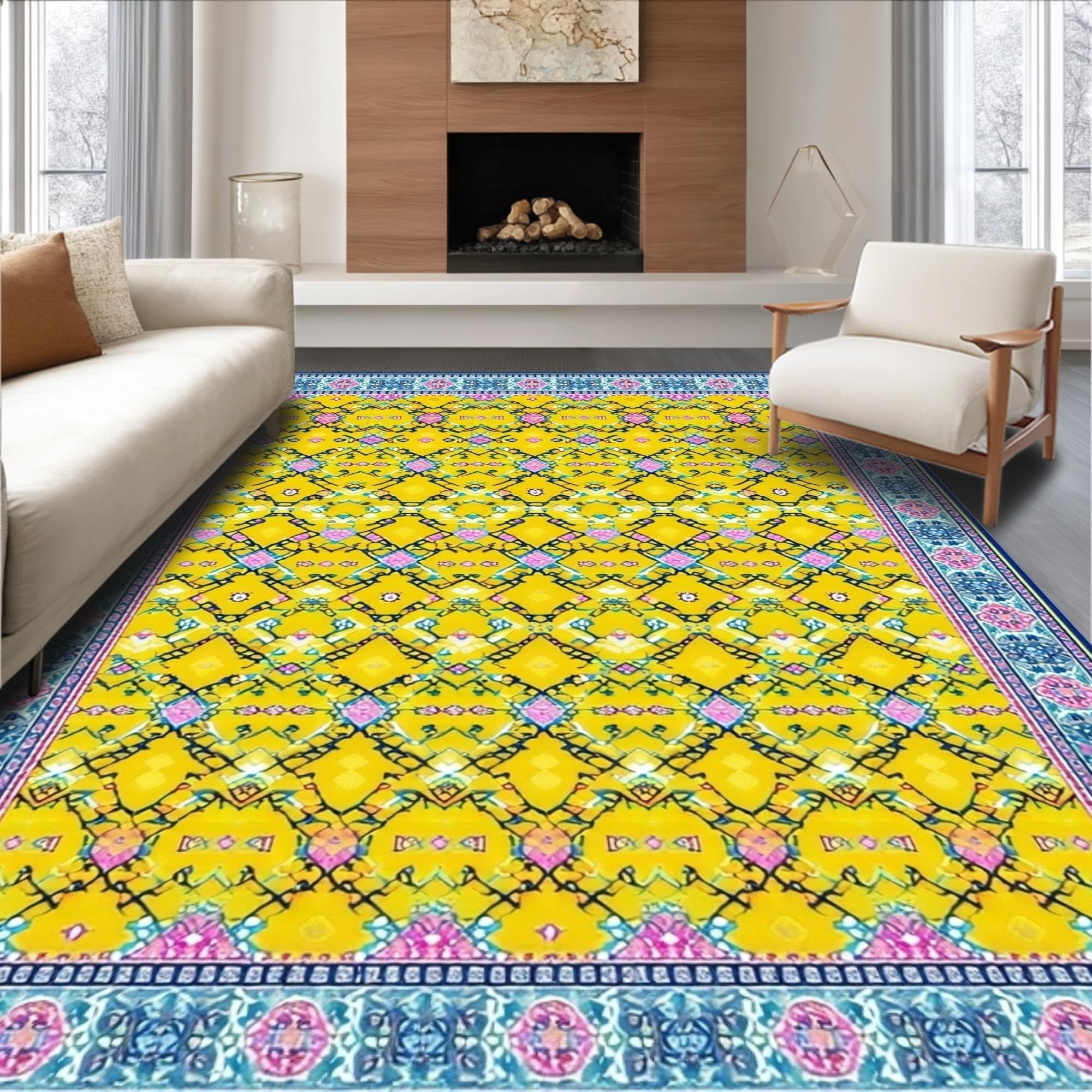 Ultra Soft Area Rug, Non Slip, Stain Resistant, Washable Area Rugs for Living Room, Bedroom, Charming Colorful Diamond Lattice(Yellow) Overview: