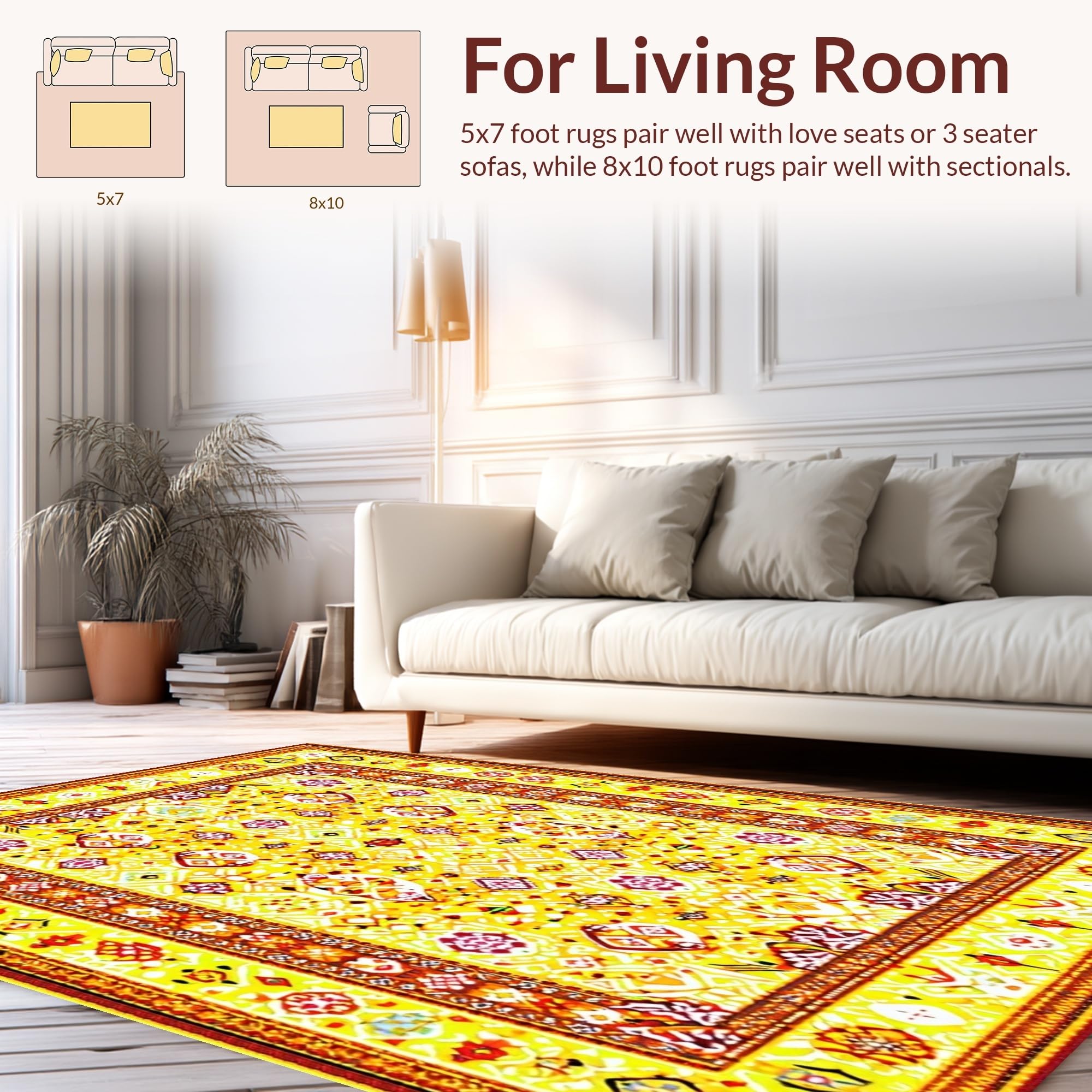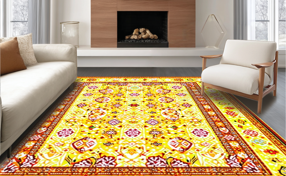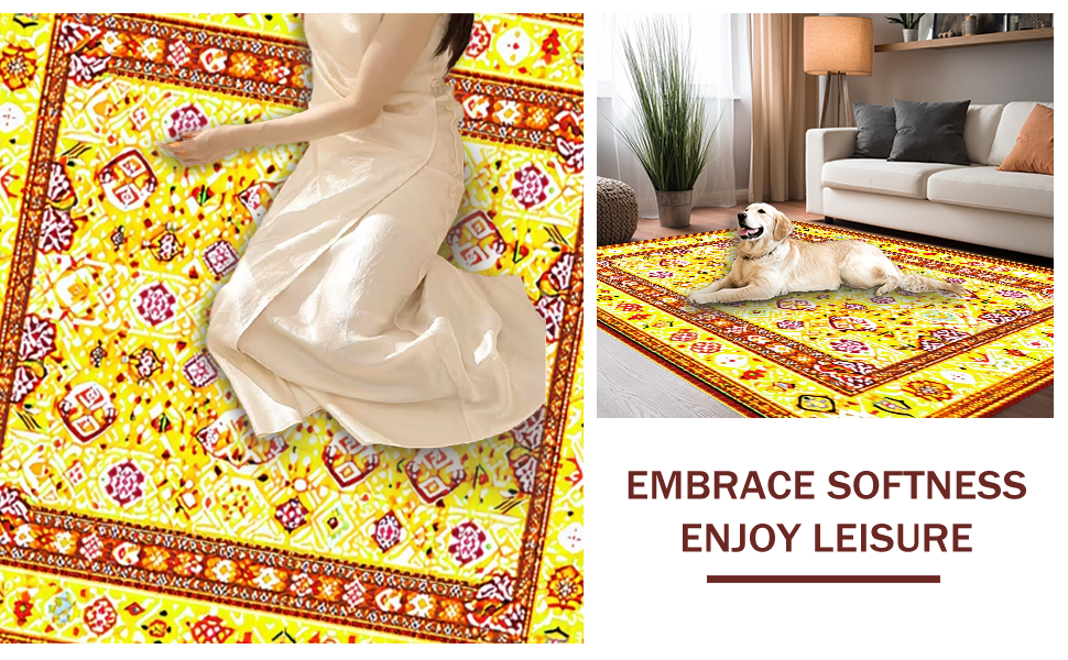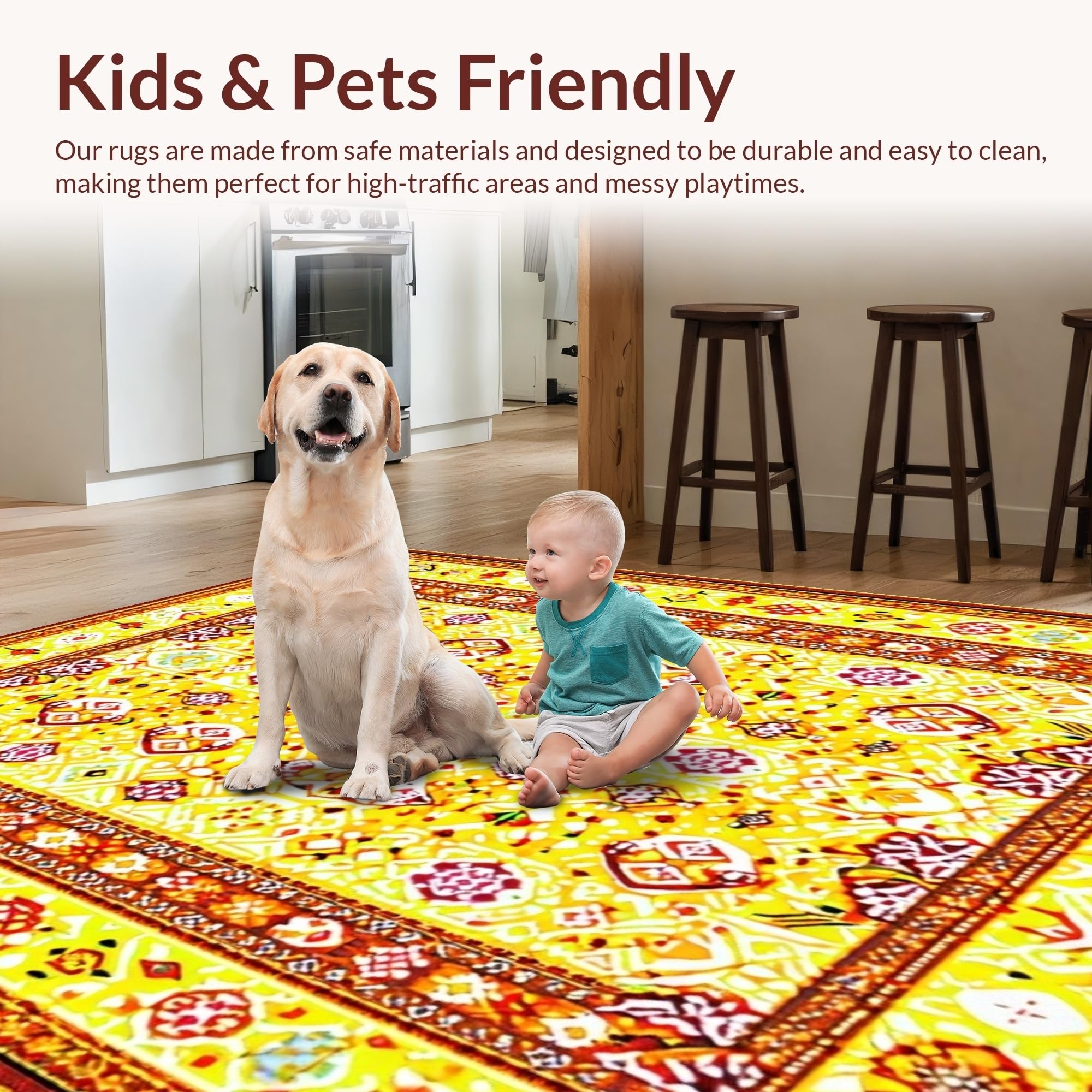 Ultra Soft Area Rug, Non Slip, Stain Resistant, Washable Area Rugs for Living Room, Bedroom, Charming Colorful Easter Design(Yellow) Overview: