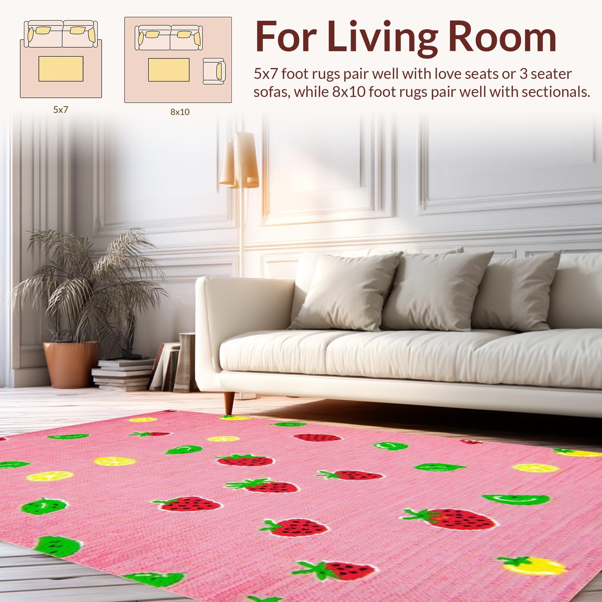 Ultra Soft Area Rug, Non Slip, Stain Resistant, Washable Area Rugs for Living Room, Bedroom, Charming Colorful Kitchen Accent(Pink) Overview: