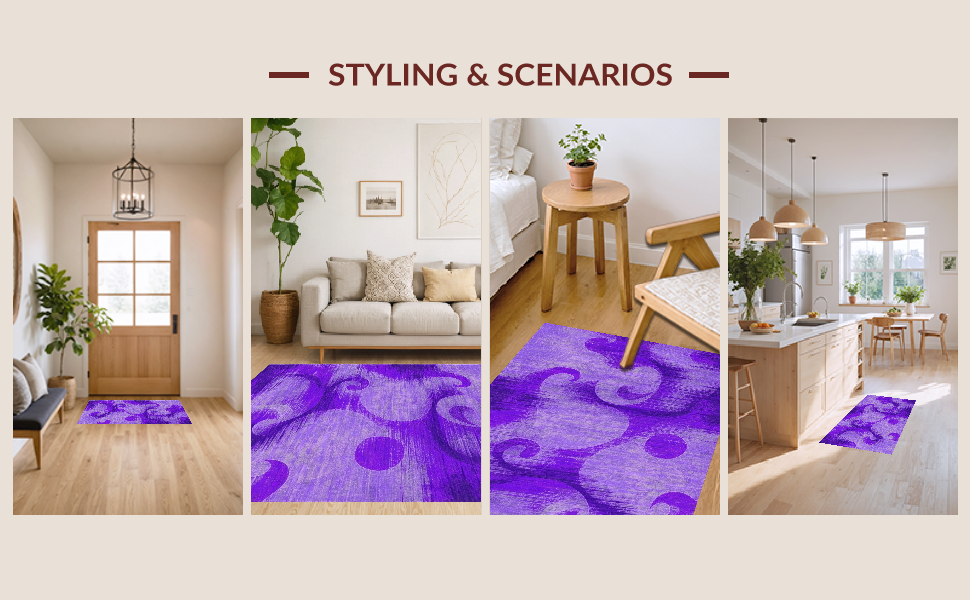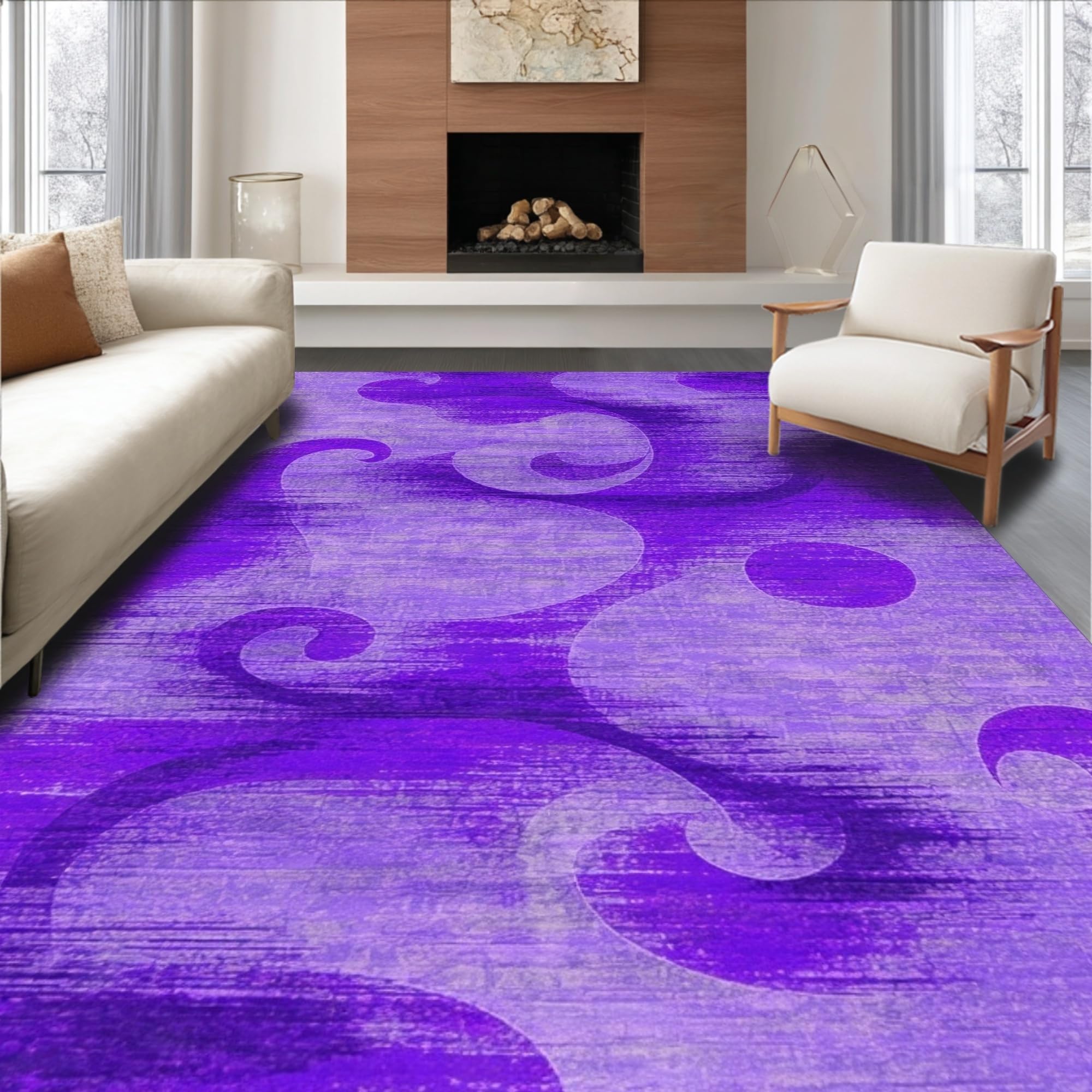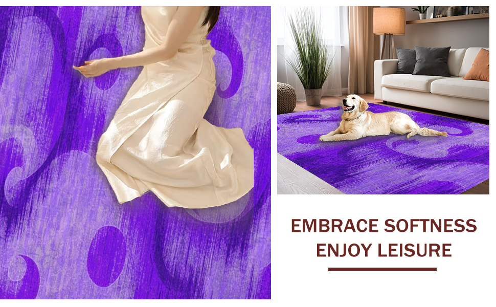 Ultra Soft Area Rug, Non Slip, Stain Resistant, Washable Area Rugs for Living Room, Bedroom, Charming Colorful Ripple Effect(Purple) Overview: