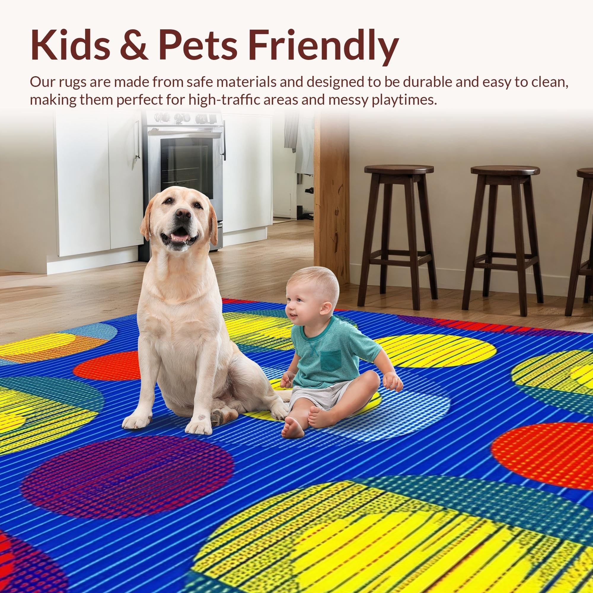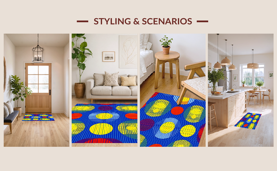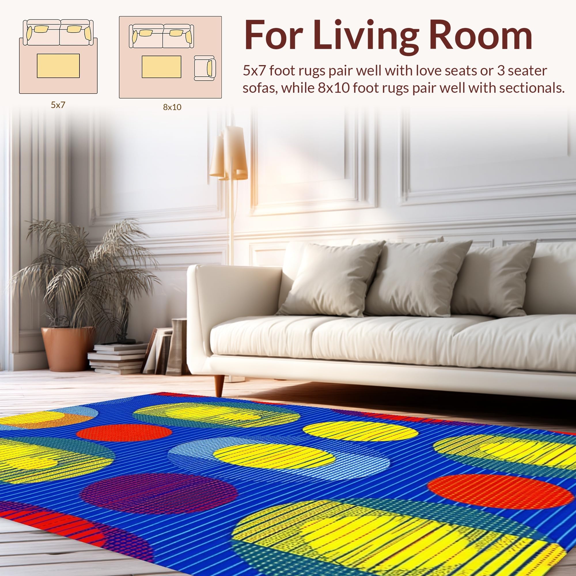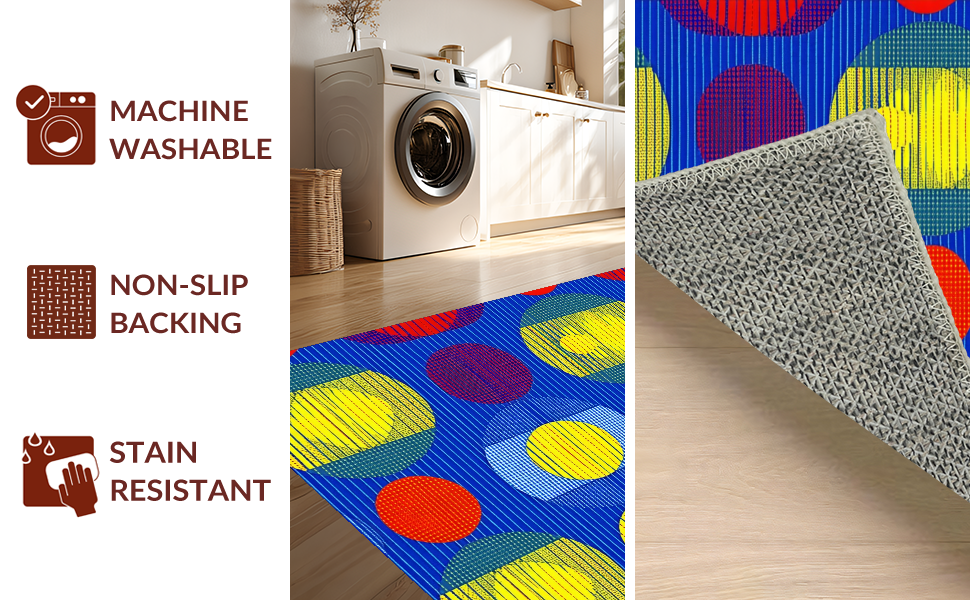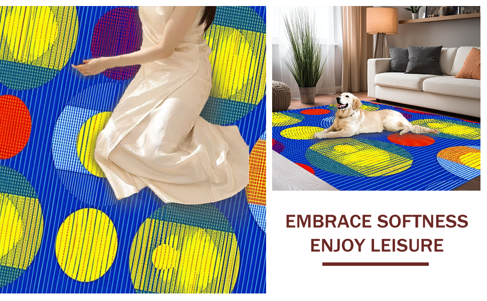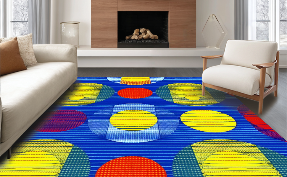 Ultra Soft Area Rug, Non Slip, Stain Resistant, Washable Area Rugs for Living Room, Bedroom, Charming Colorful Sphere Inspired Style(Blue) Overview: