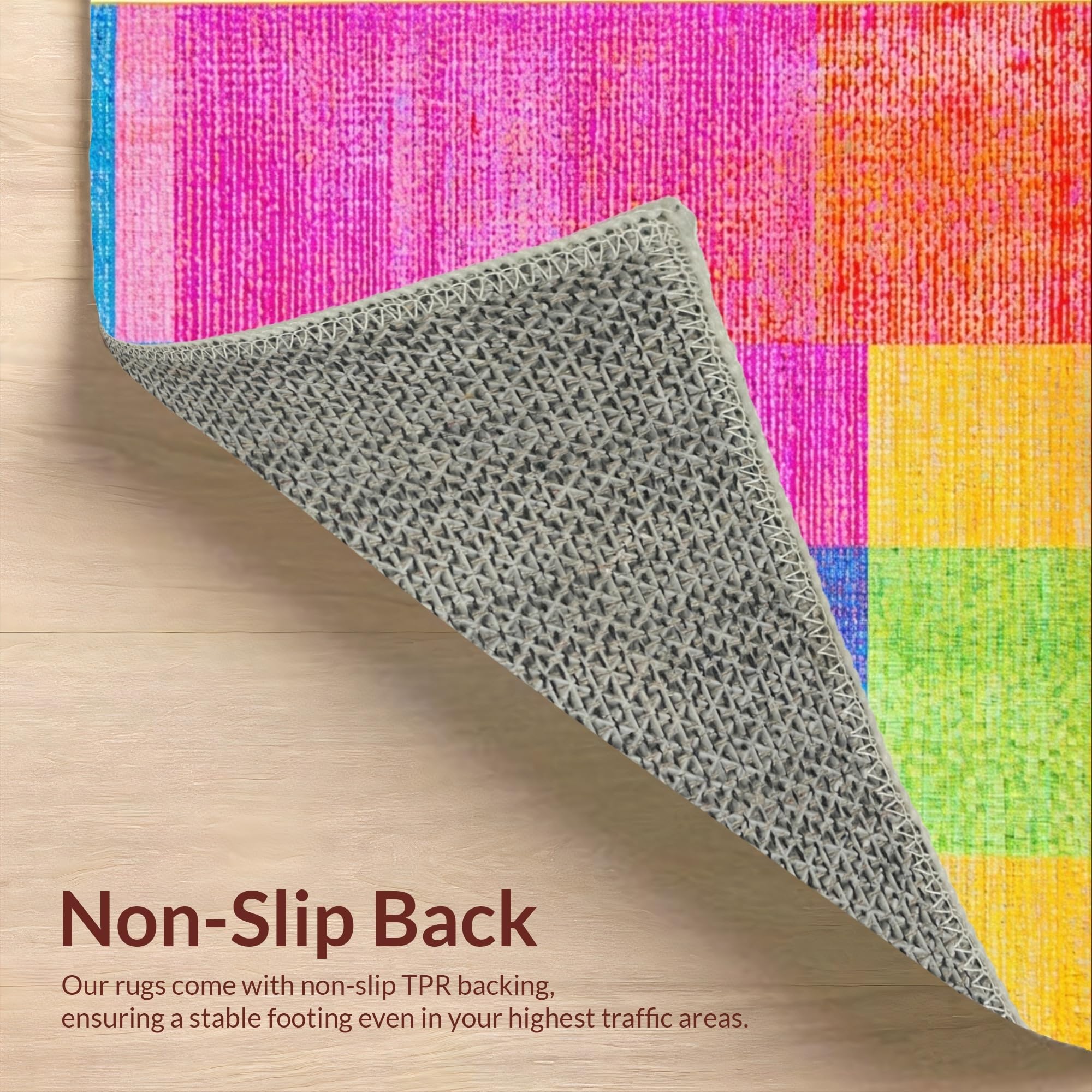 Ultra Soft Area Rug, Non Slip, Stain Resistant, Washable Area Rugs for Living Room, Bedroom, Charming Colorful Stripe Aesthetic(Red) Overview: