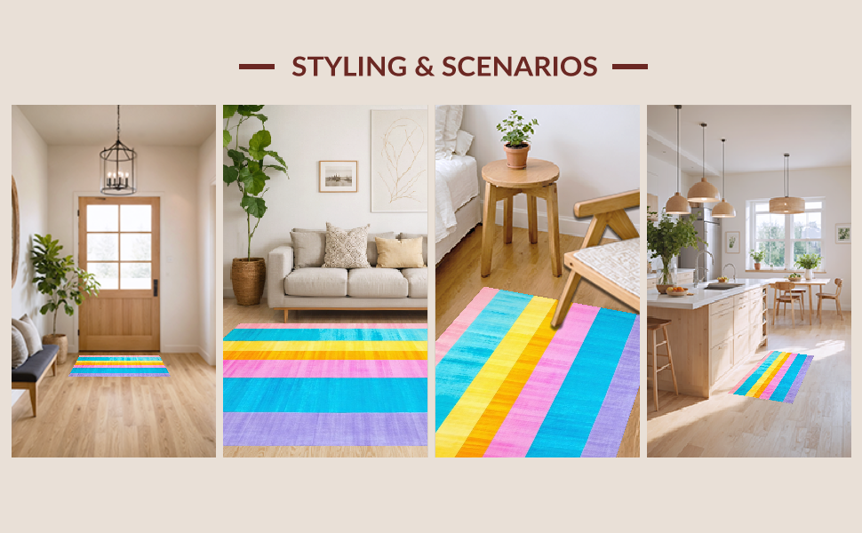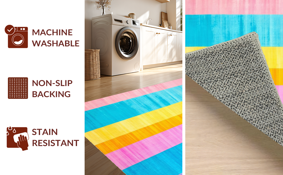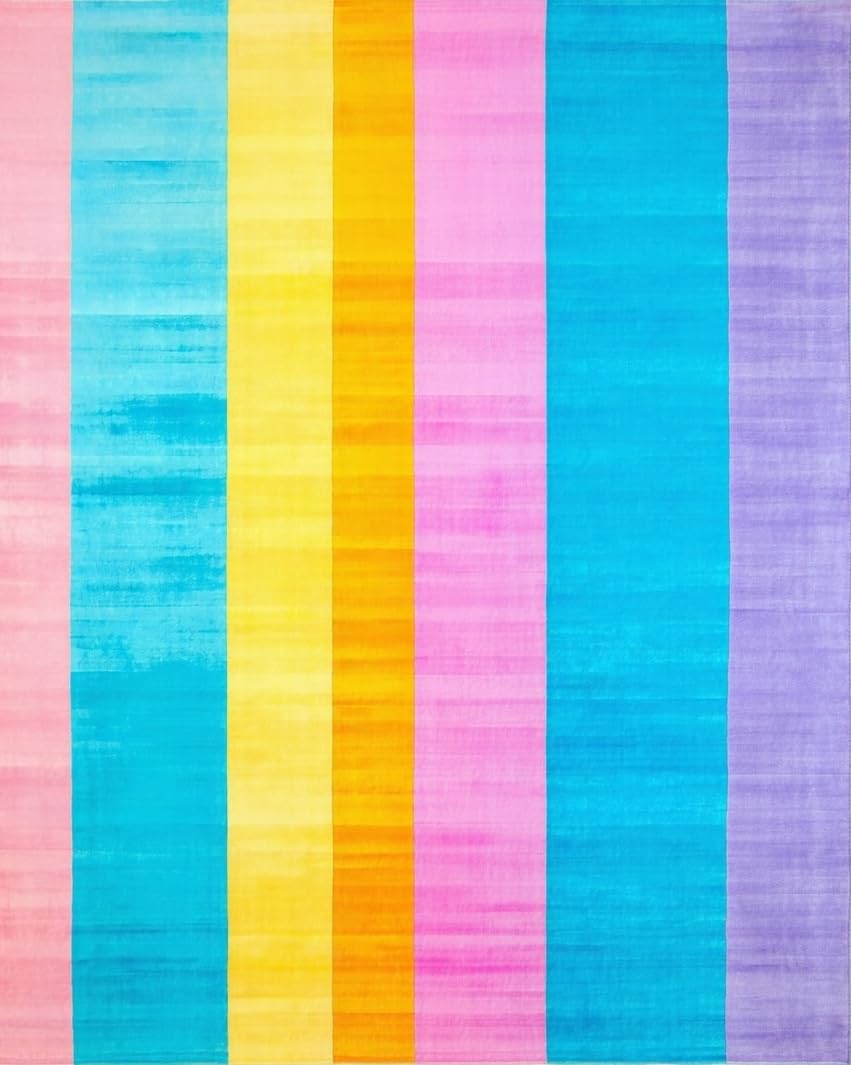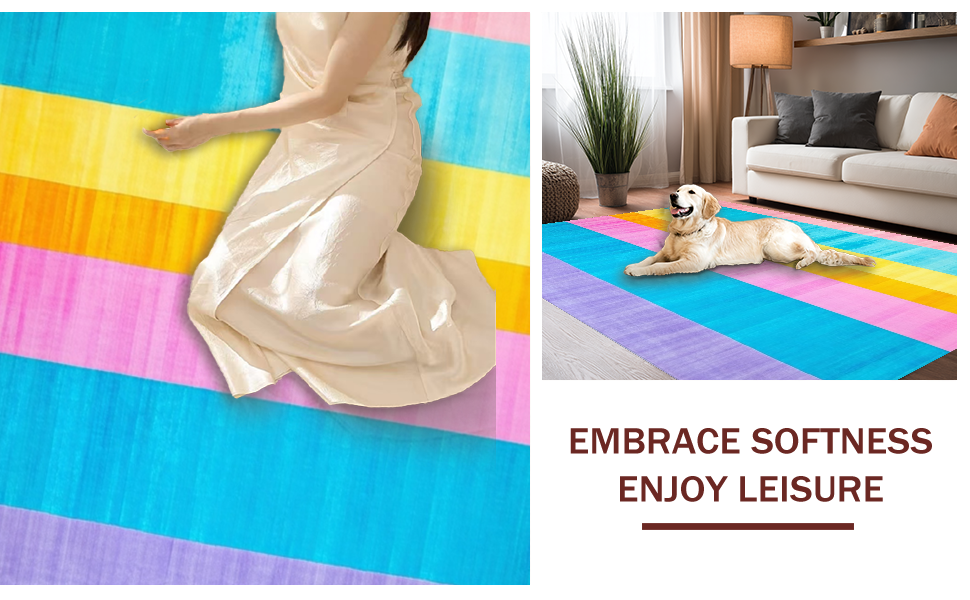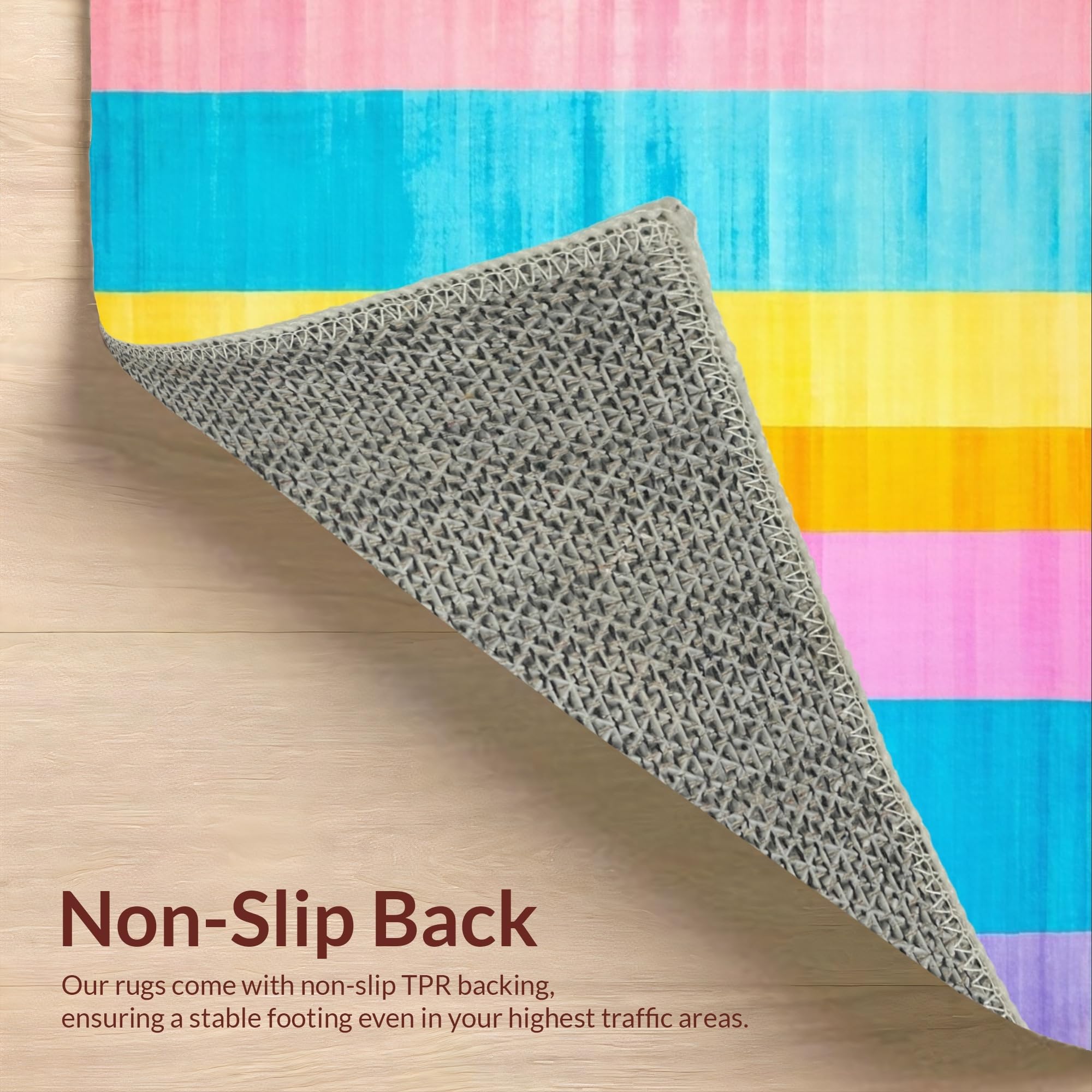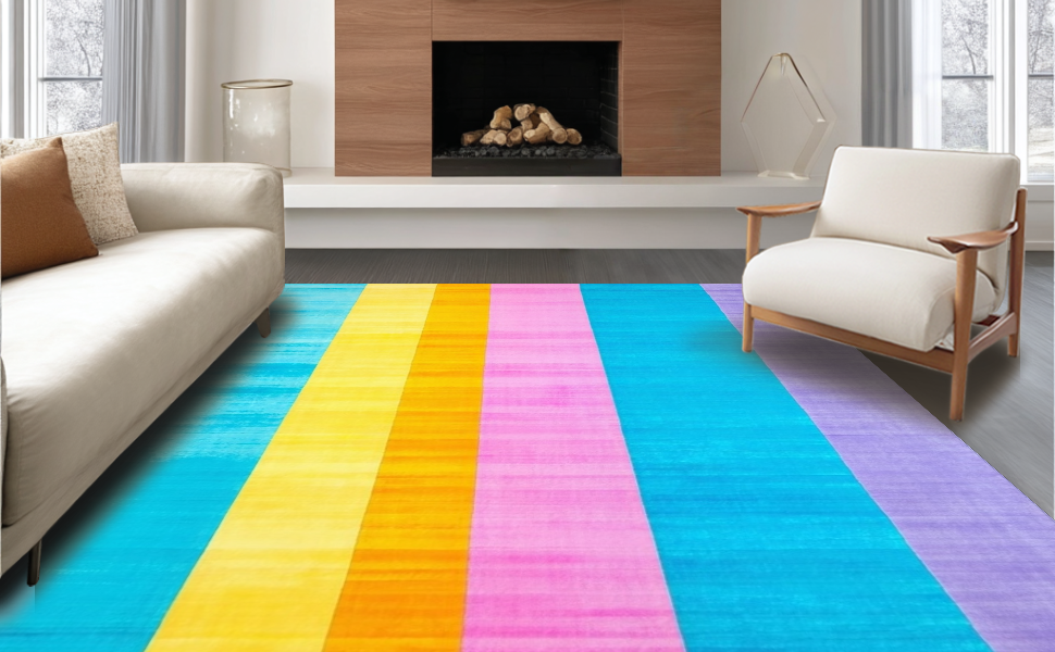Ultra Soft Area Rug, Non Slip, Stain Resistant, Washable Area Rugs for Living Room, Bedroom, Charming Colorful Striped Visual Delight(Blue) Overview: