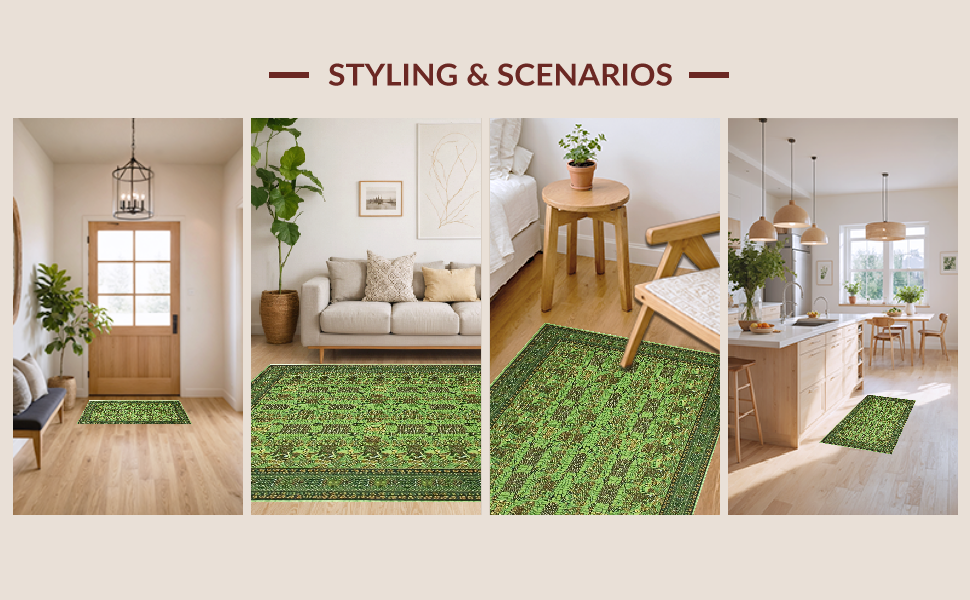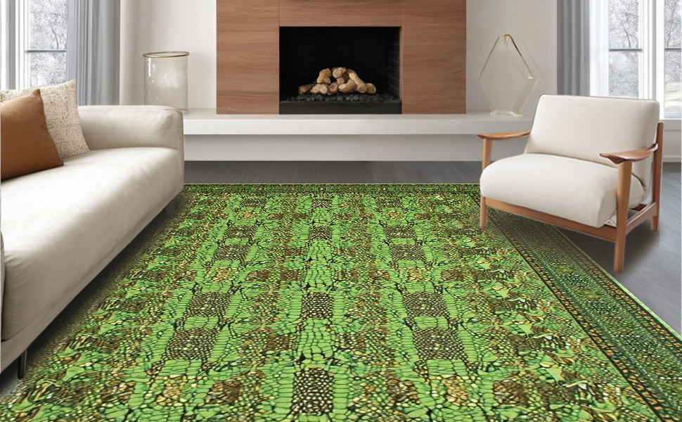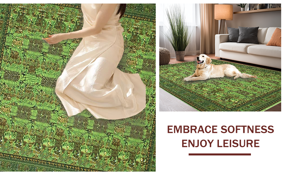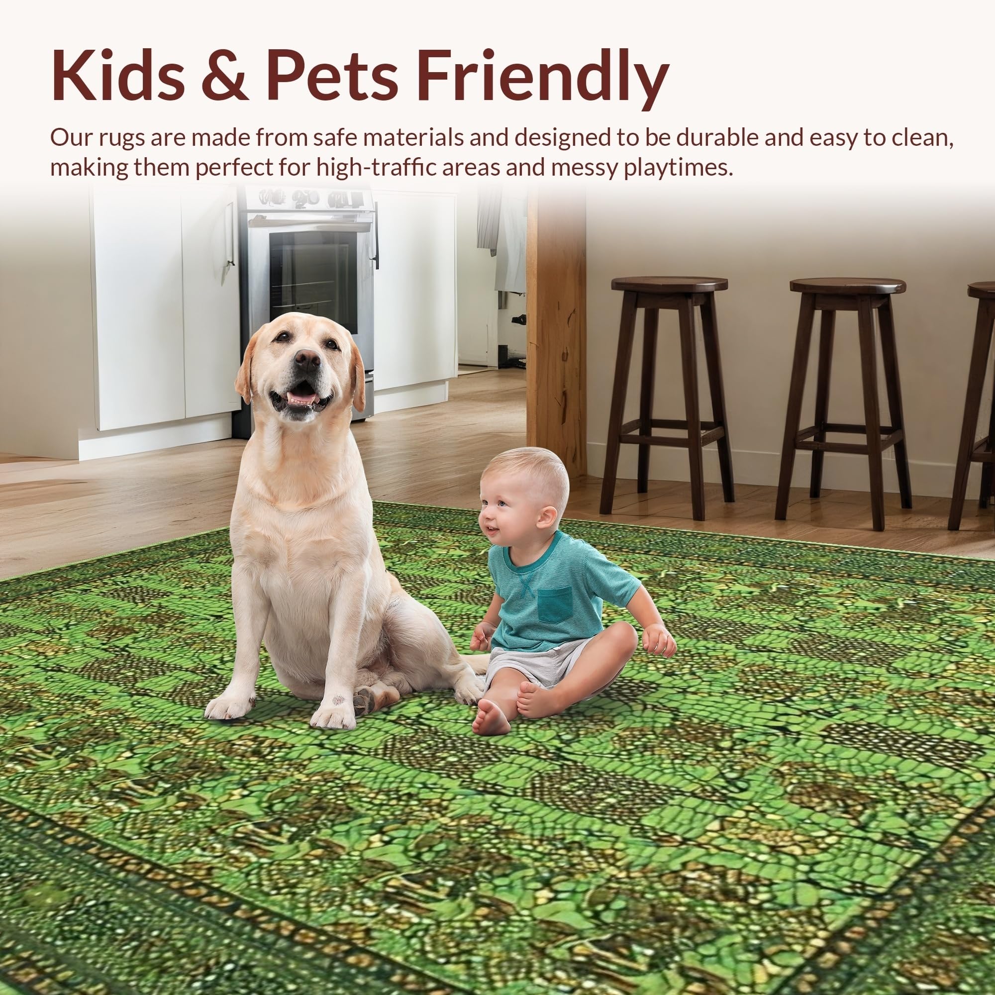 Ultra Soft Area Rug, Non Slip, Stain Resistant, Washable Area Rugs for Living Room, Bedroom, Charming Colorful Wildlife Design(Green) Overview: