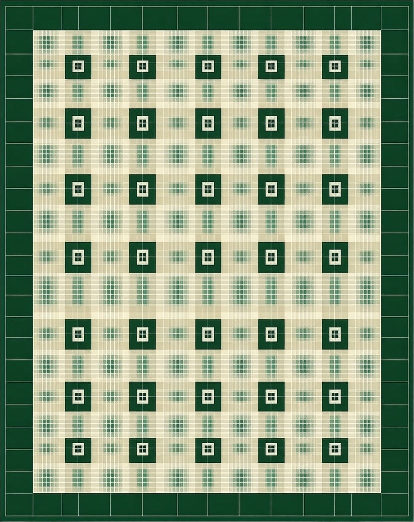 Charming Cottage with Beige Canvas and Green Checkerboard Accents(Green)