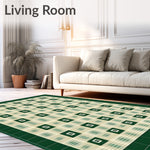 Flatwoven High Traffic Area Rug, Charming Cottage with Beige Canvas and Green Checkerboard Accents, Non Slip, Stain Resistant, Washable Area Rugs for Living Room, Bedroom (Green) Overview: