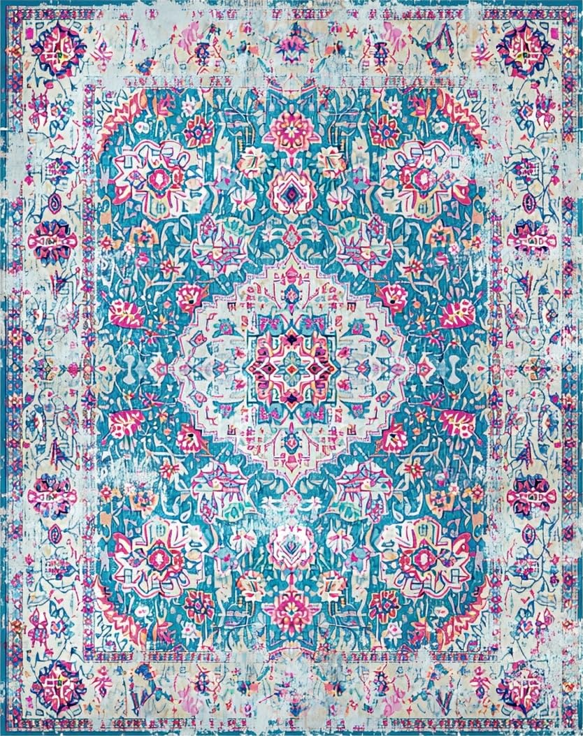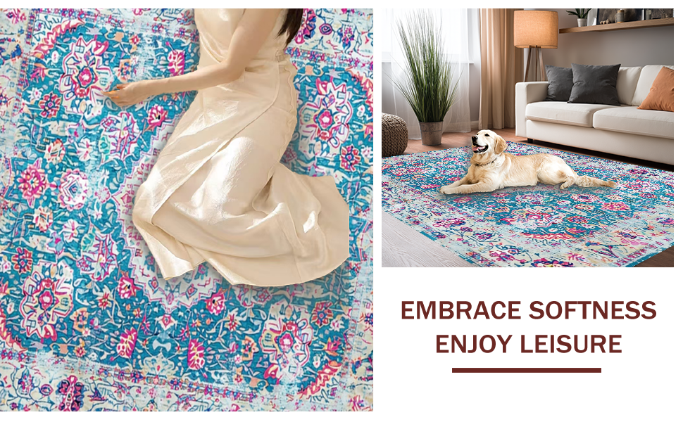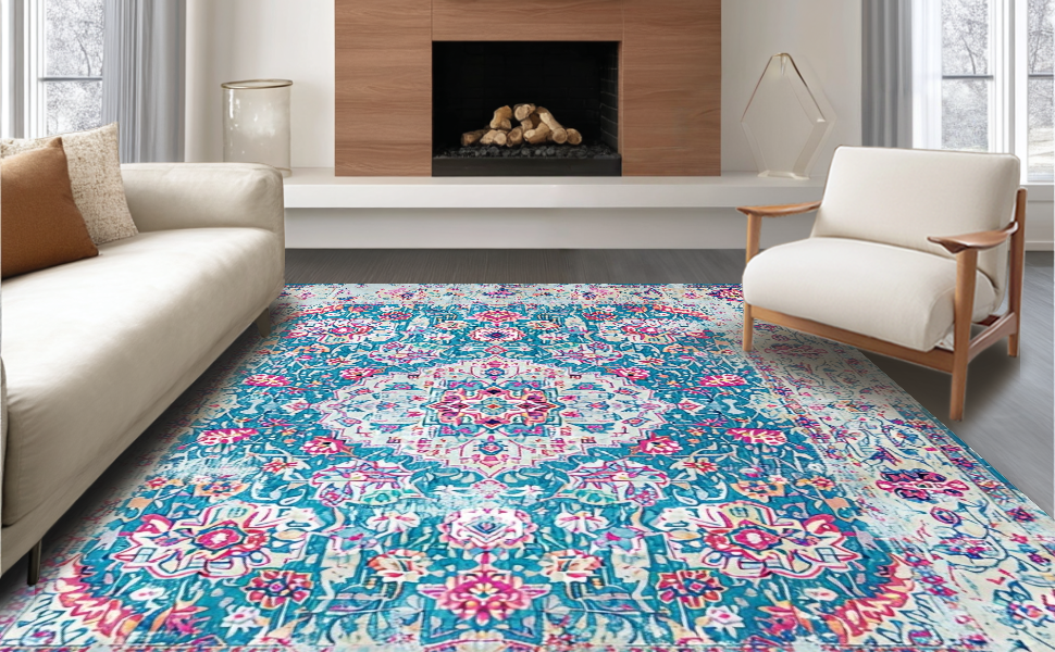 Ultra Soft Area Rug, Non Slip, Stain Resistant, Washable Area Rugs for Living Room, Bedroom, Charming Cozy Trellis Aesthetic(Blue) Overview: