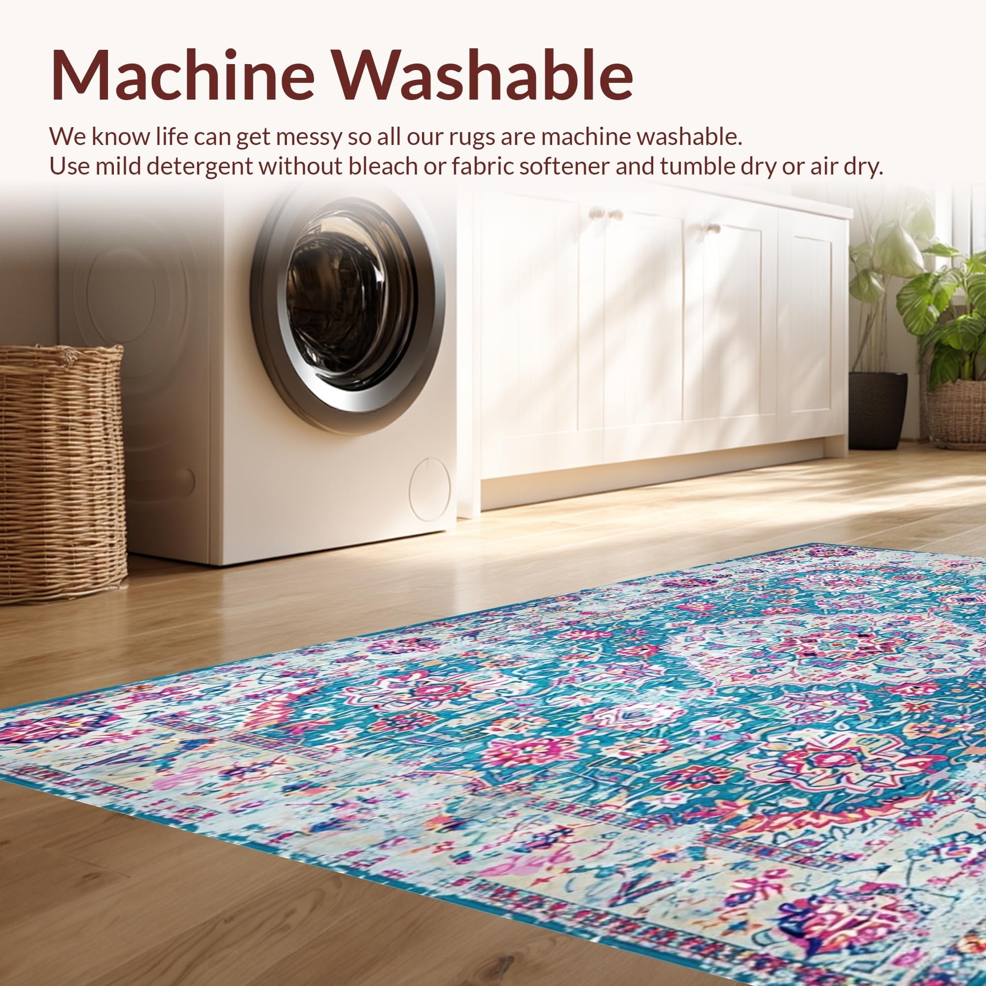 - Machine Washable: Our rugs can be easily thrown in the wash machine.