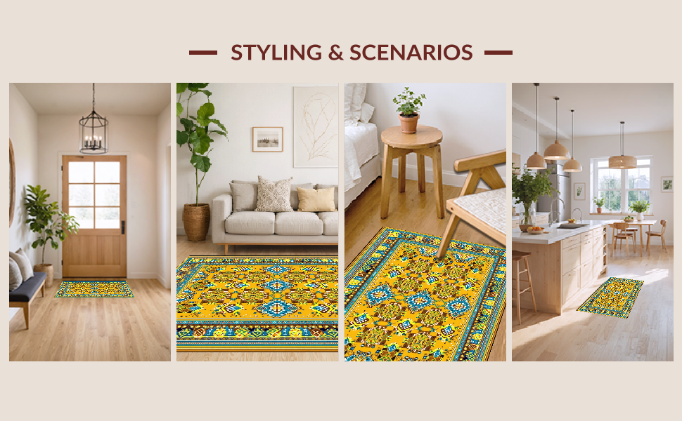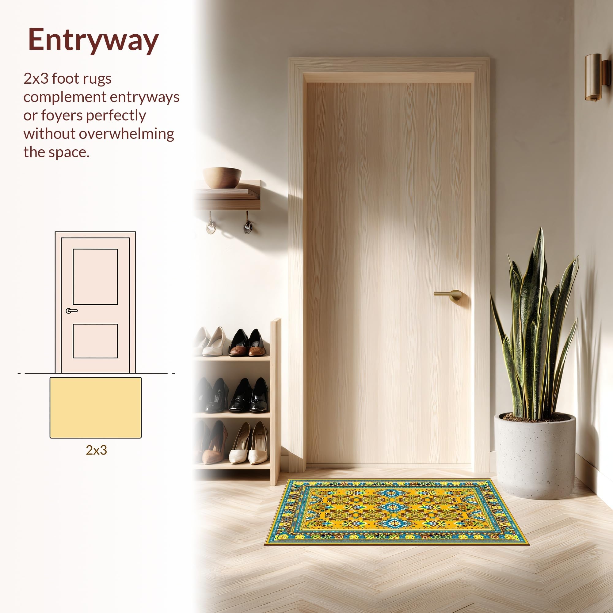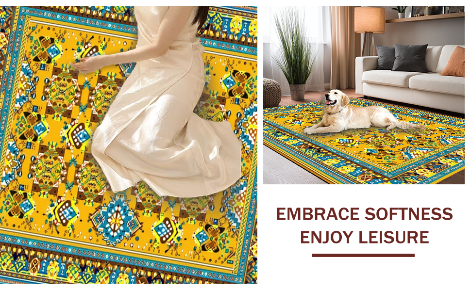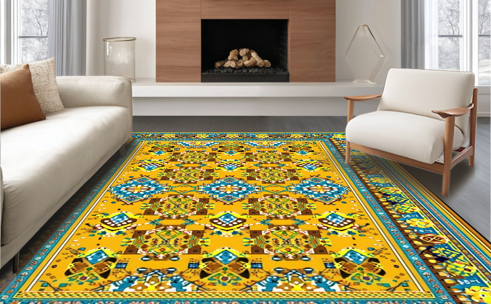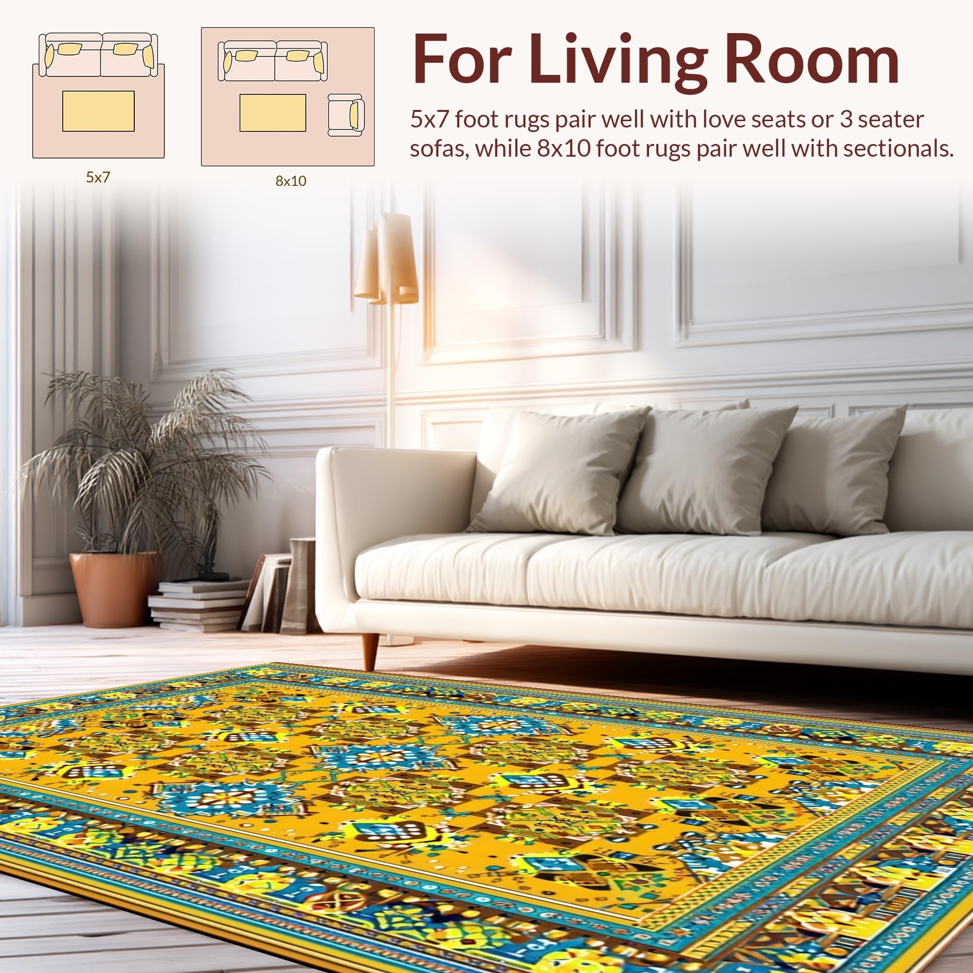 Ultra Soft Area Rug, Non Slip, Stain Resistant, Washable Area Rugs for Living Room, Bedroom, Charming Earthy Floral Design(Yellow) Overview: