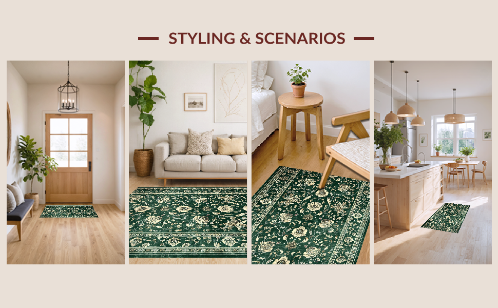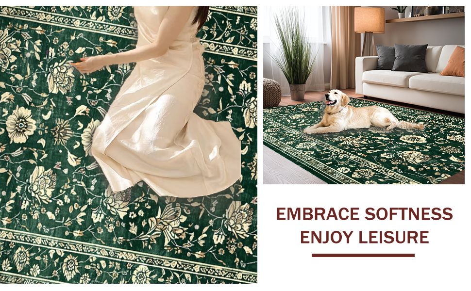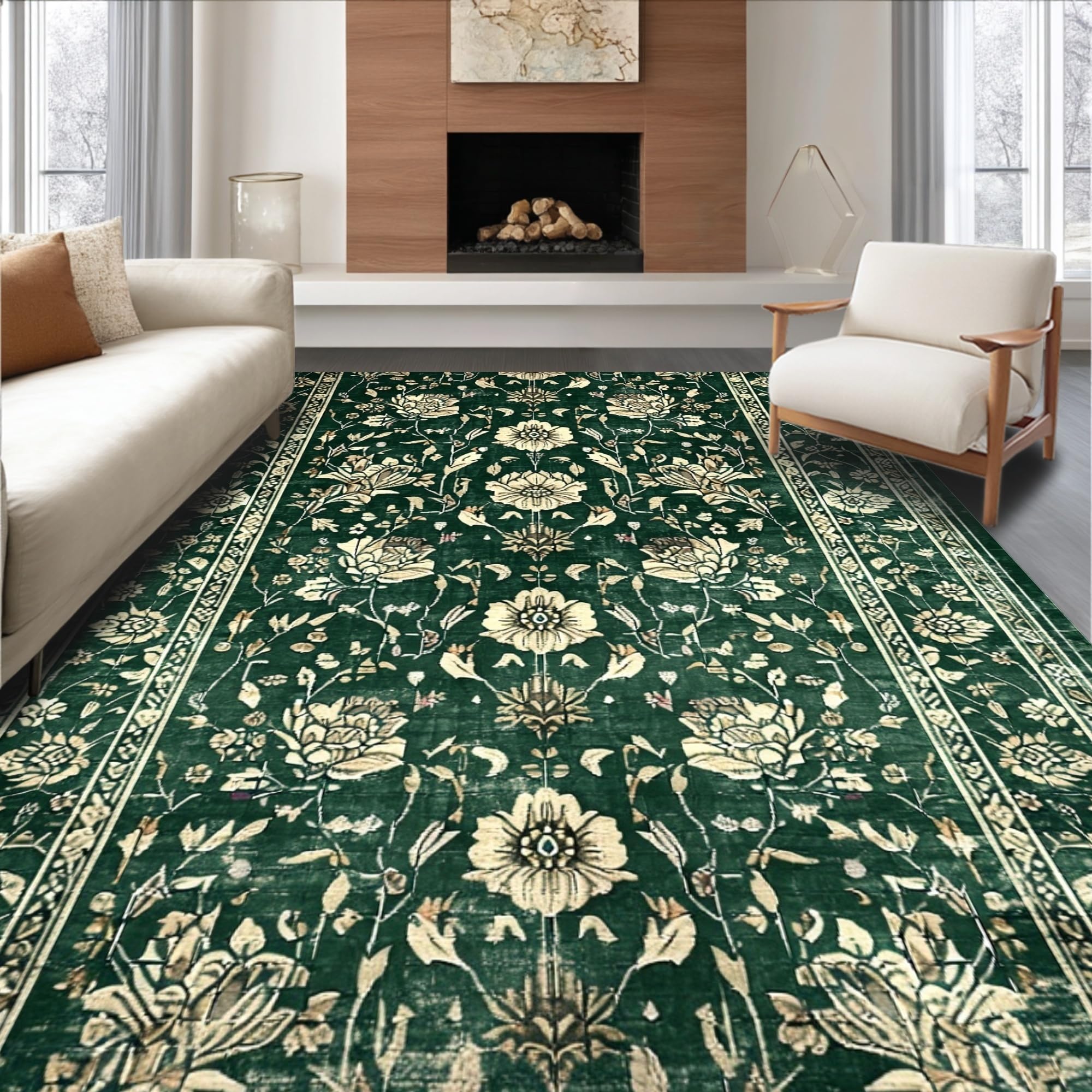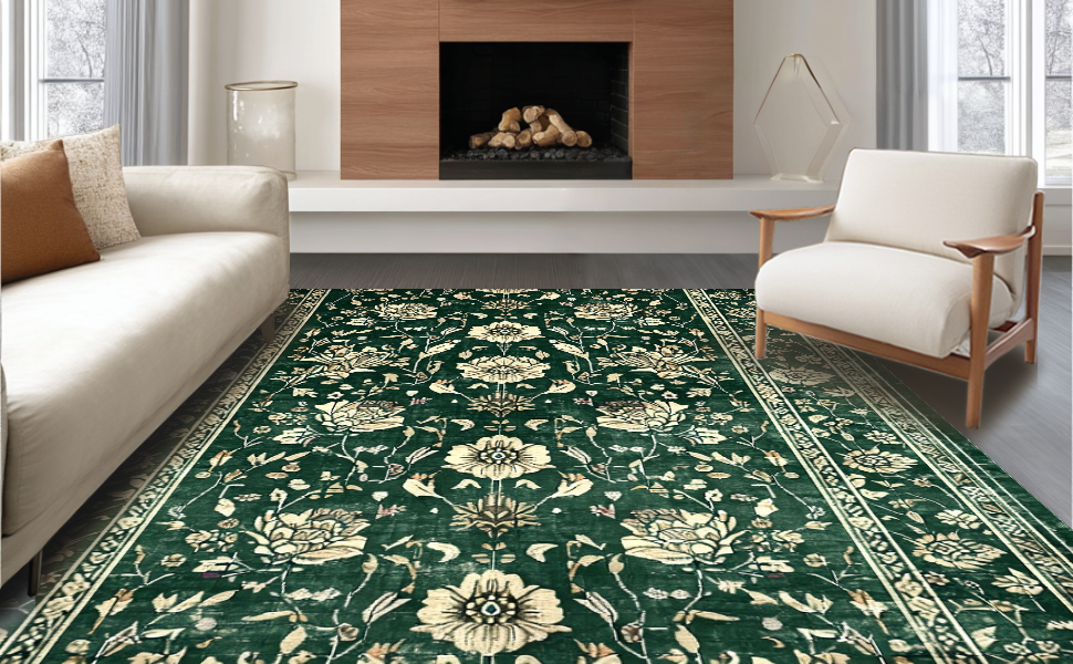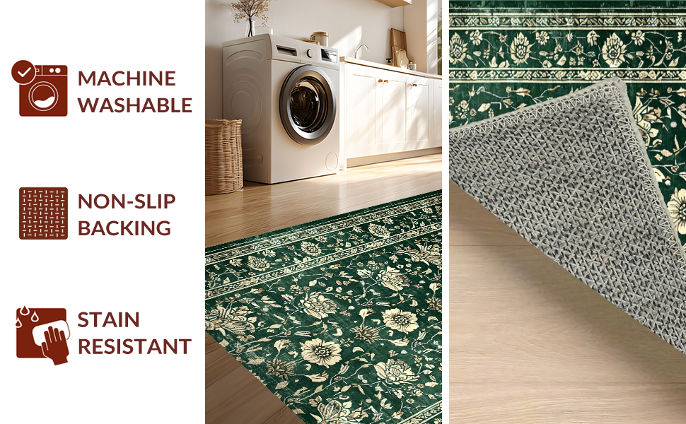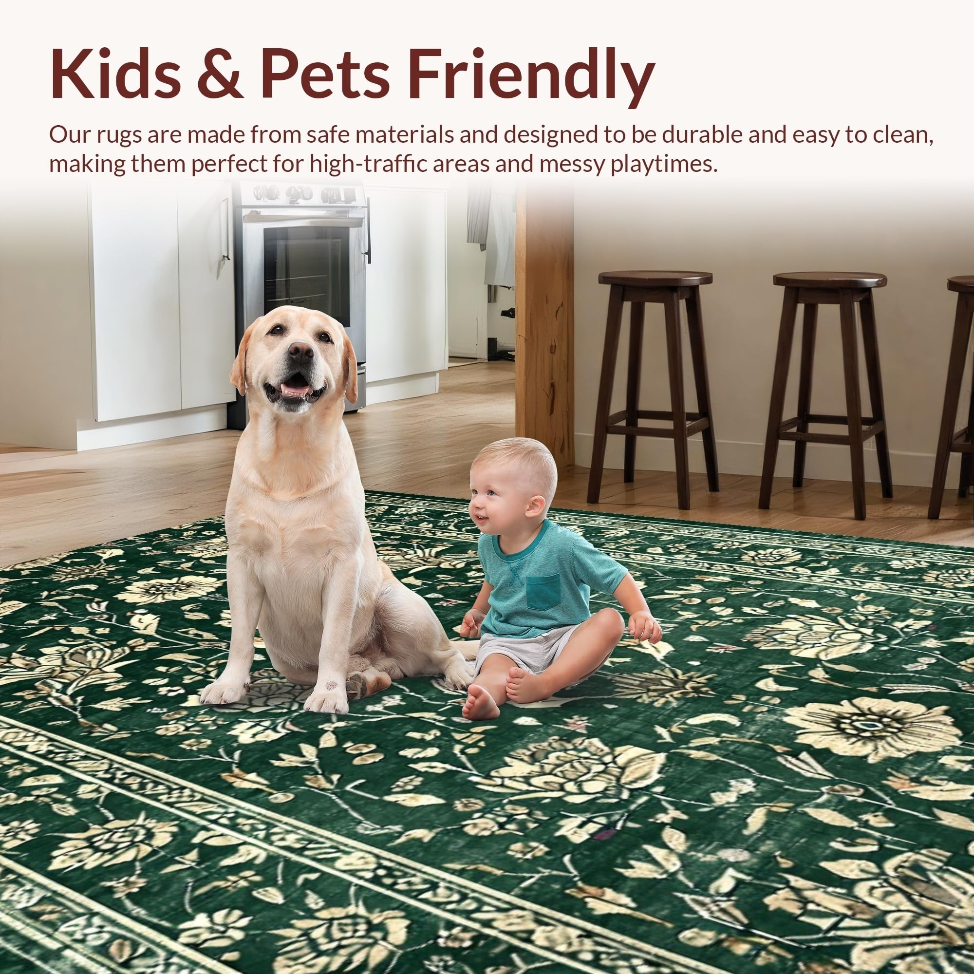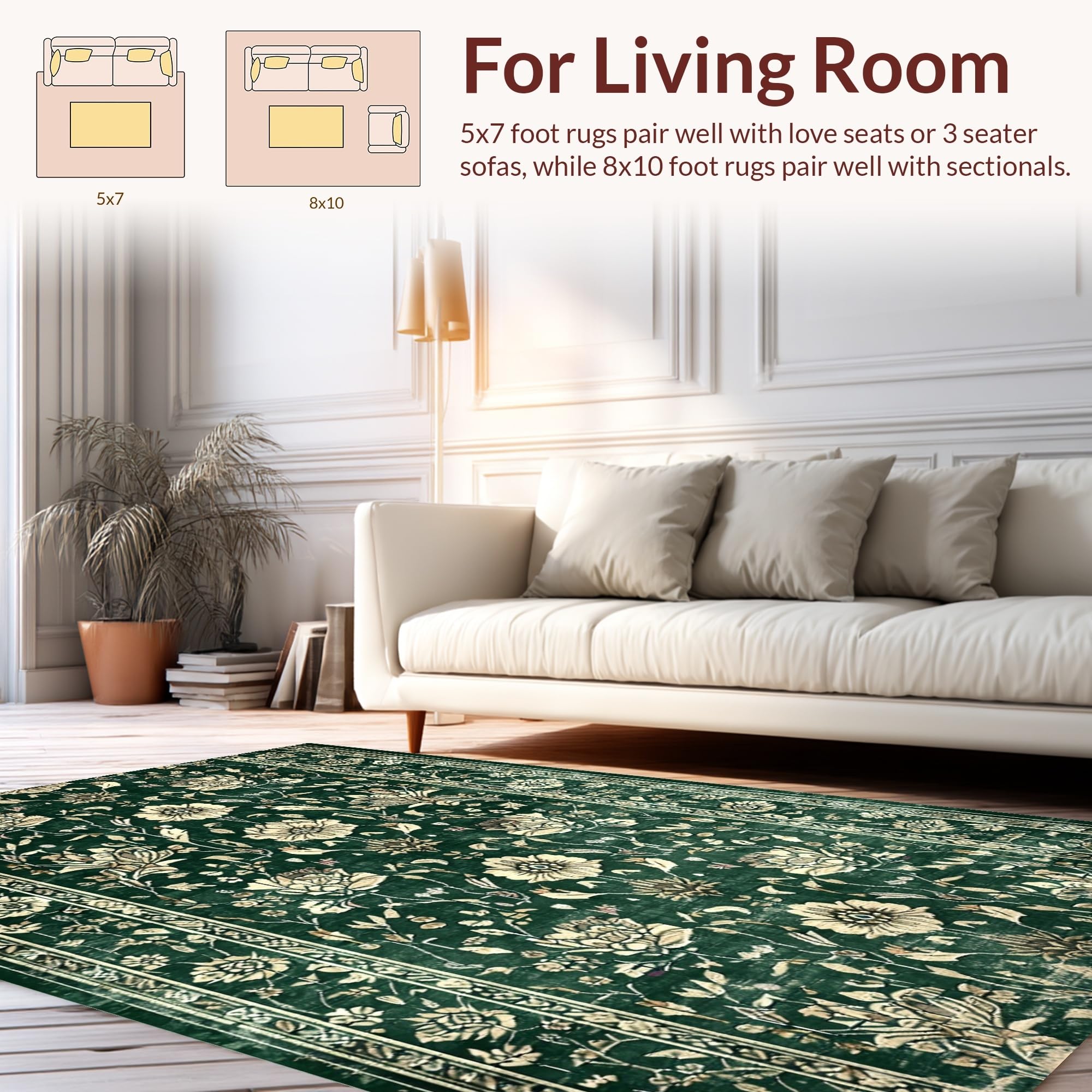 Ultra Soft Area Rug, Non Slip, Stain Resistant, Washable Area Rugs for Living Room, Bedroom, Charming Earthy Medallion Theme(Green) Overview: