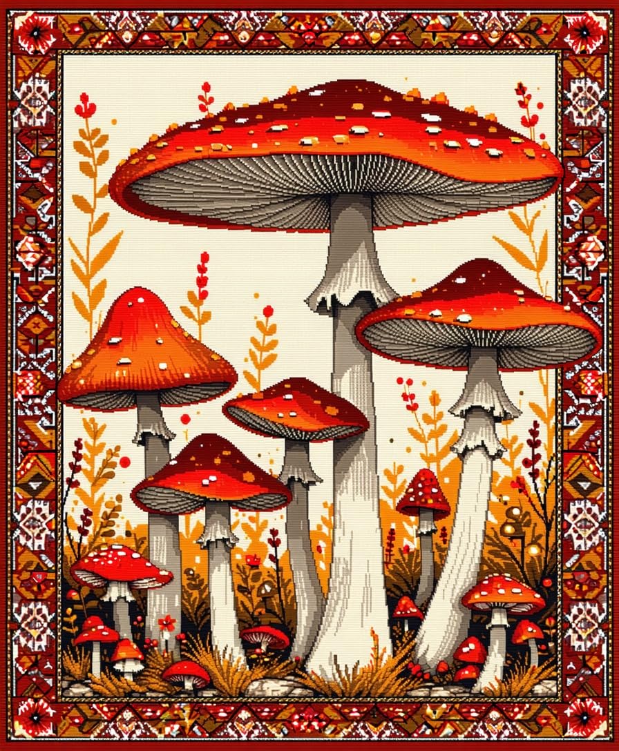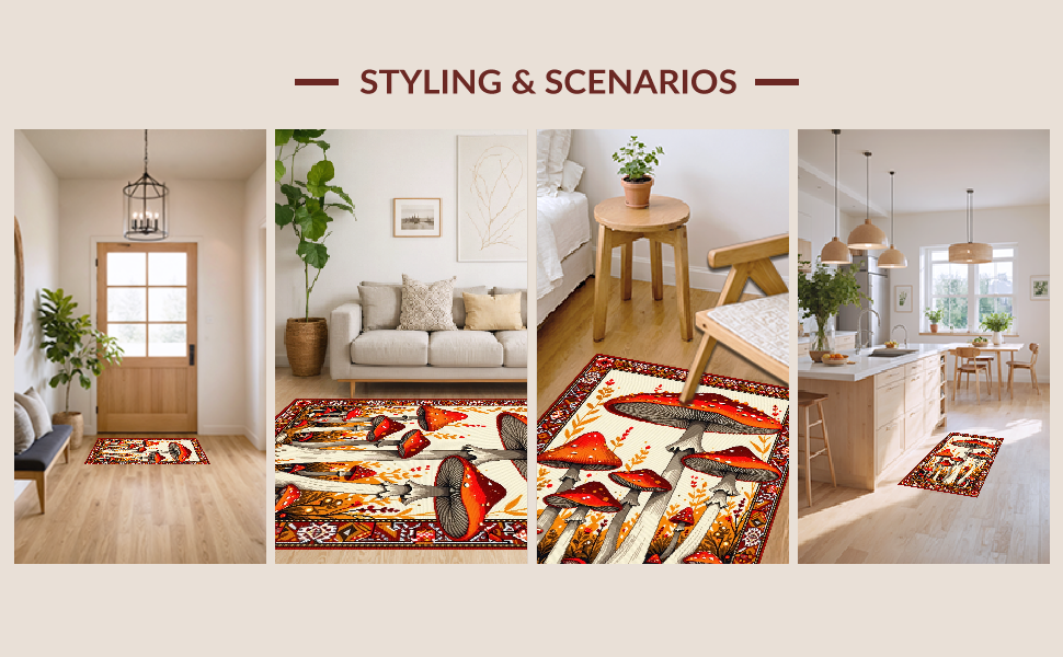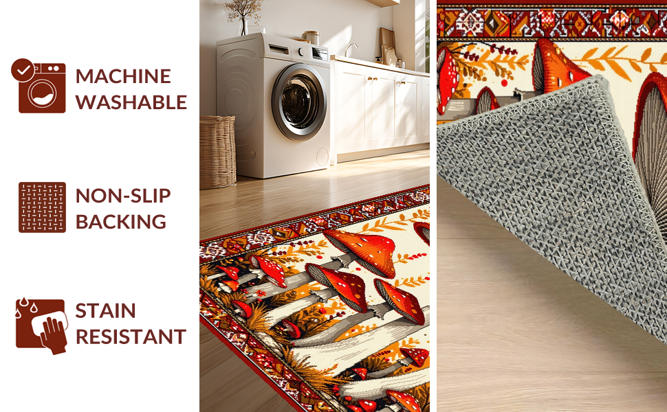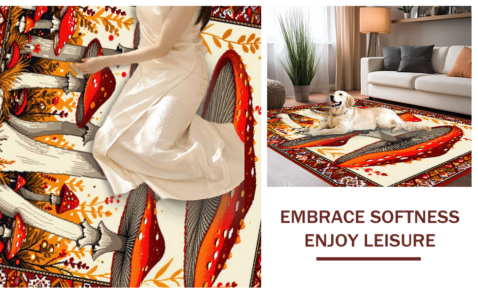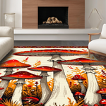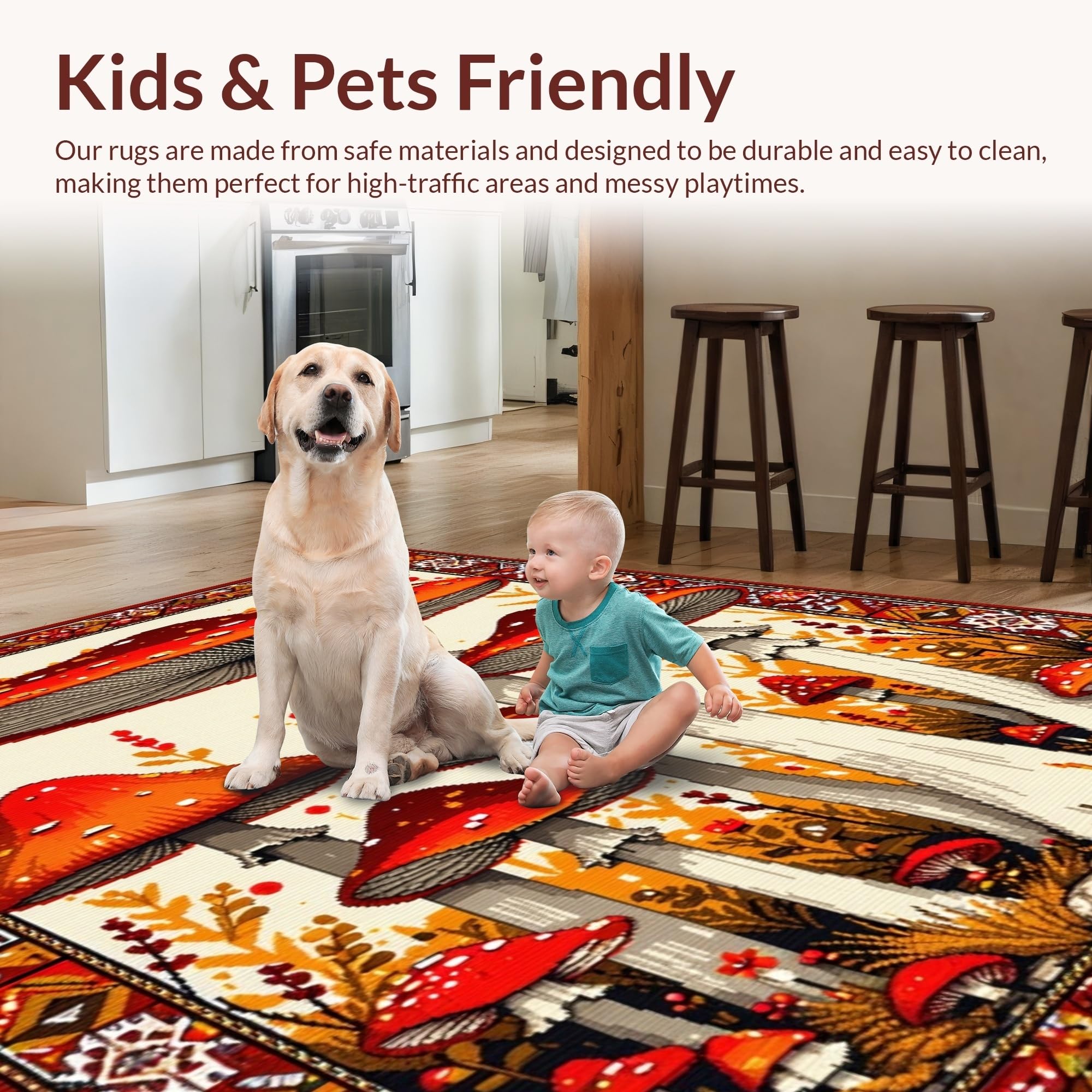 Ultra Soft Area Rug, Non Slip, Stain Resistant, Washable Area Rugs for Living Room, Bedroom, Charming Earthy Toned Fungi Motif(Red) Overview: