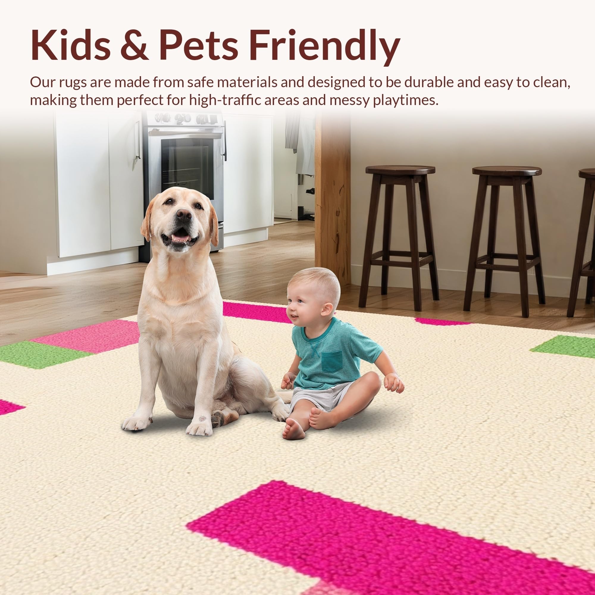 Ultra Soft Area Rug, Non Slip, Stain Resistant, Washable Area Rugs for Living Room, Bedroom, Charming Earthy Toned Interactive Layout(Beige) Overview: