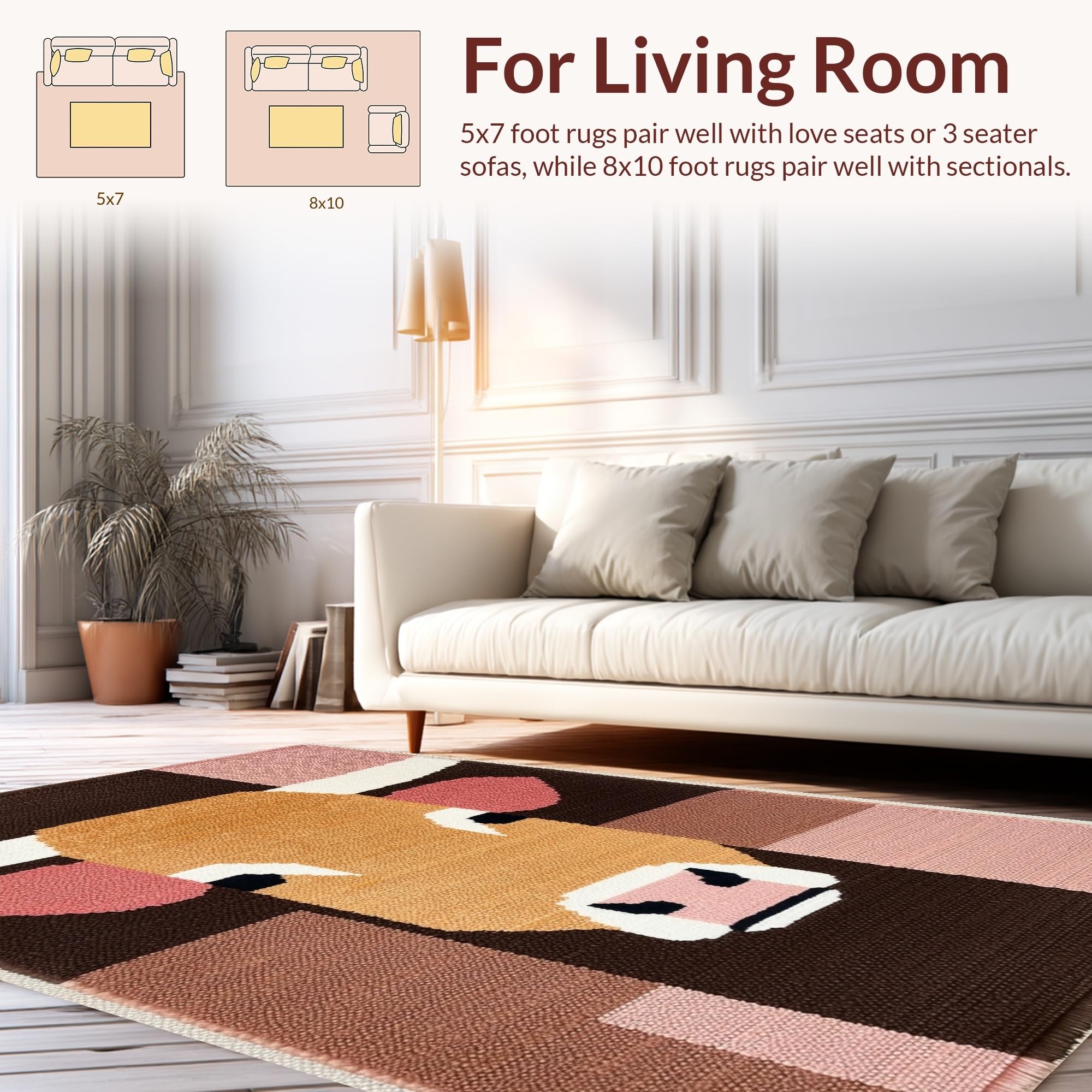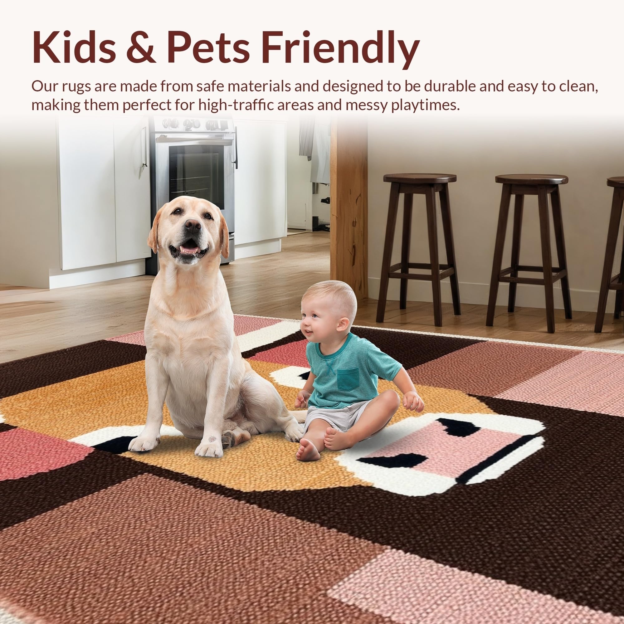 Ultra Soft Area Rug, Non Slip, Stain Resistant, Washable Area Rugs for Living Room, Bedroom, Charming Earthy Tones Animal Print(Brown) Overview: