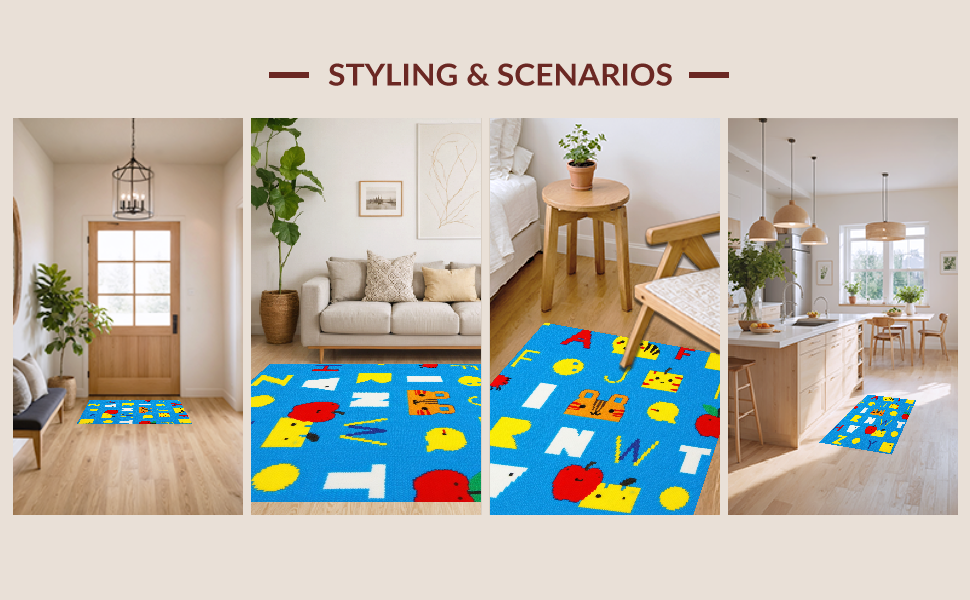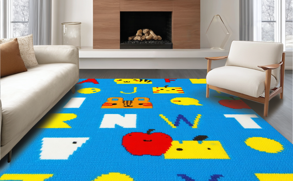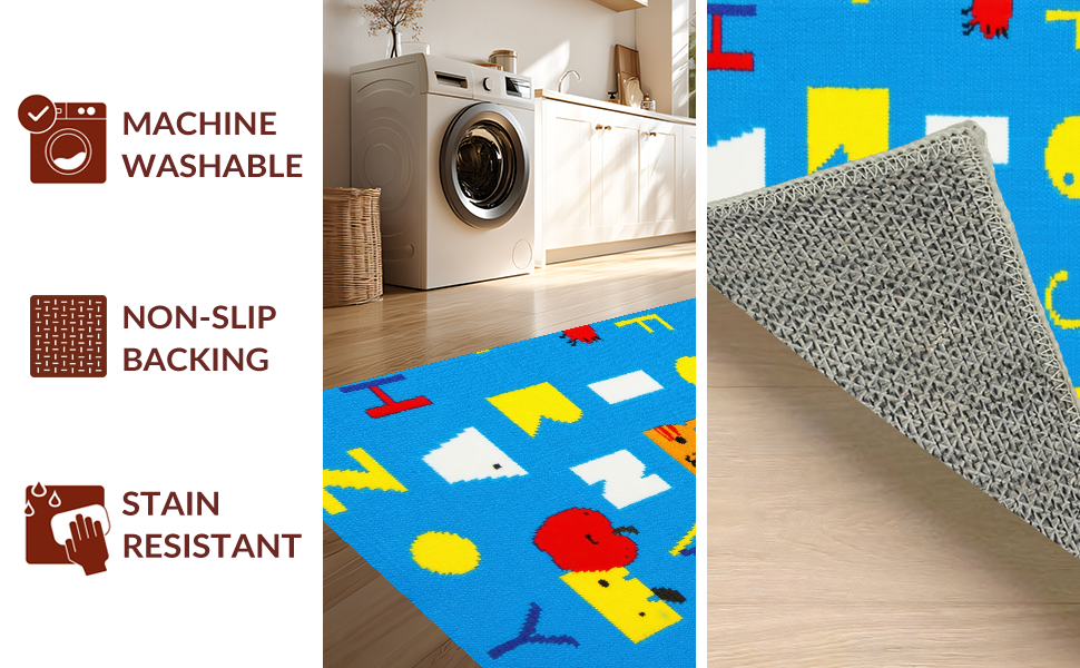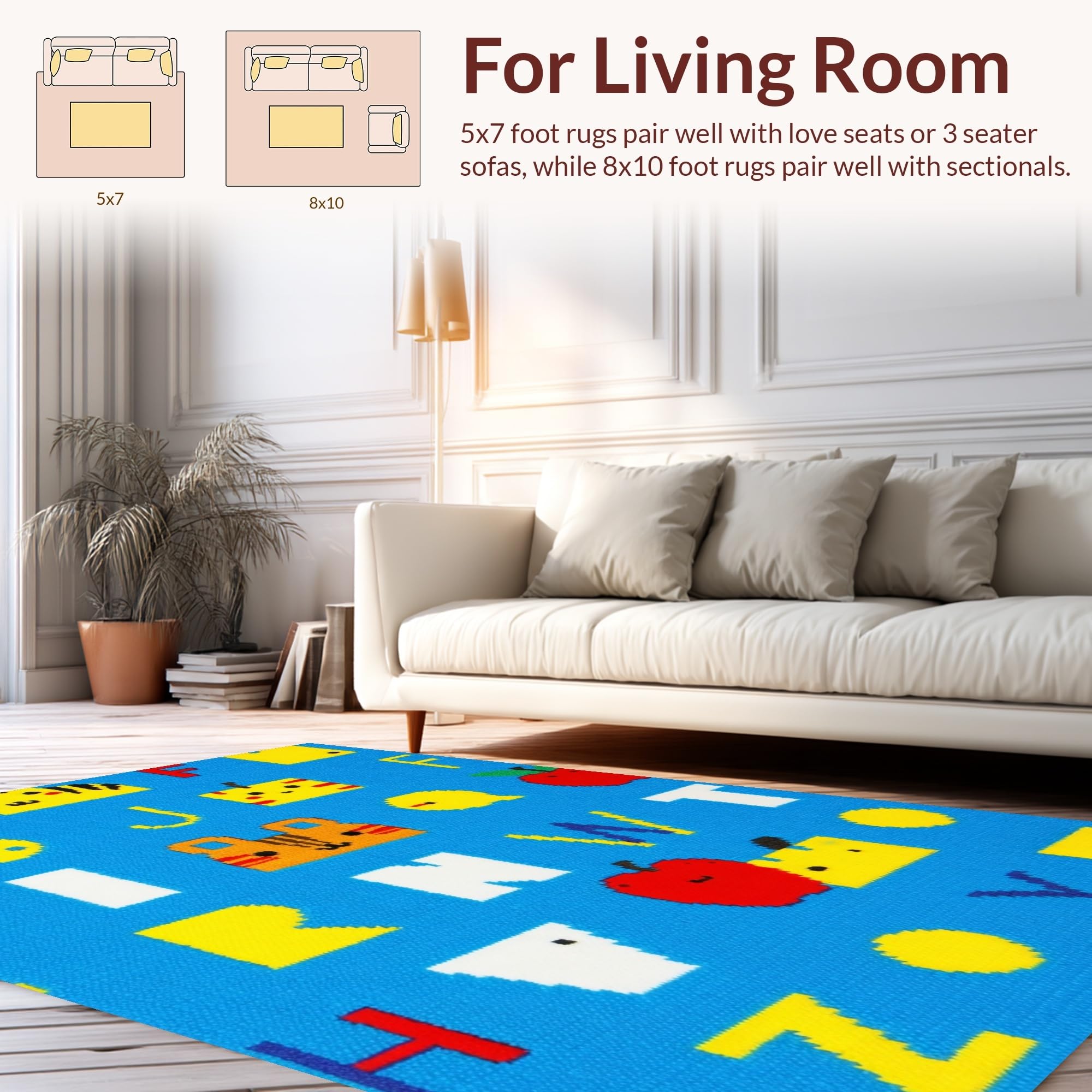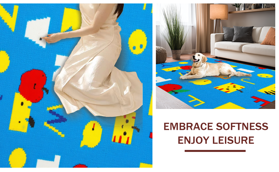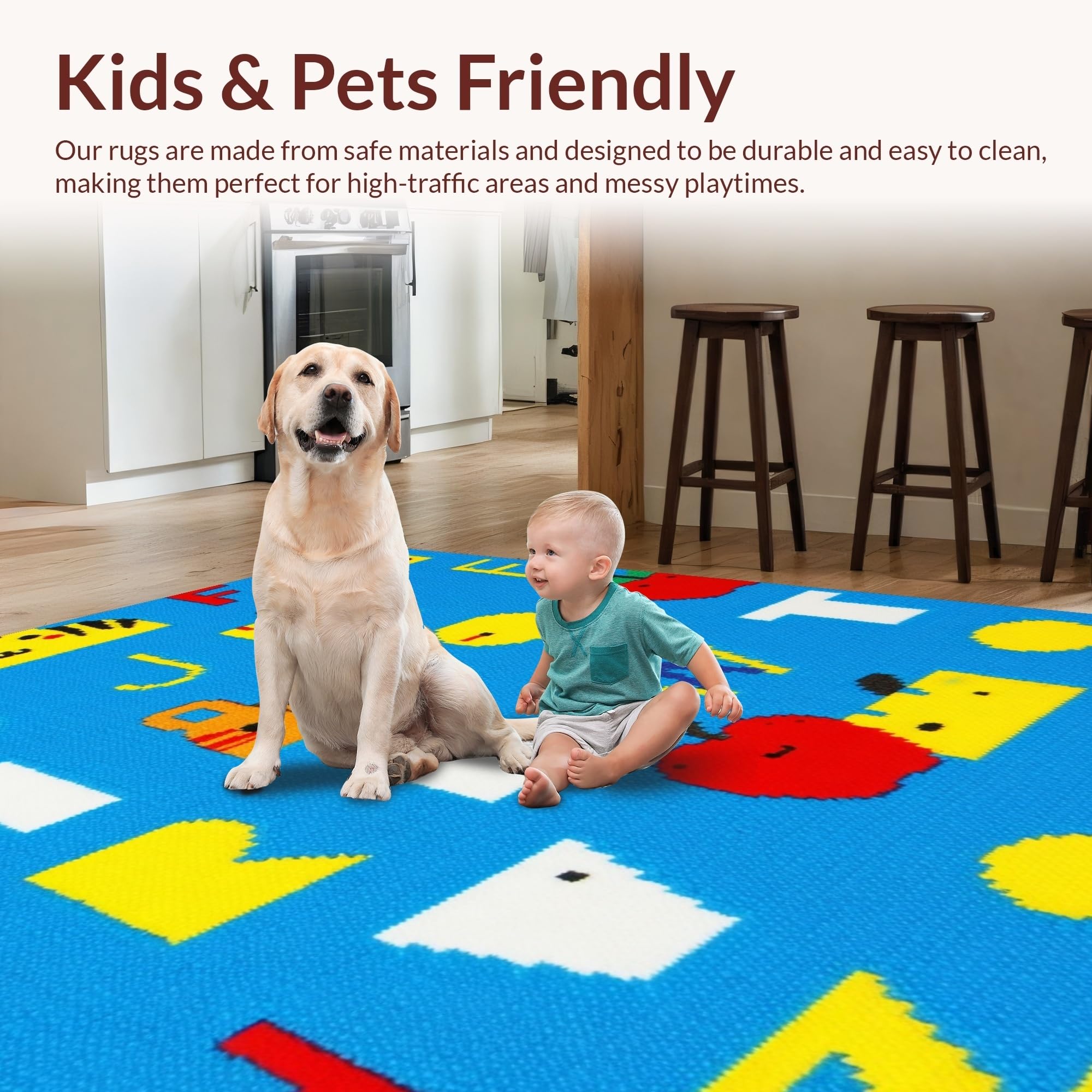 Ultra Soft Area Rug, Non Slip, Stain Resistant, Washable Area Rugs for Living Room, Bedroom, Charming Educational Playful Art(Blue) Overview: