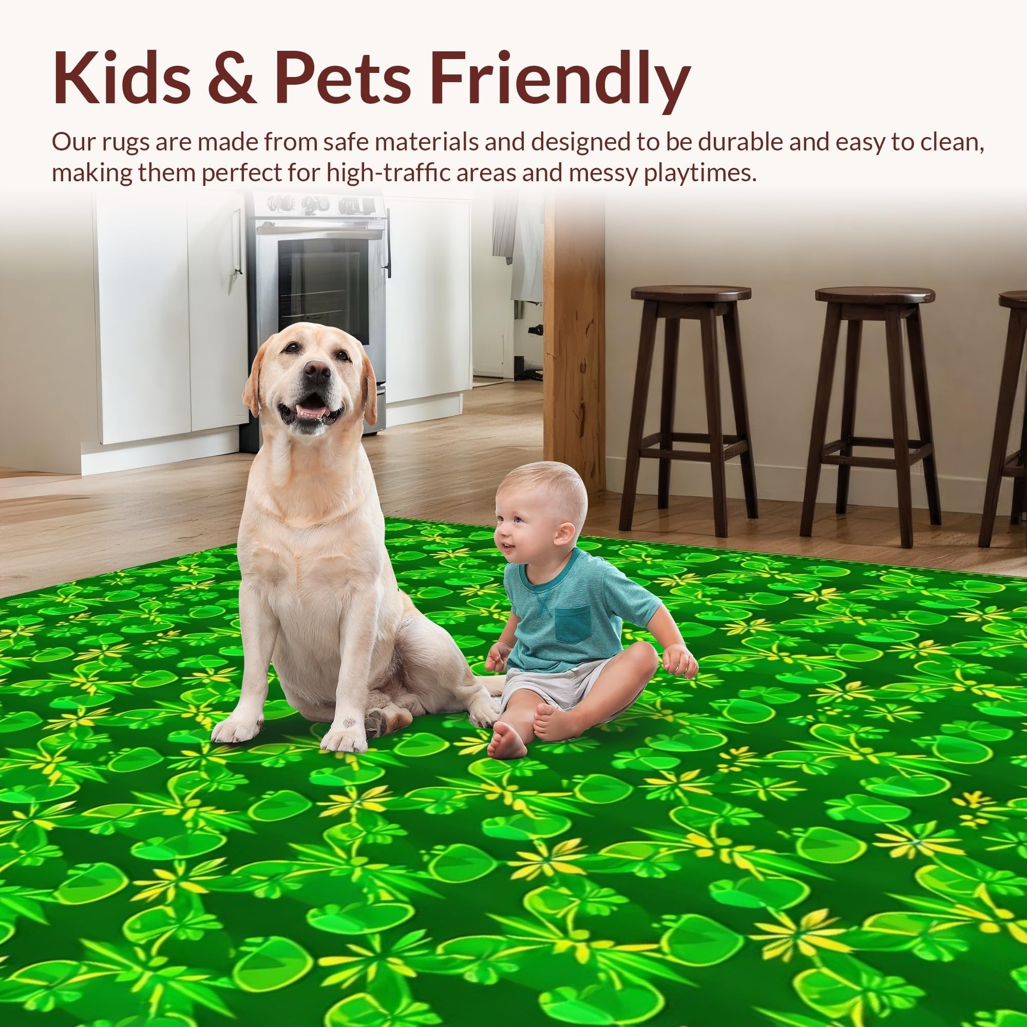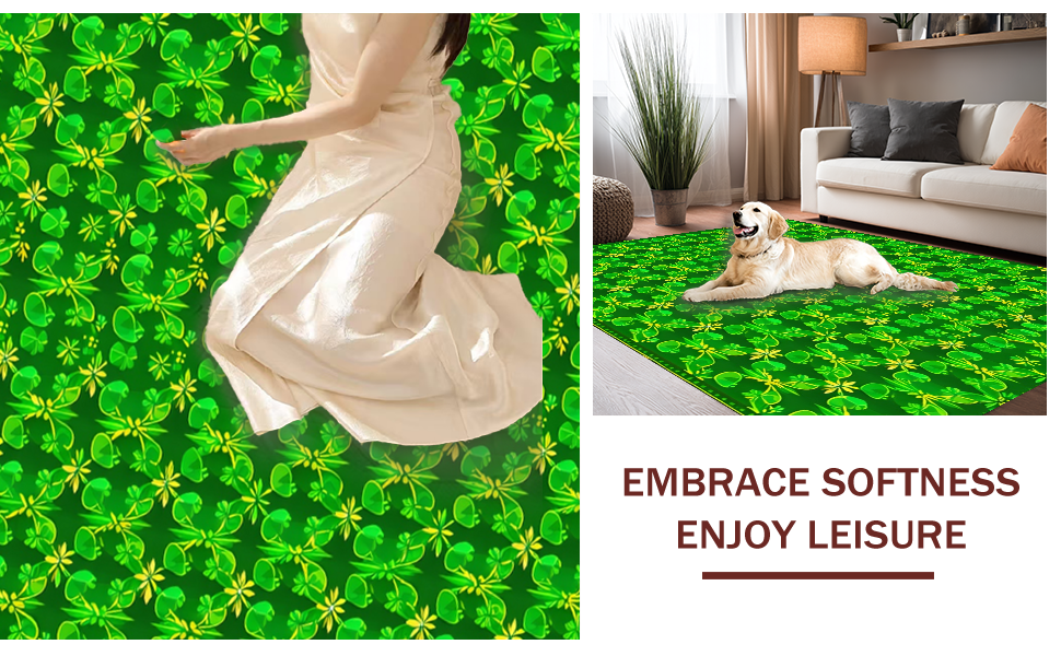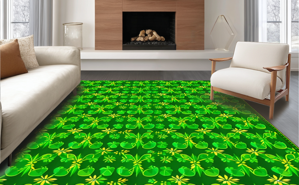 Ultra Soft Area Rug, Non Slip, Stain Resistant, Washable Area Rugs for Living Room, Bedroom, Charming Emerald Clover Pattern(Green) Overview: