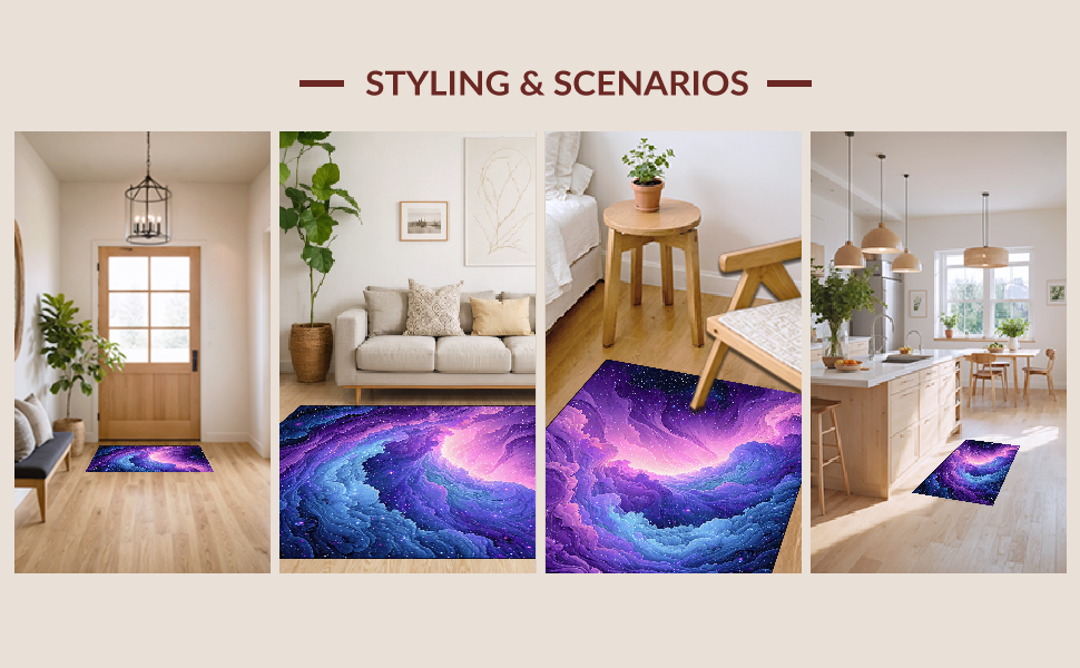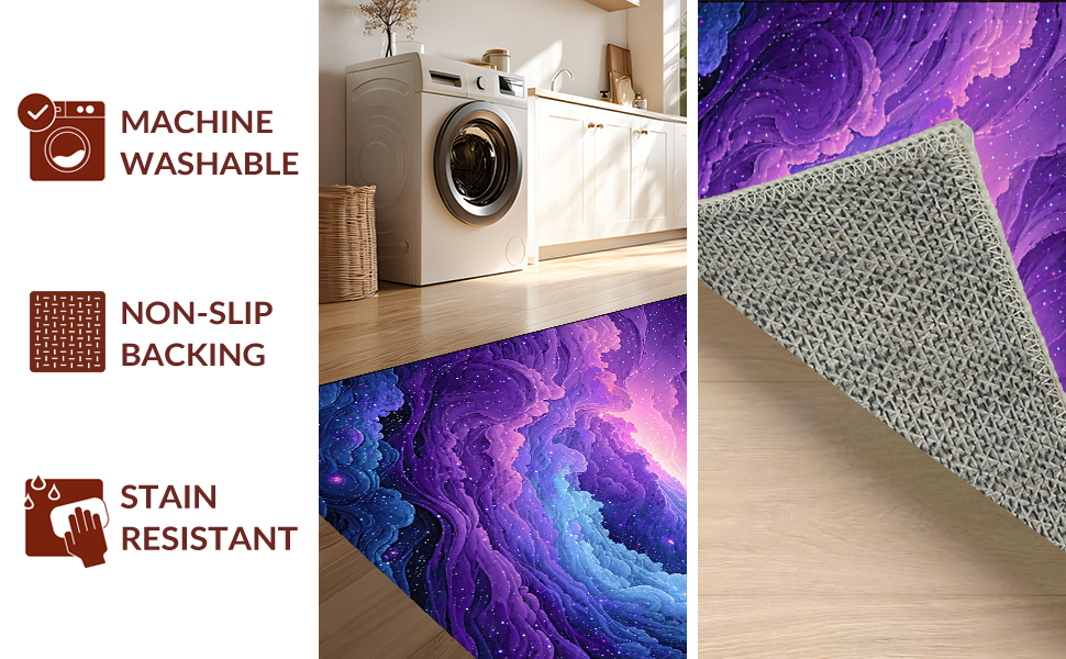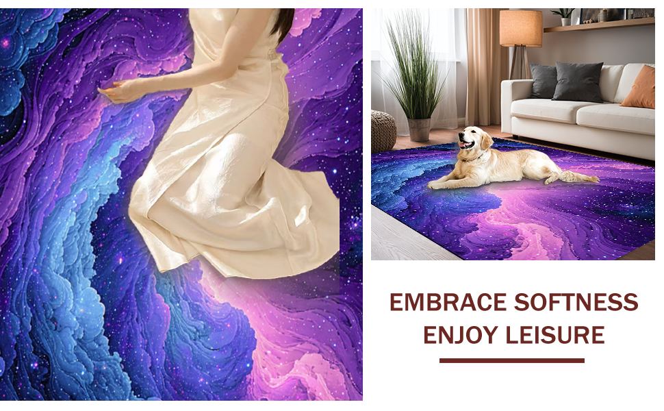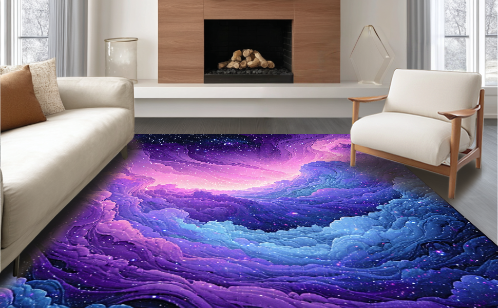 Ultra Soft Area Rug, Non Slip, Stain Resistant, Washable Area Rugs for Living Room, Bedroom, Charming Ethereal Sky Motif(Purple) Overview: