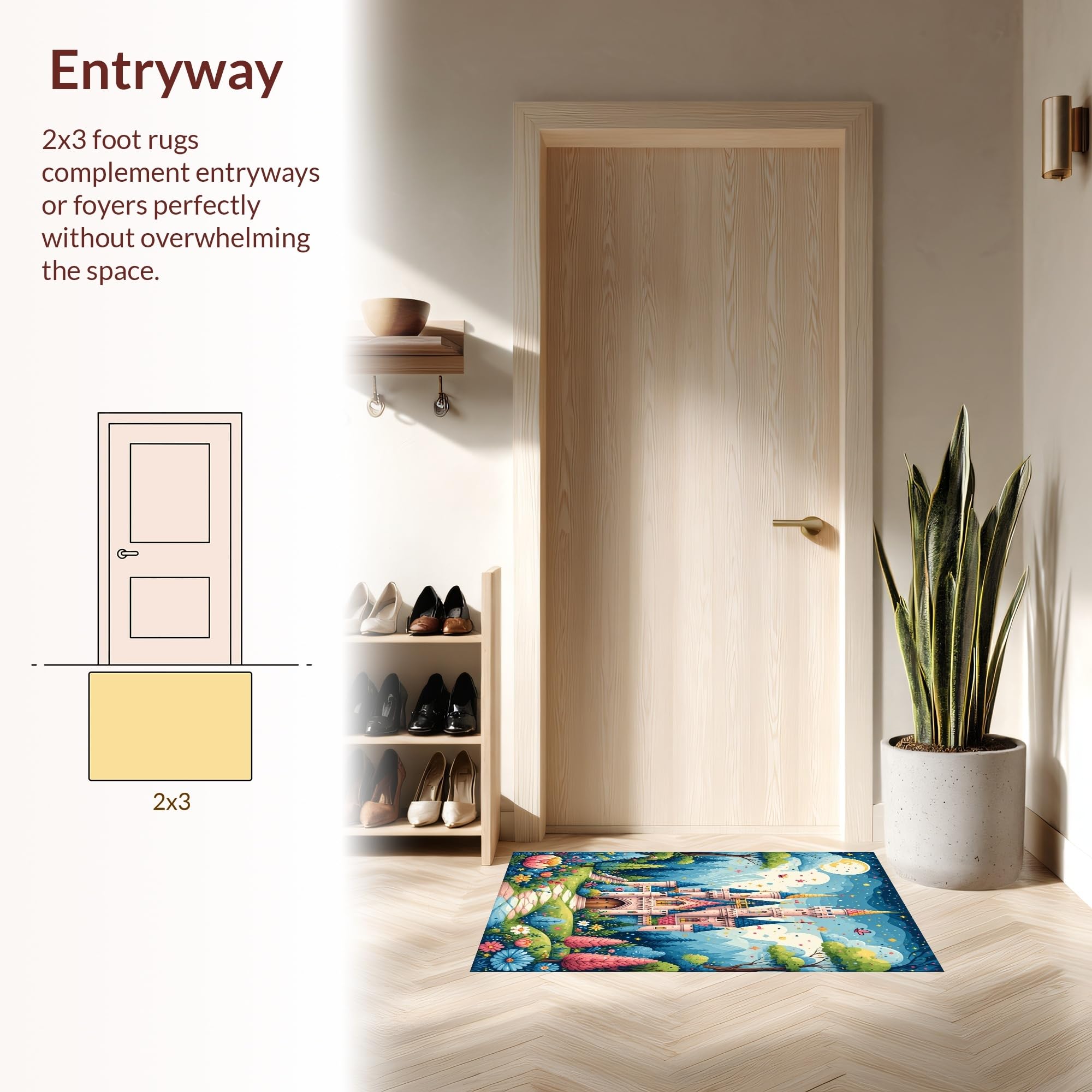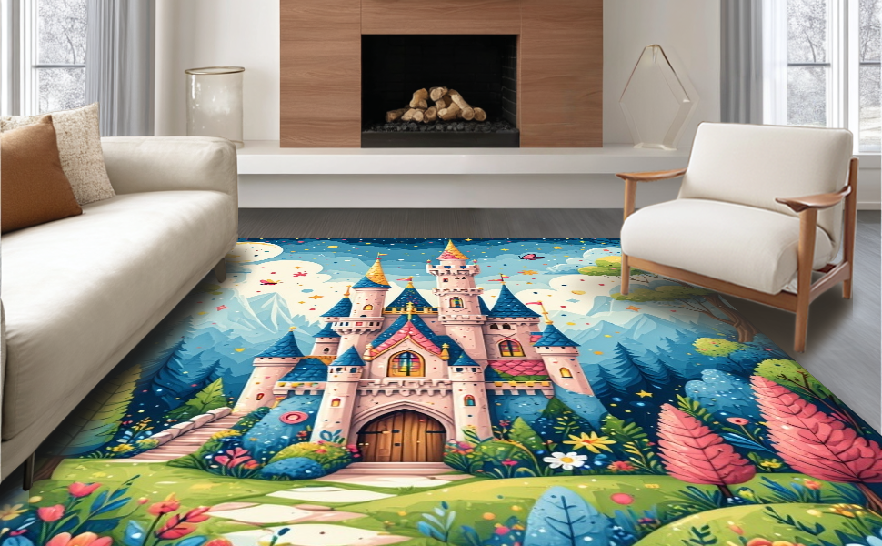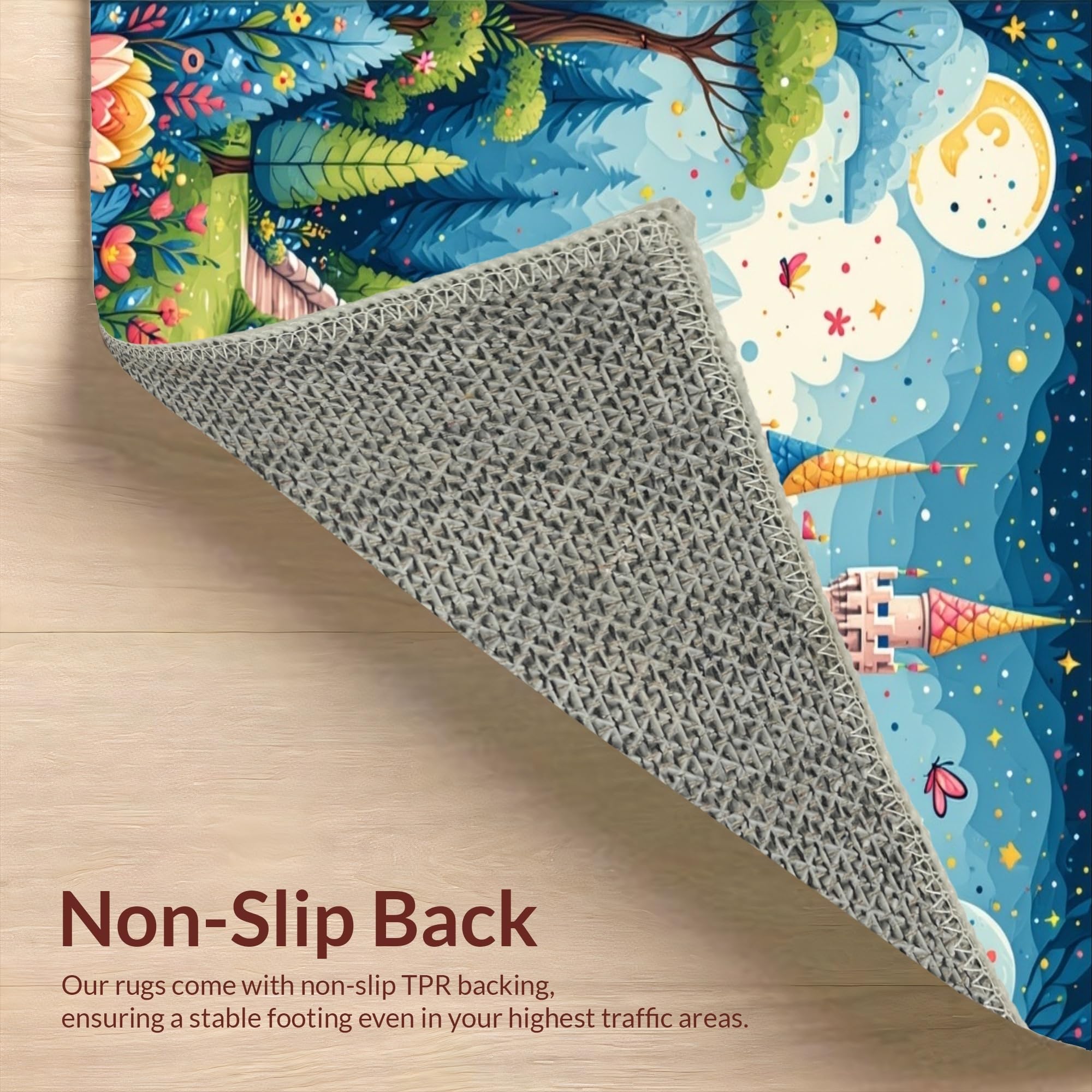 Ultra Soft Area Rug, Non Slip, Stain Resistant, Washable Area Rugs for Living Room, Bedroom, Charming Fairy Tale Landscape Theme(Blue) Overview: