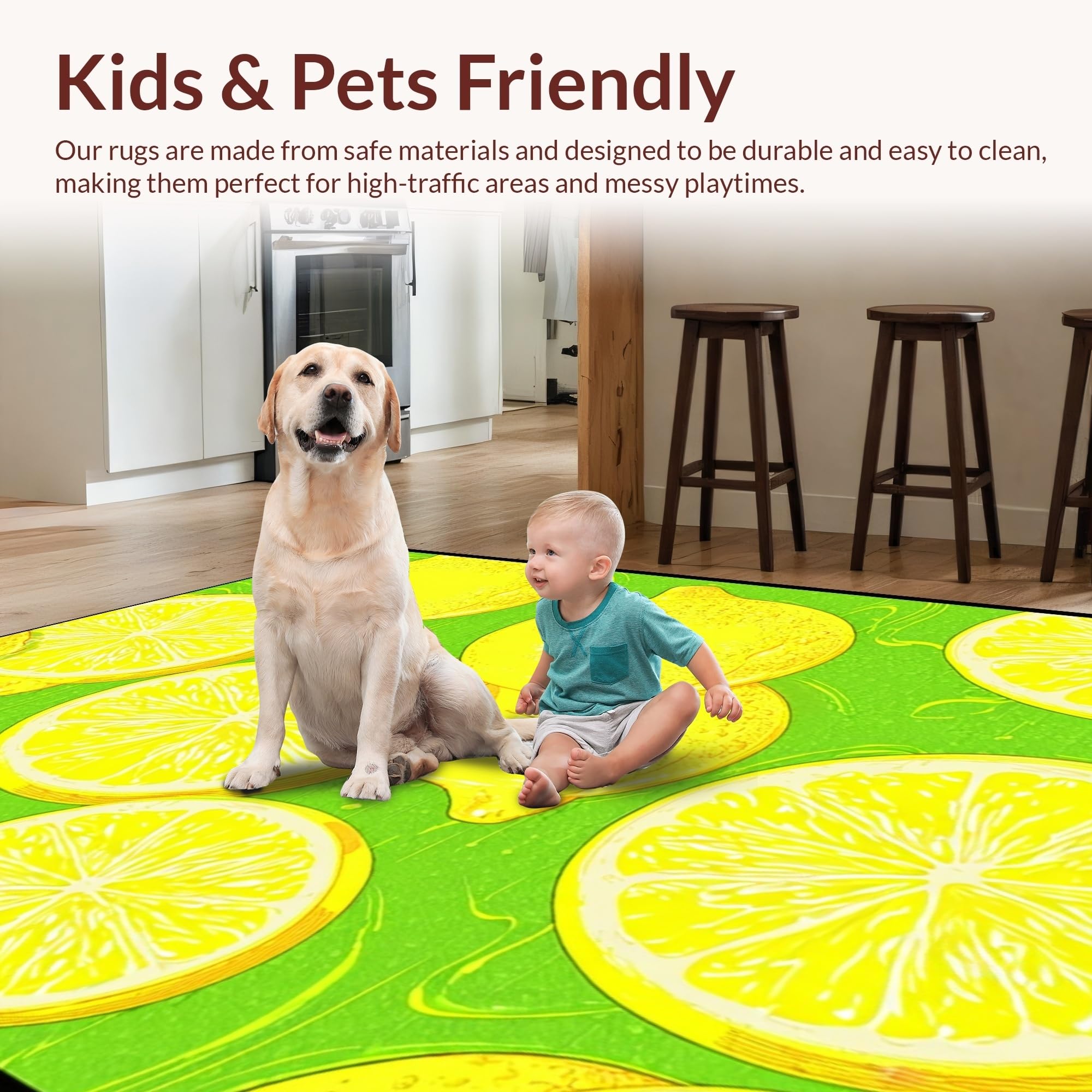 Ultra Soft Area Rug, Non Slip, Stain Resistant, Washable Area Rugs for Living Room, Bedroom, Charming Farmhouse Floral Touch(Yellow) Overview:
