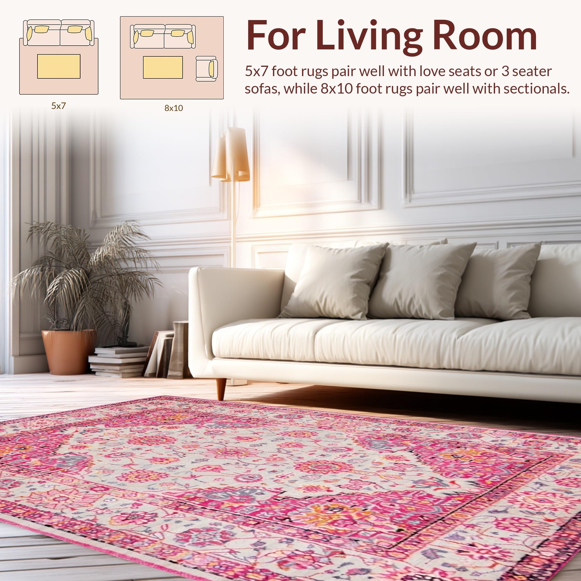 Ultra Soft Area Rug, Non Slip, Stain Resistant, Washable Area Rugs for Living Room, Bedroom, Charming Feminine Luxe Appeal(White) Overview: