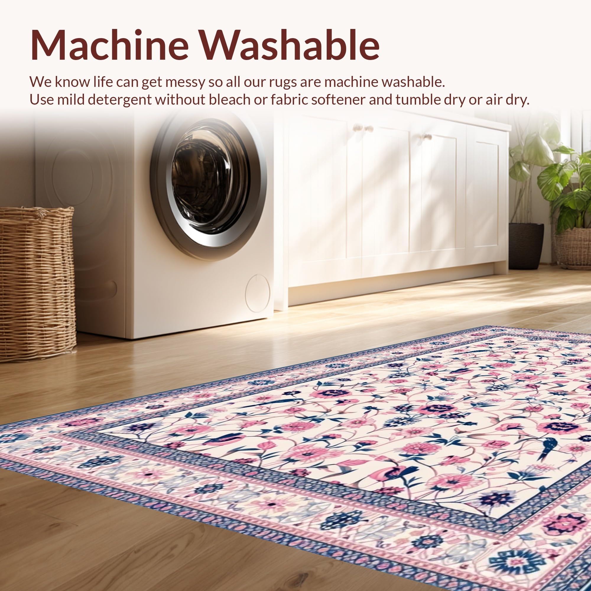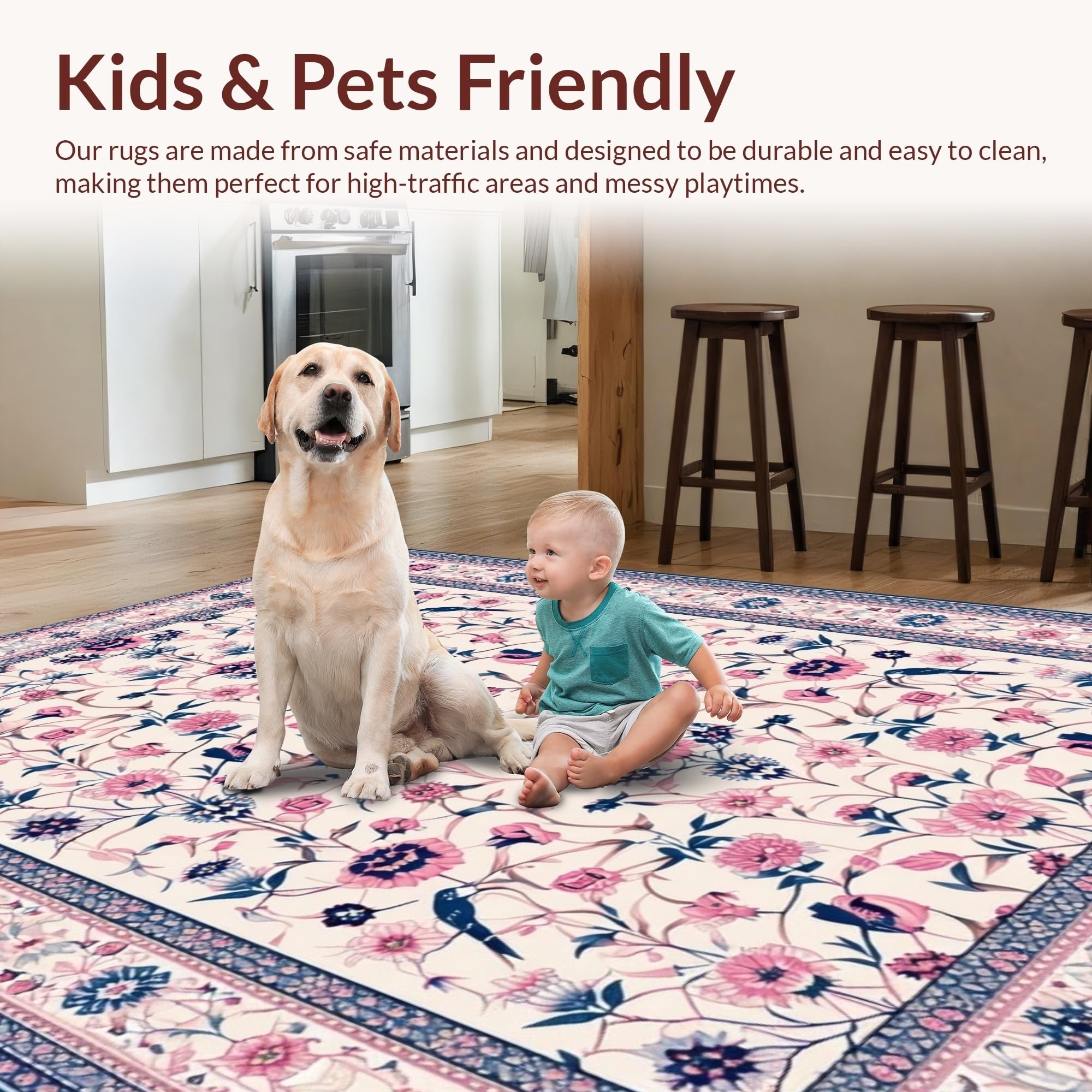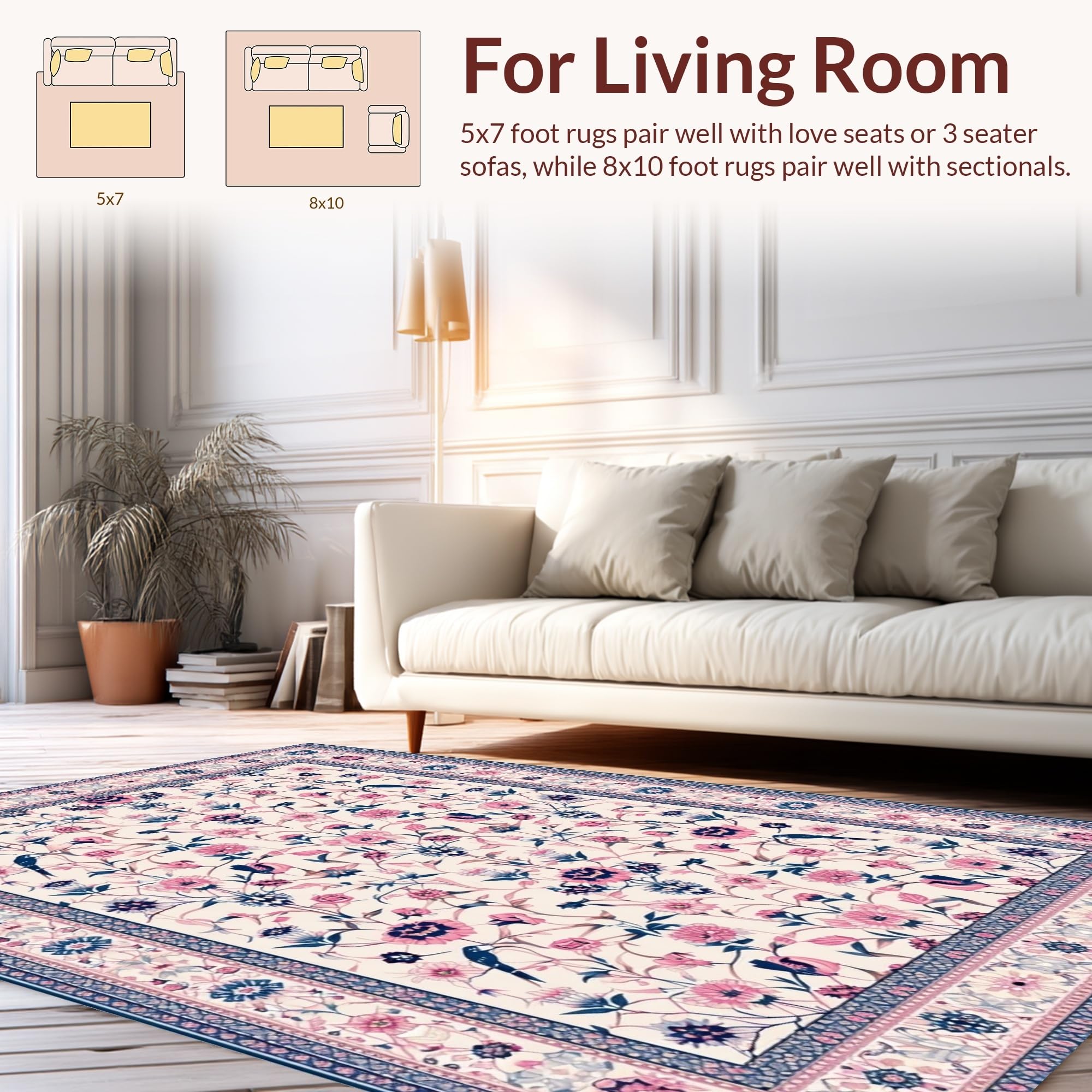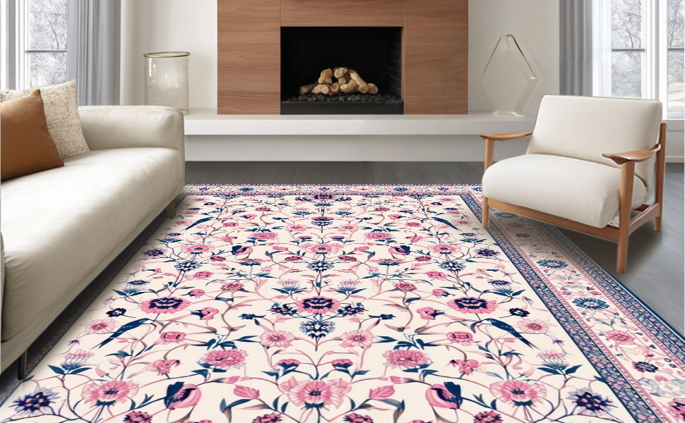 Ultra Soft Area Rug, Non Slip, Stain Resistant, Washable Area Rugs for Living Room, Bedroom, Charming Floral Birdscape Aesthetic(Ivory) Overview: