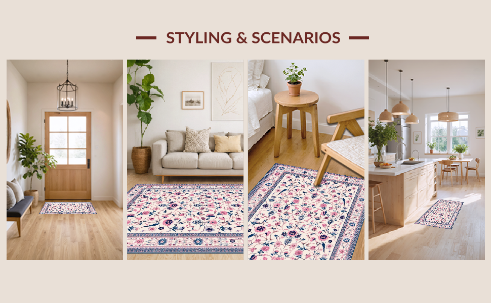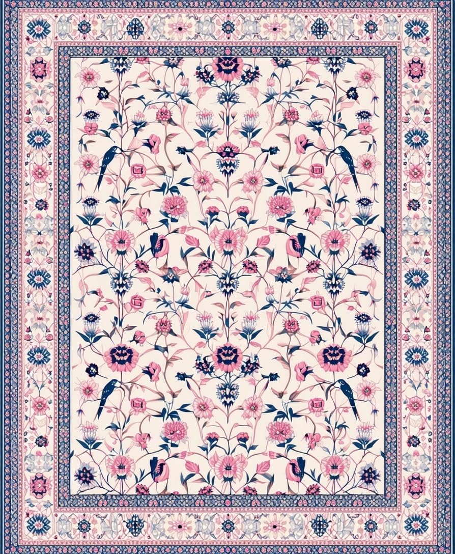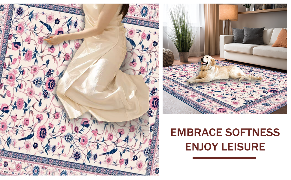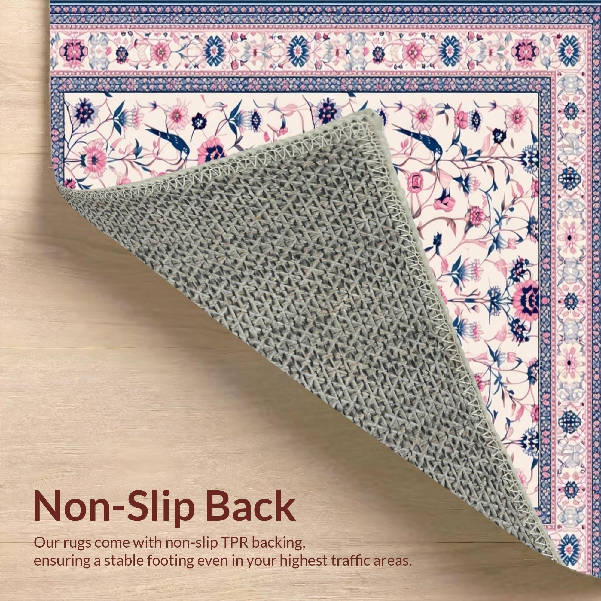 Ultra Soft Area Rug, Non Slip, Stain Resistant, Washable Area Rugs for Living Room, Bedroom, Charming Floral Birdscape Aesthetic(Ivory) Overview: