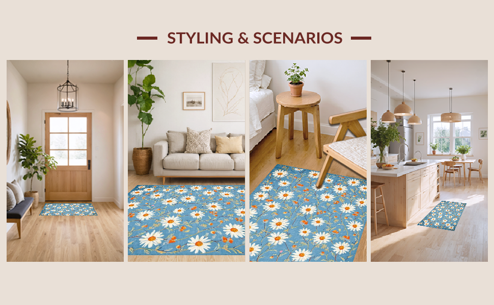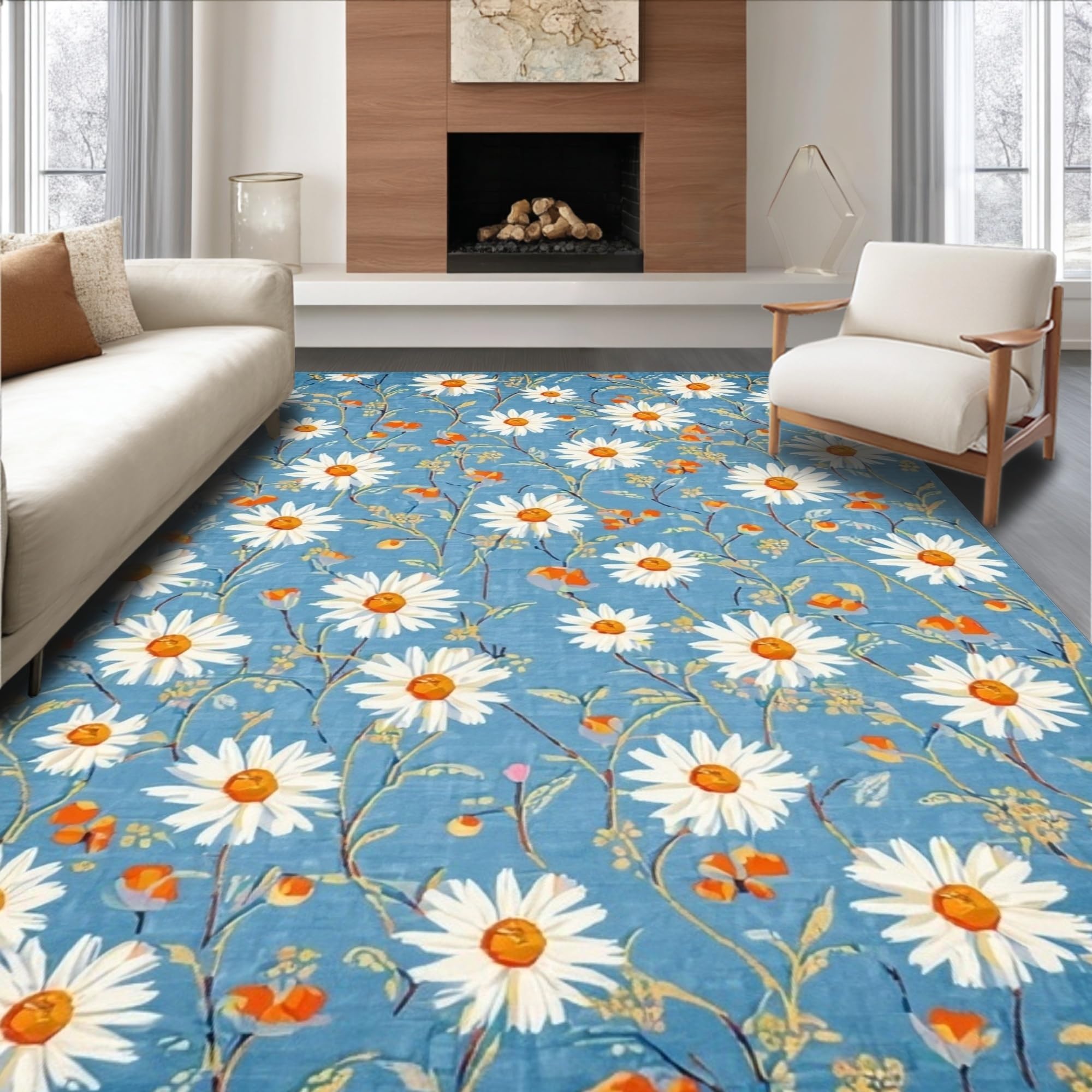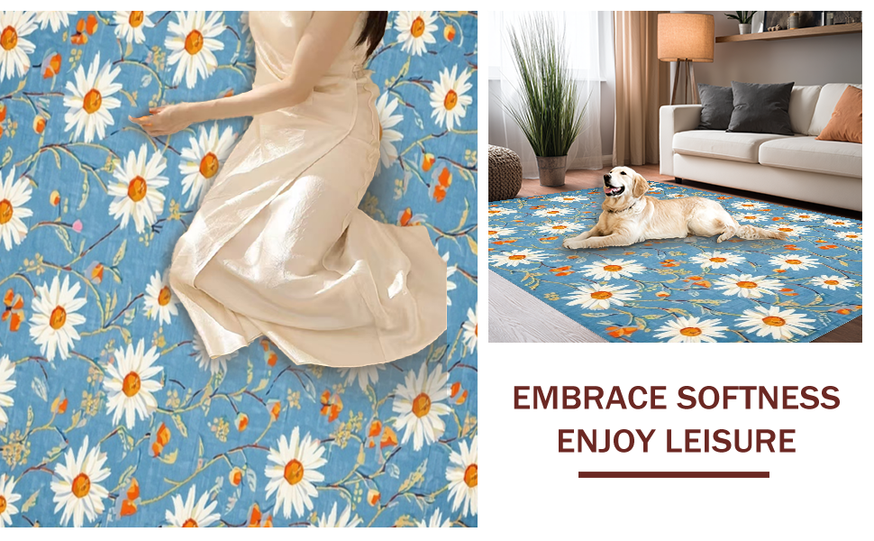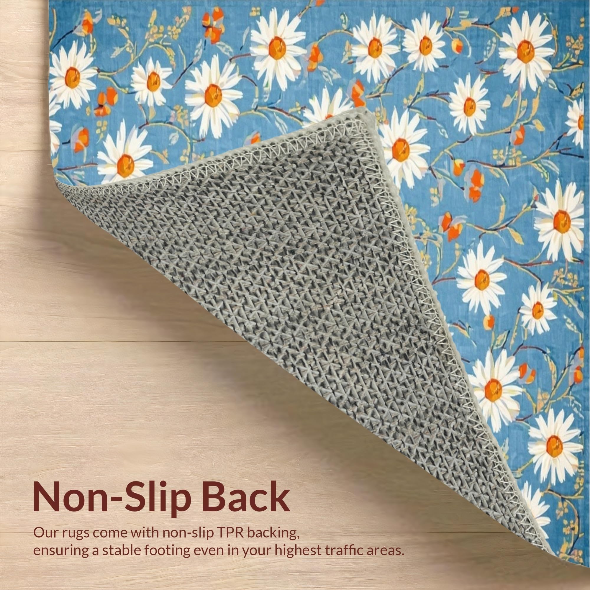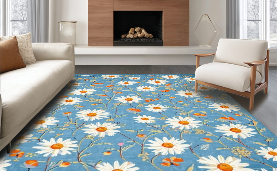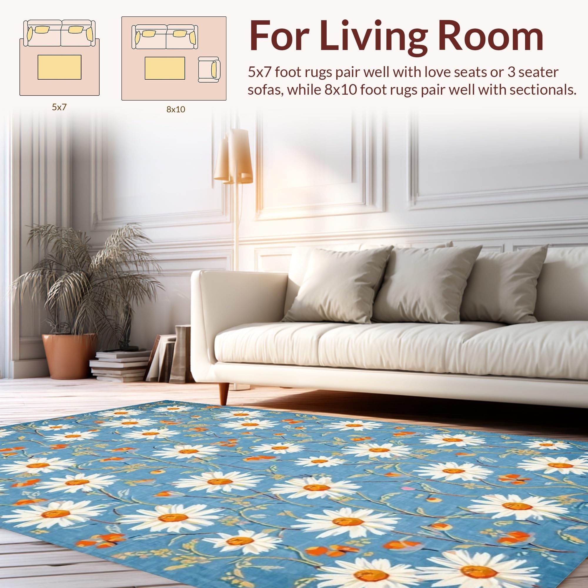 Ultra Soft Area Rug, Non Slip, Stain Resistant, Washable Area Rugs for Living Room, Bedroom, Charming Floral Motif in Pastel(Blue) Overview:
