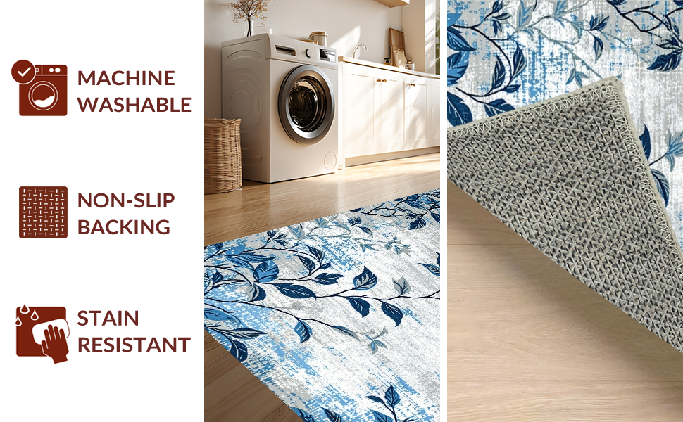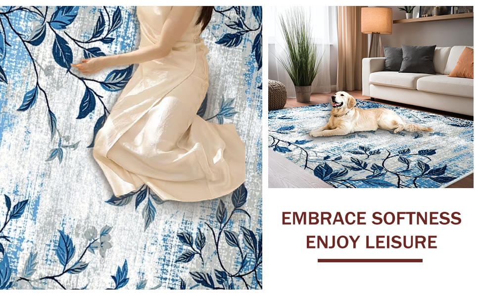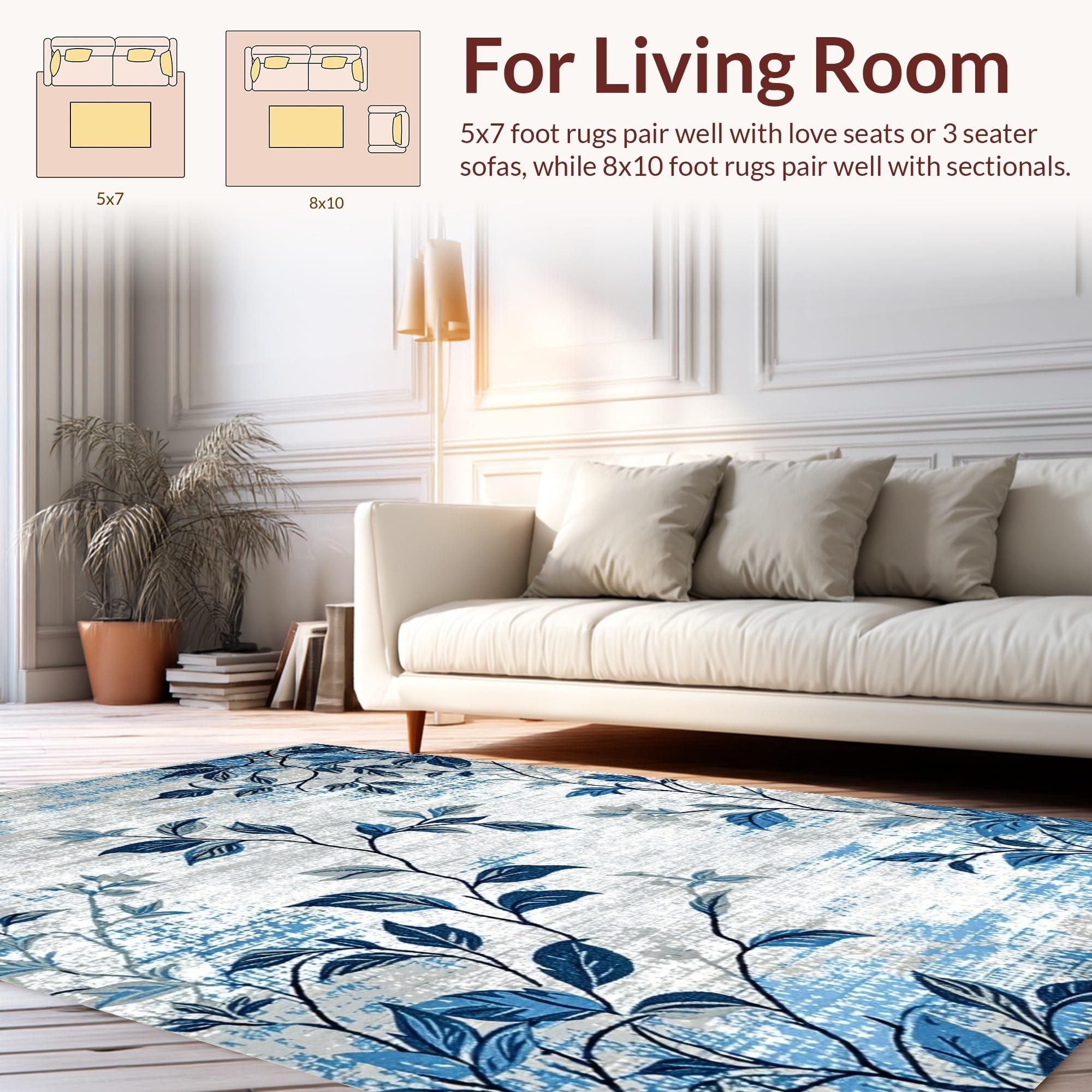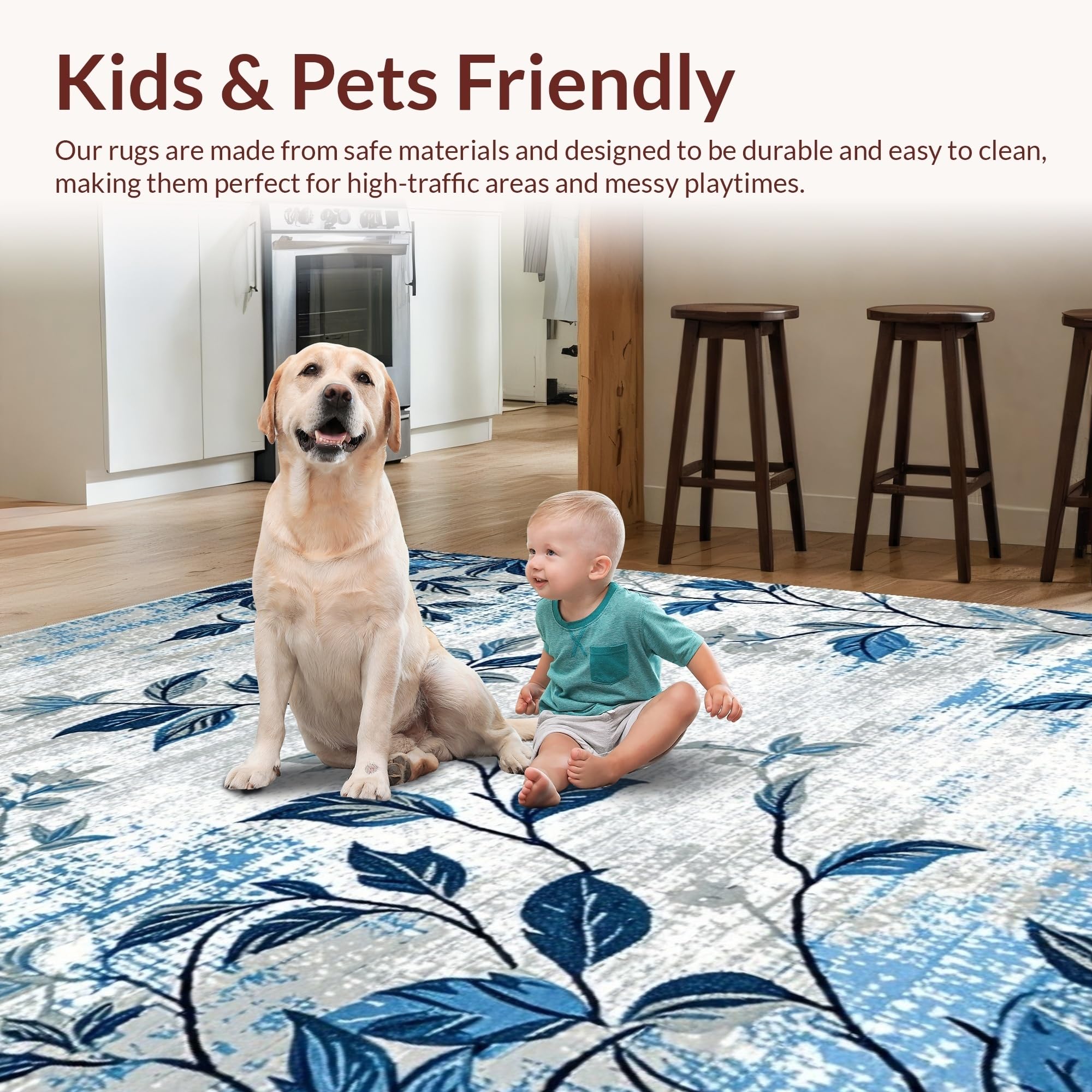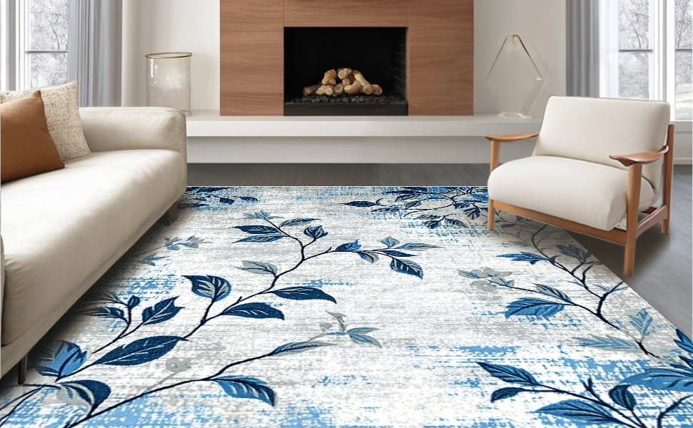 Ultra Soft Area Rug, Non Slip, Stain Resistant, Washable Area Rugs for Living Room, Bedroom, Charming Floral Ogee Motif(Blue) Overview: