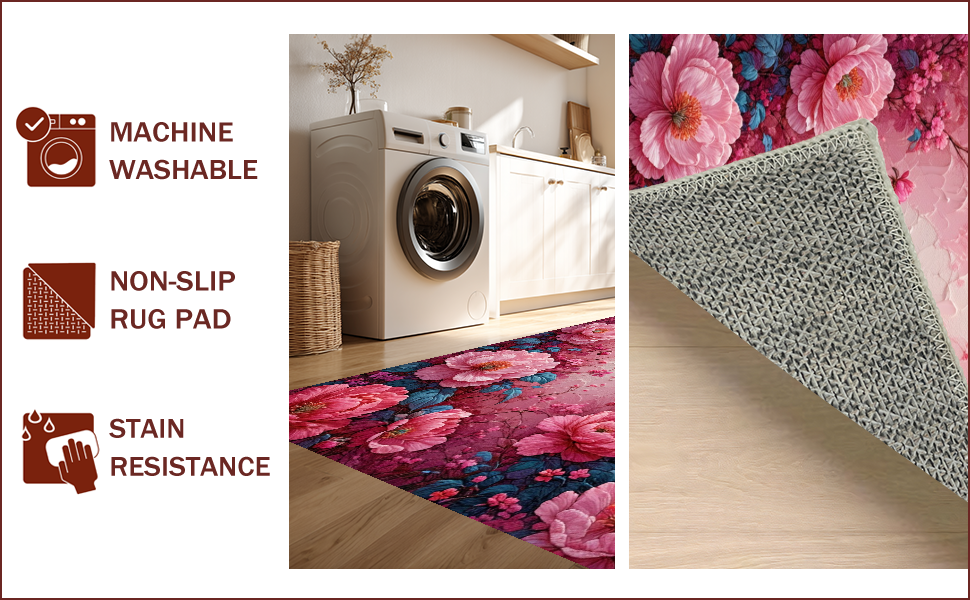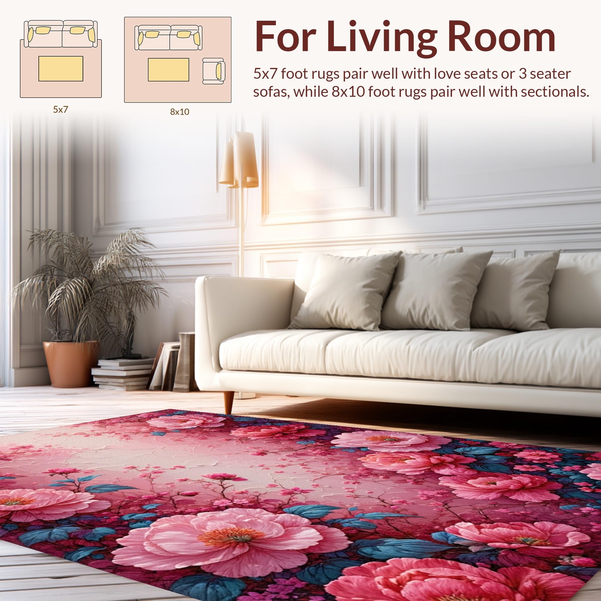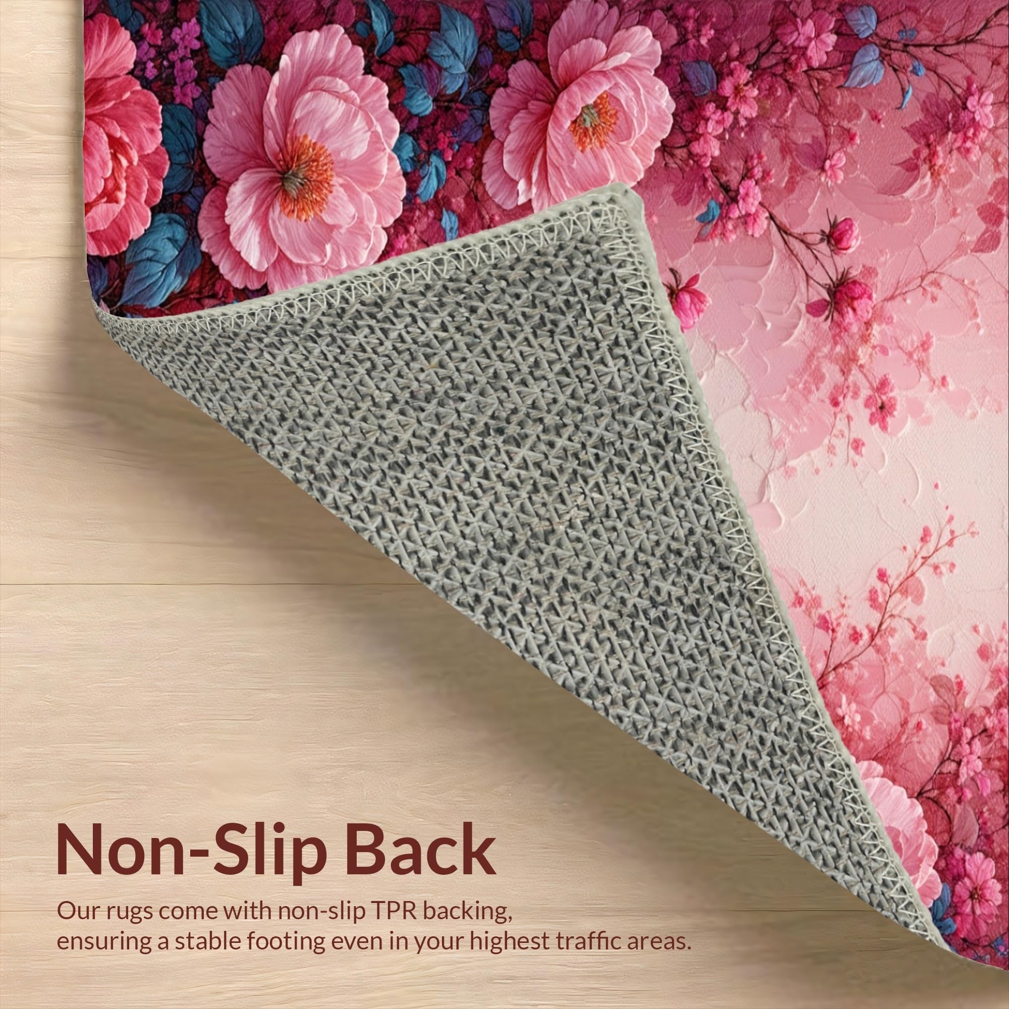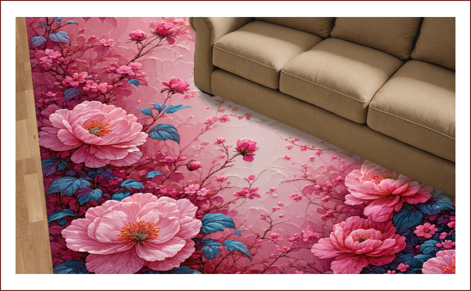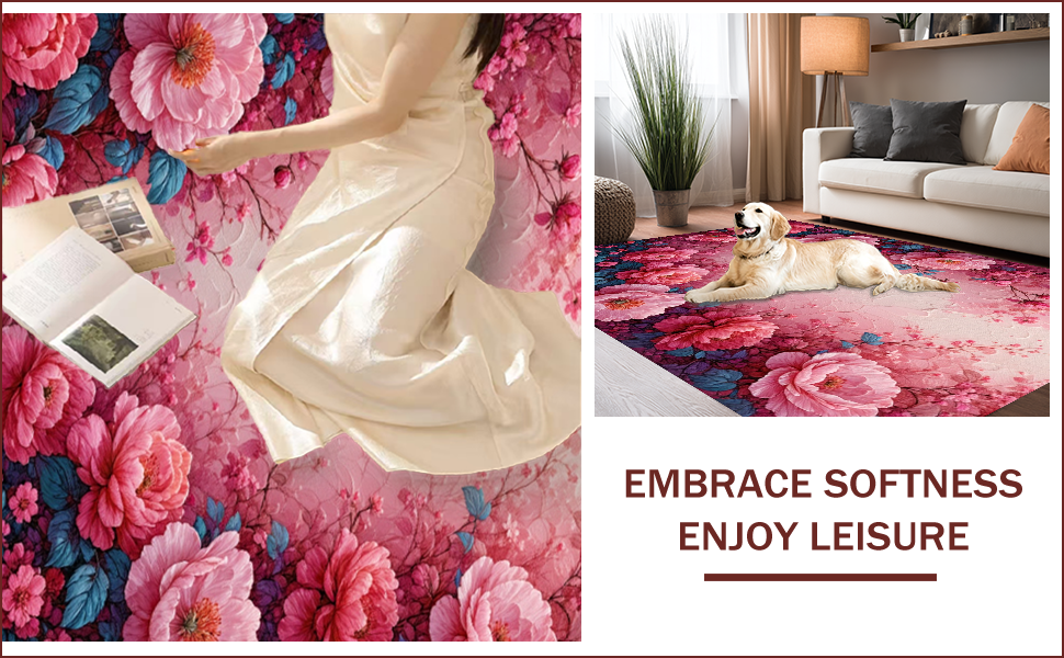 Ultra Soft Area Rug, Non Slip, Stain Resistant, Washable Area Rugs for Living Room, Bedroom, Charming Floral Pink Bathroom Carpet for Home Spa(Pink) Overview: