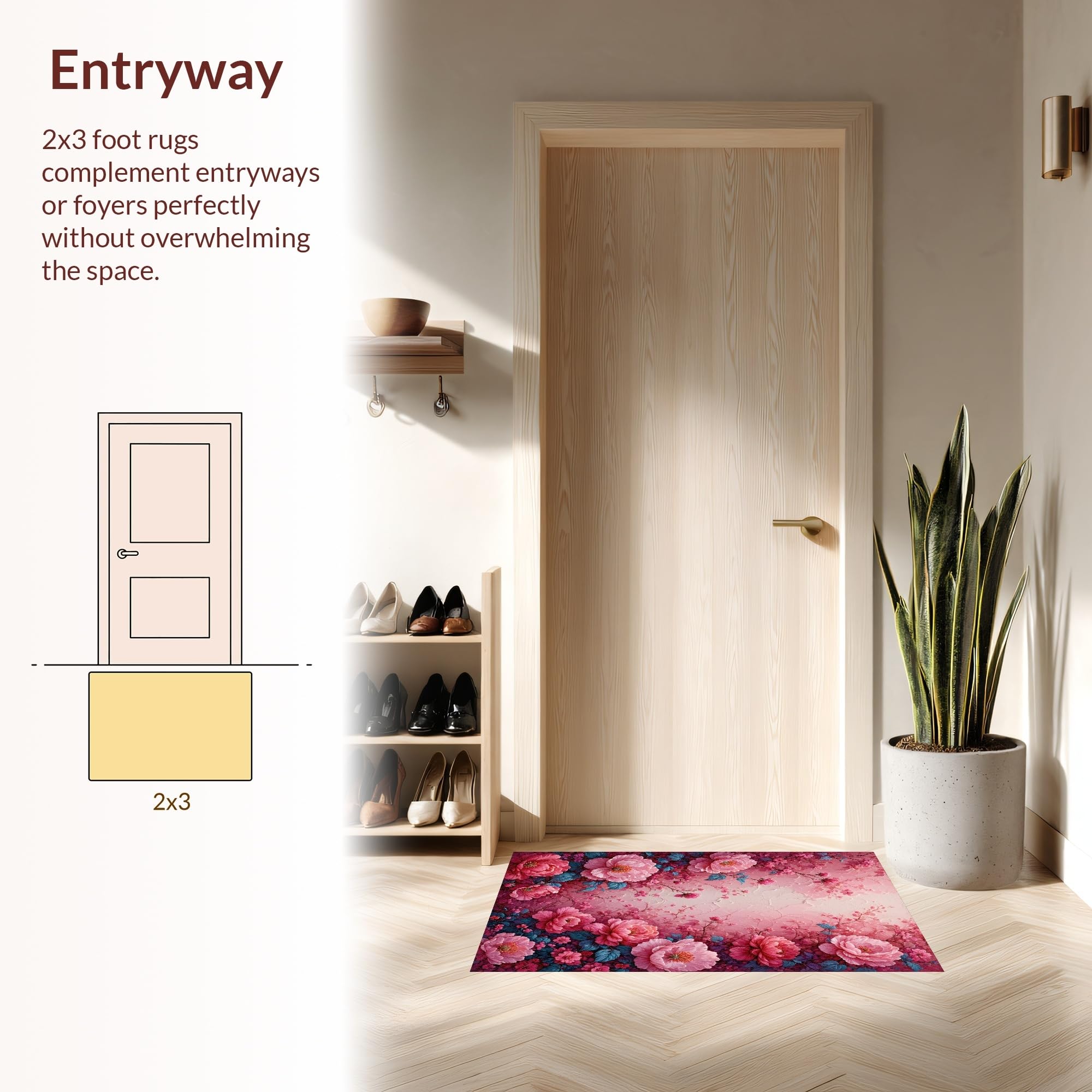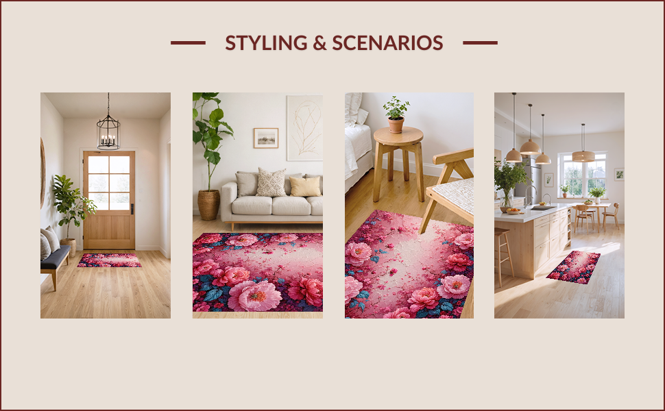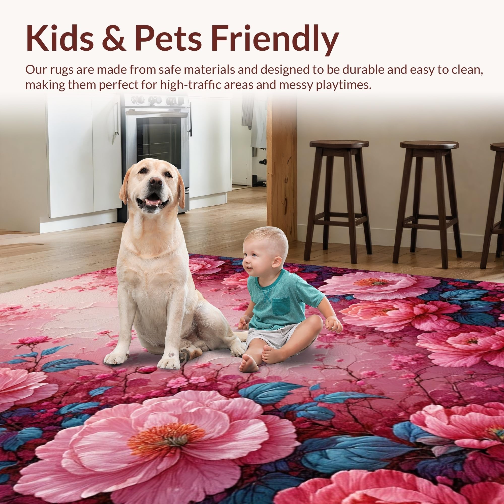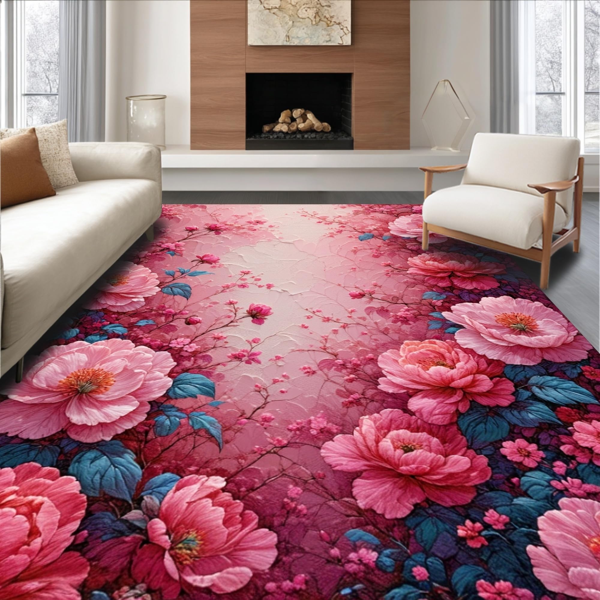 Ultra Soft Area Rug, Non Slip, Stain Resistant, Washable Area Rugs for Living Room, Bedroom, Charming Floral Pink Bathroom Carpet for Home Spa(Pink) Overview: