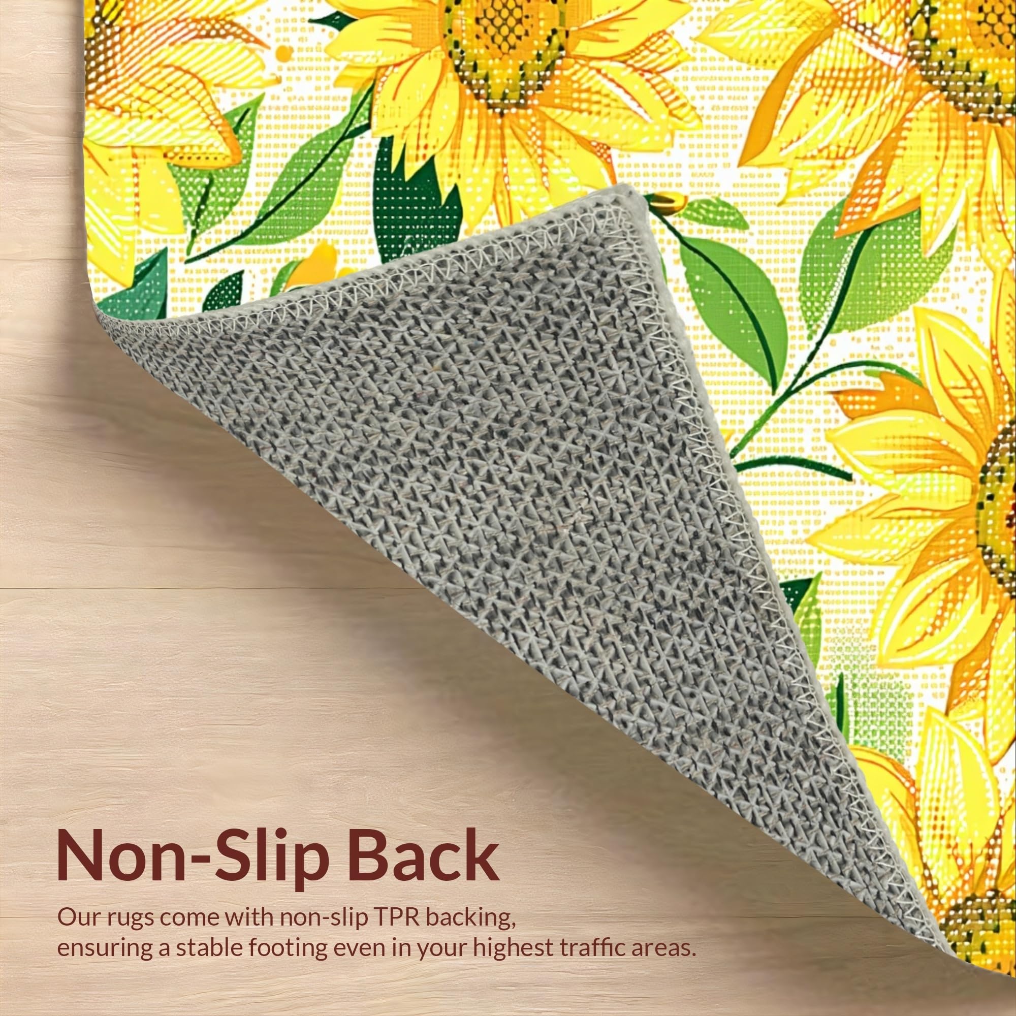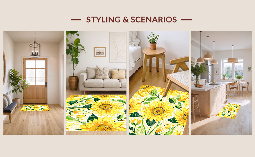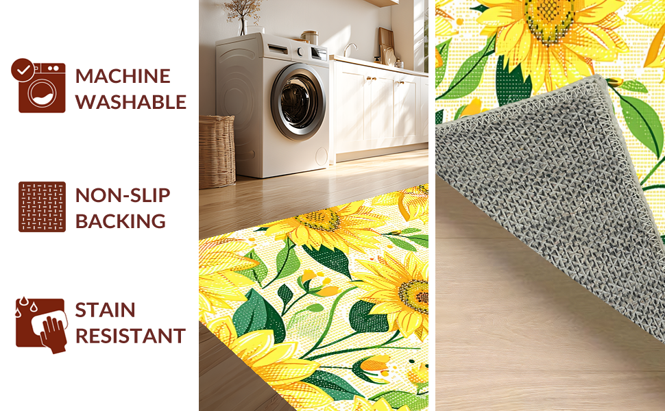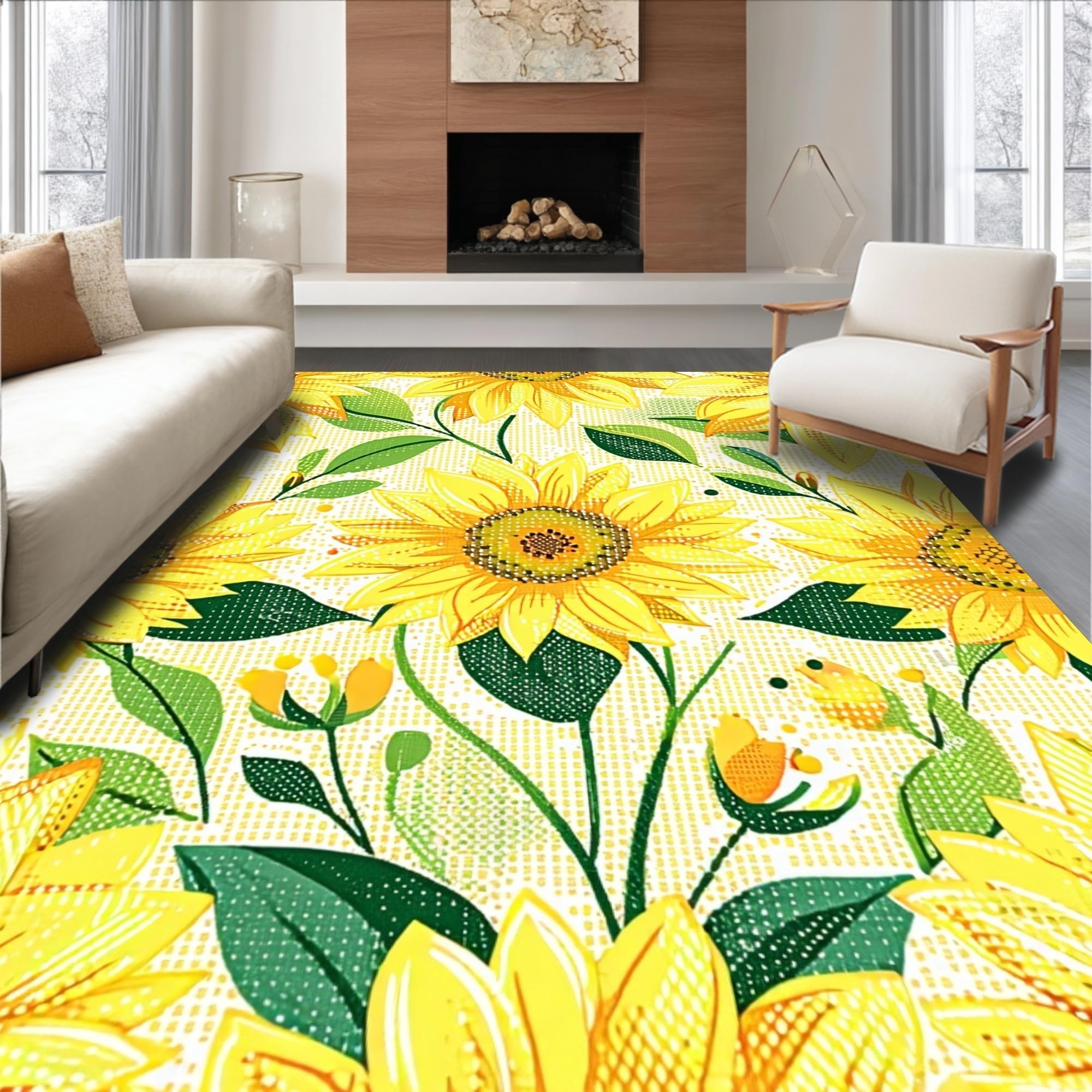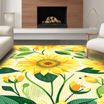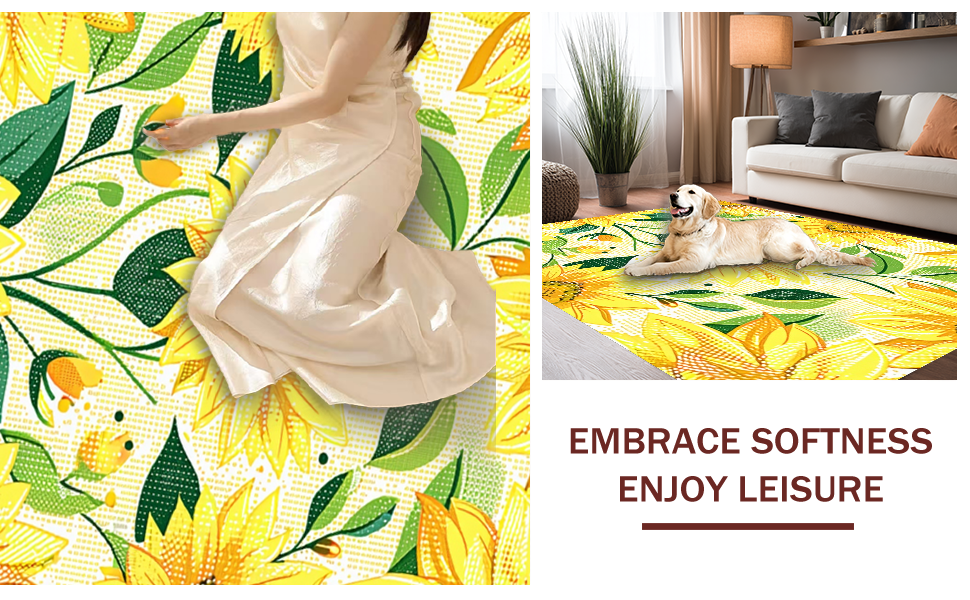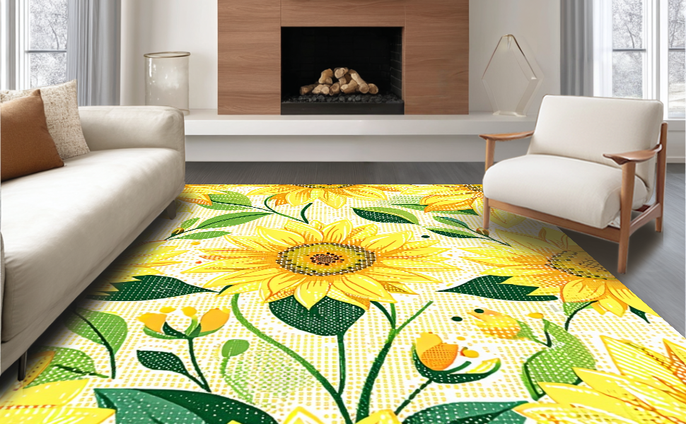 Ultra Soft Area Rug, Non Slip, Stain Resistant, Washable Area Rugs for Living Room, Bedroom, Charming Floral Sunburst Aesthetic(Yellow) Overview: