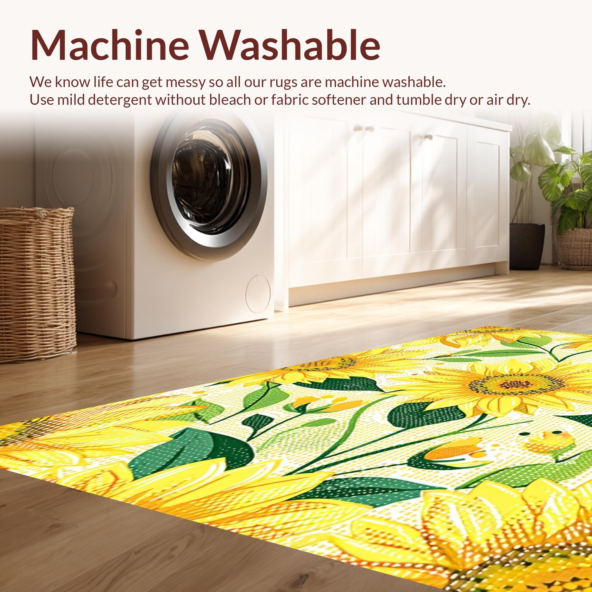 - Machine Washable: Our rugs can be easily thrown in the wash machine.