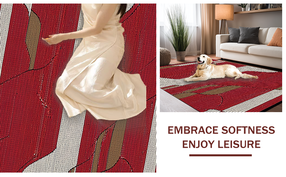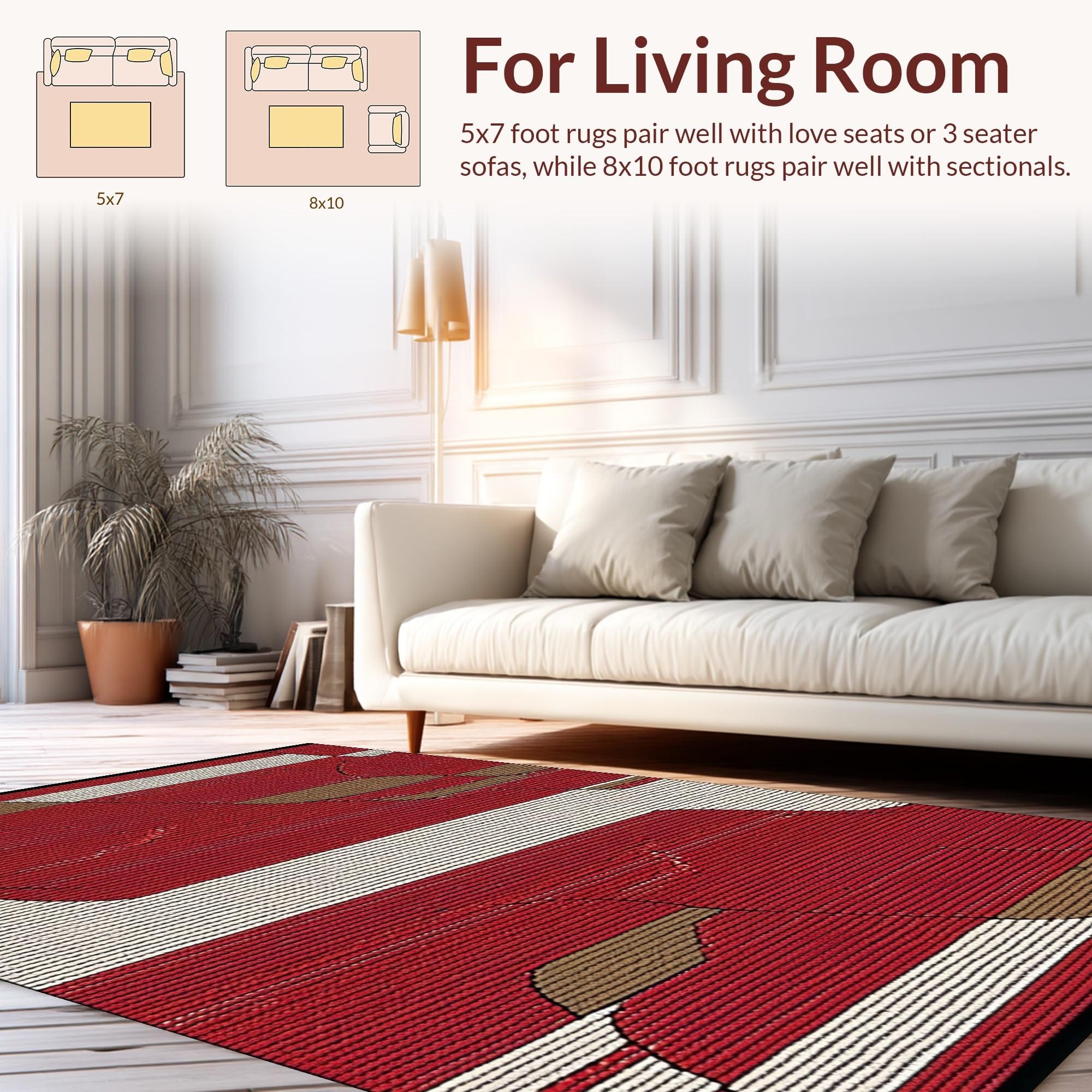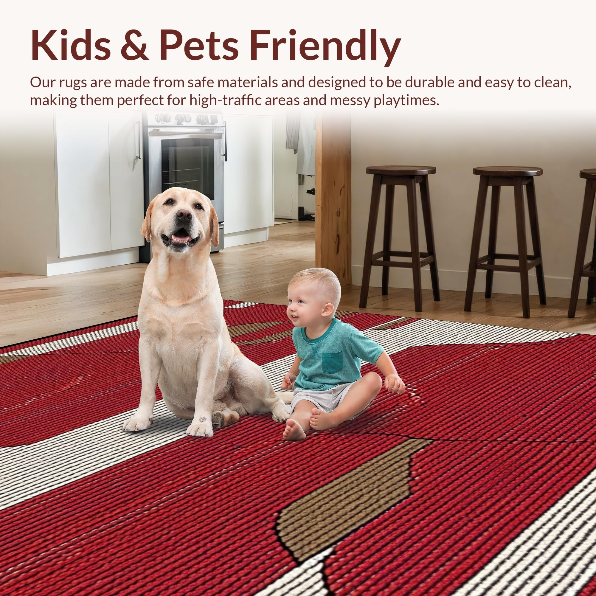 Ultra Soft Area Rug, Non Slip, Stain Resistant, Washable Area Rugs for Living Room, Bedroom, Charming Fun Sports Illustration(Red) Overview: