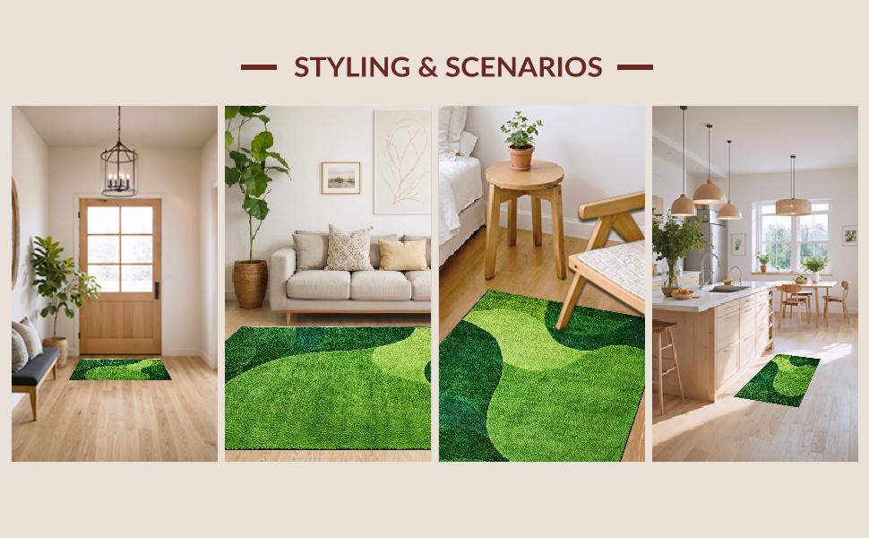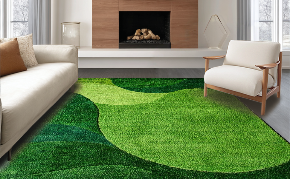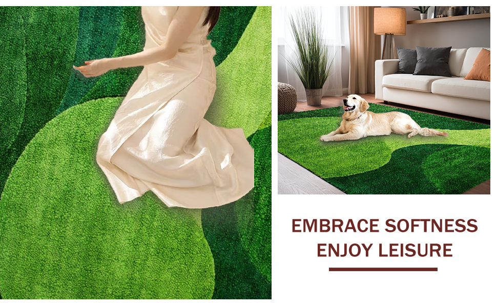 Ultra Soft Area Rug, Non Slip, Stain Resistant, Washable Area Rugs for Living Room, Bedroom, Charming Furry Moss Aesthetic(Green) Overview: