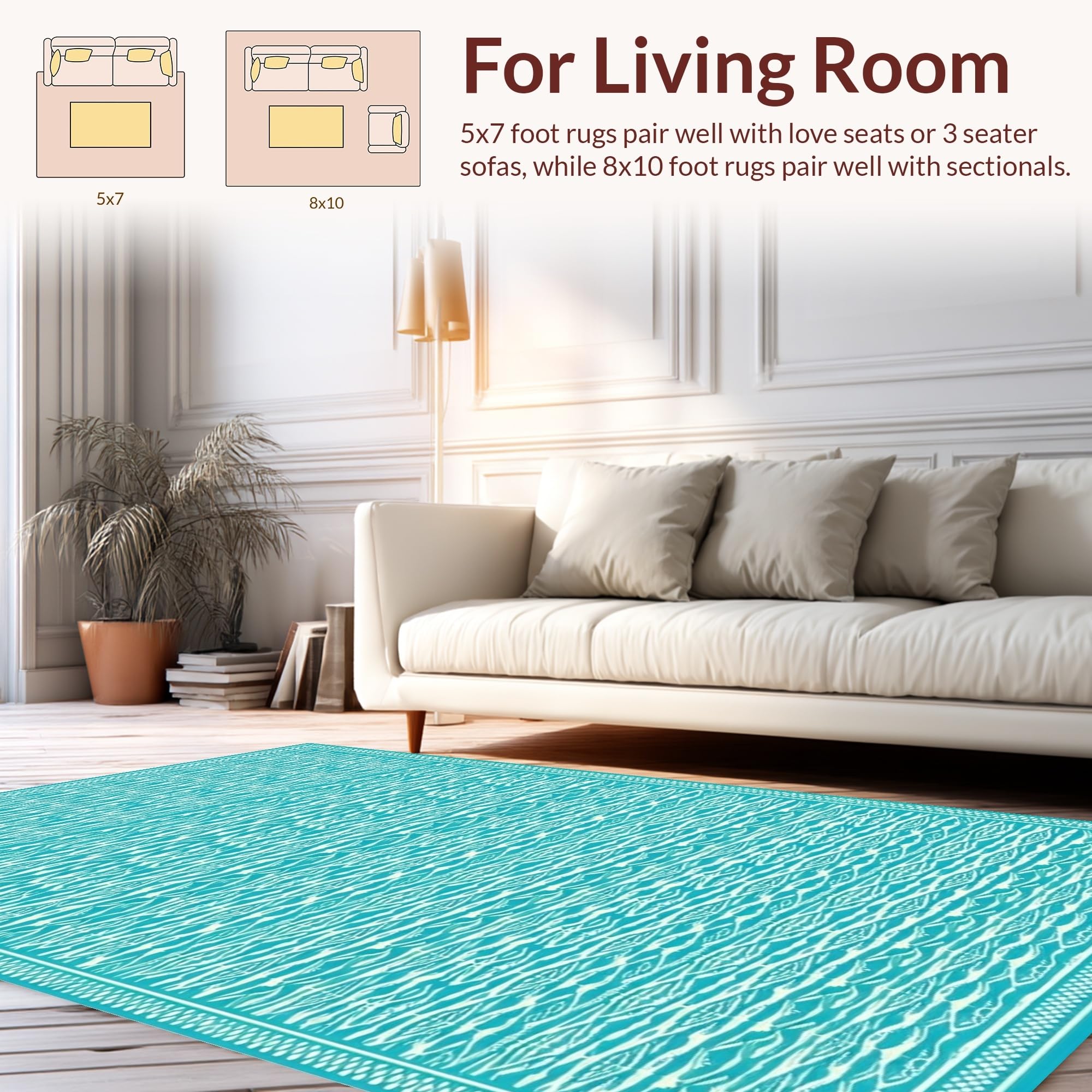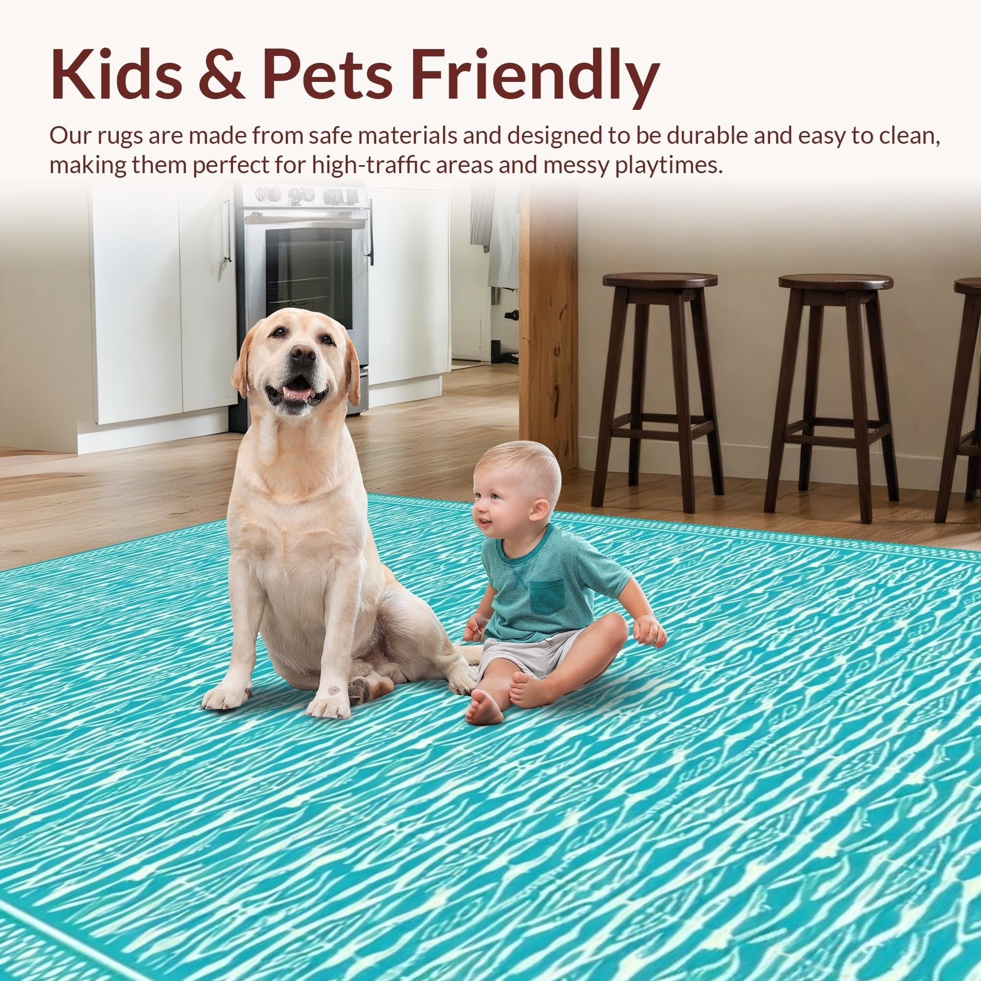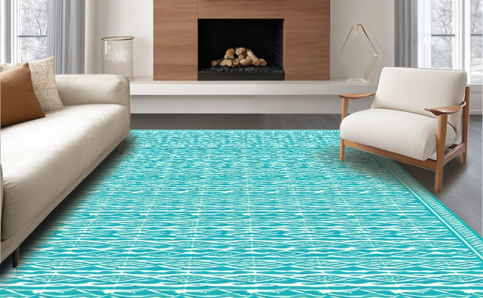 Ultra Soft Area Rug, Non Slip, Stain Resistant, Washable Area Rugs for Living Room, Bedroom, Charming Graphic Oceanic Style(Blue) Overview:
