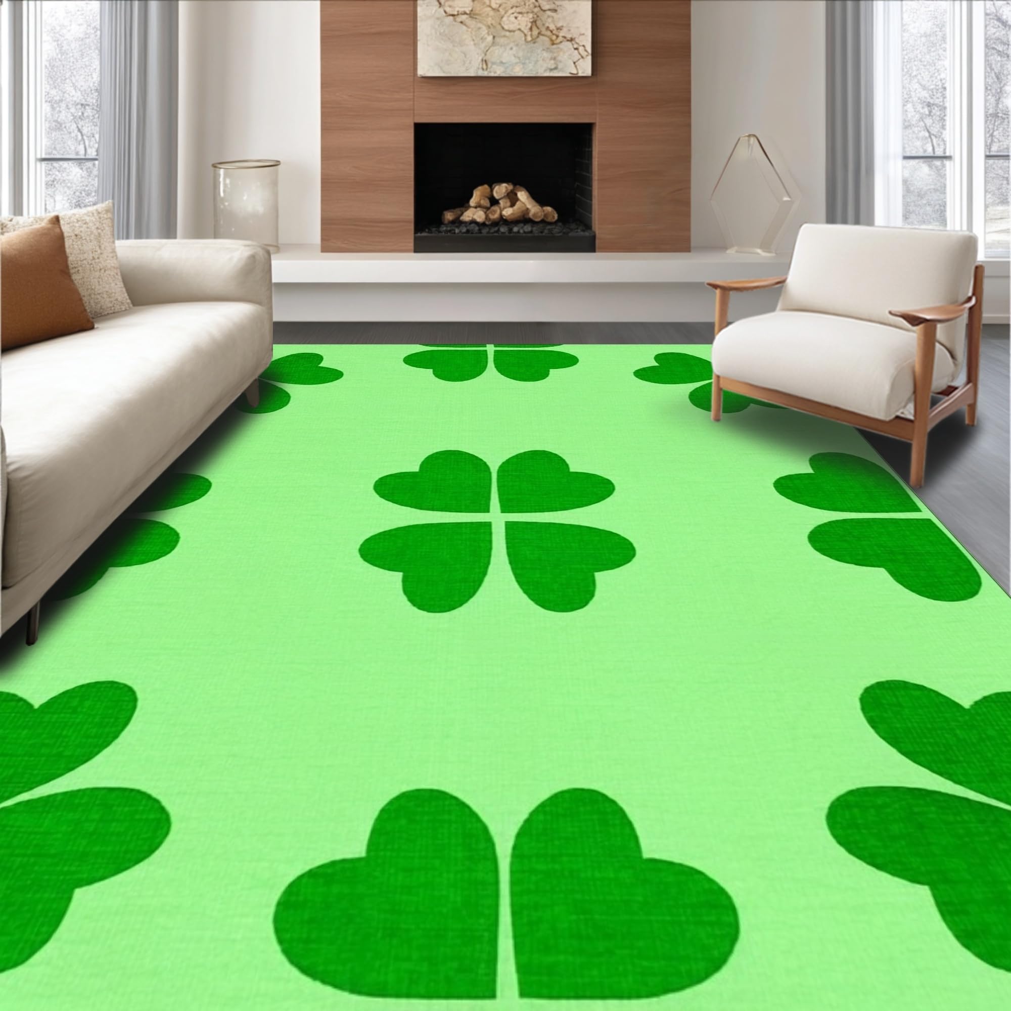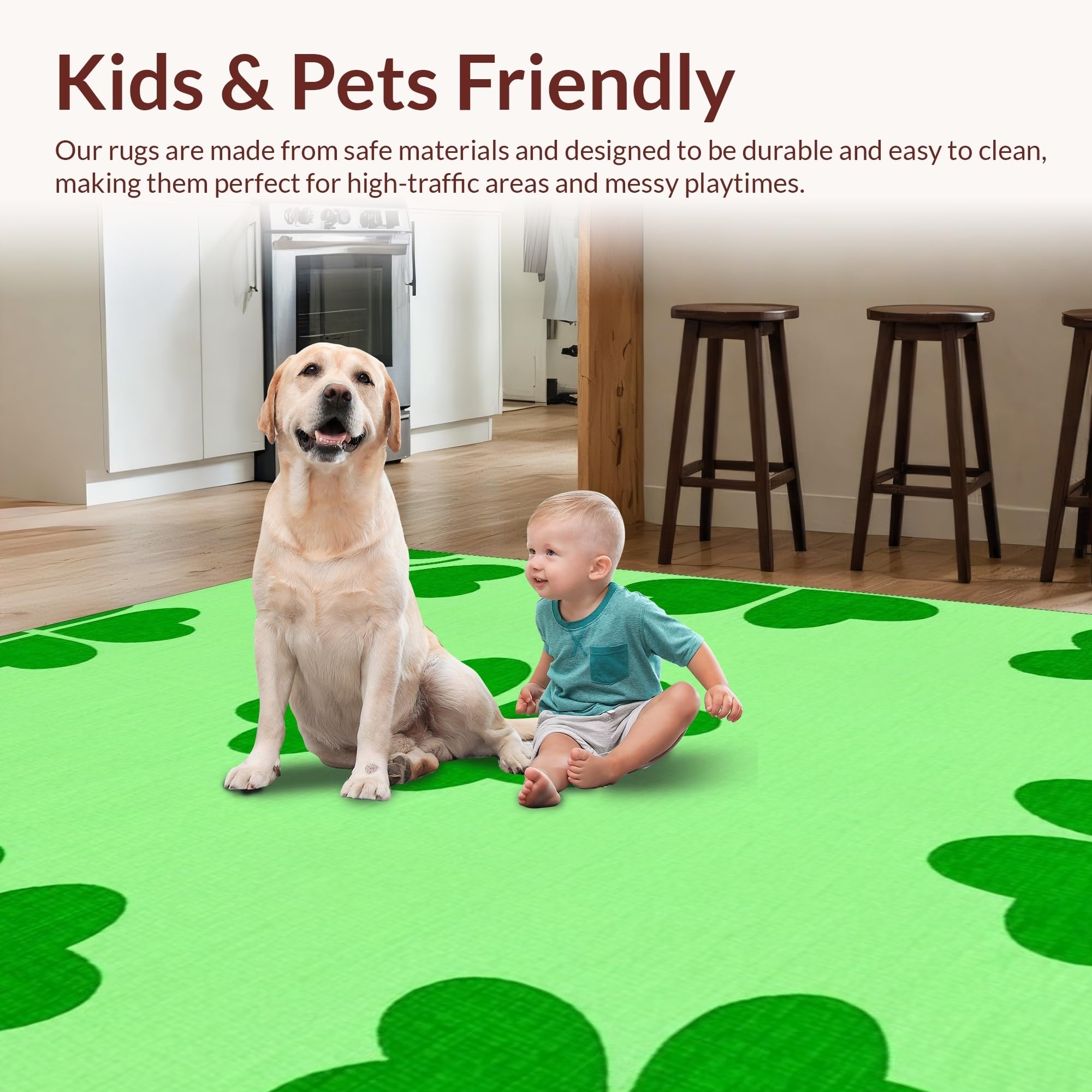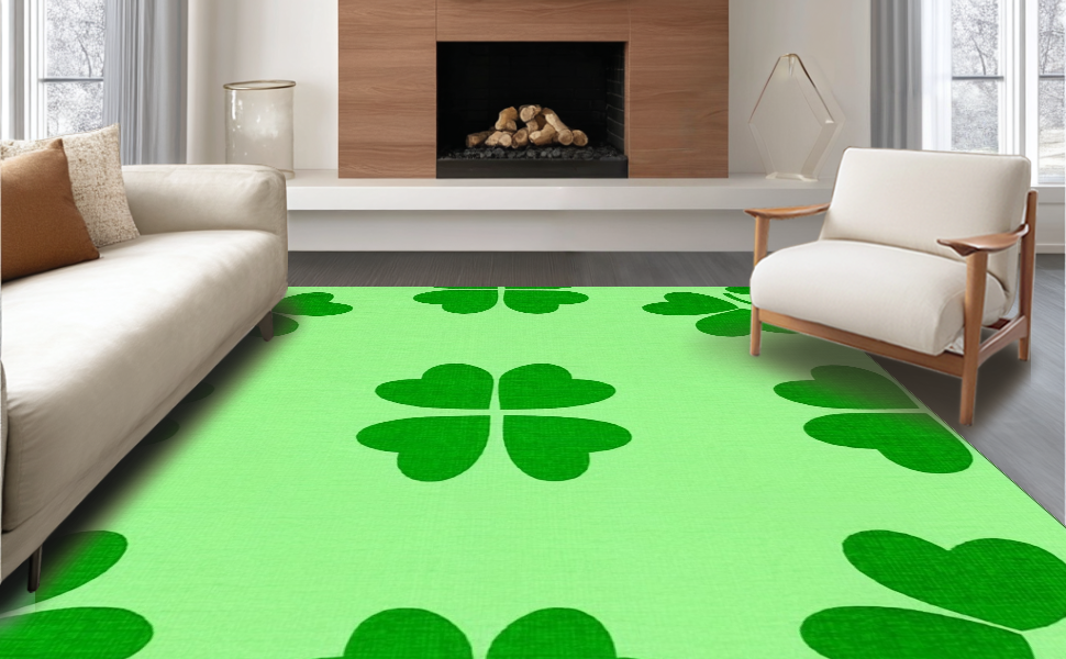 Ultra Soft Area Rug, Non Slip, Stain Resistant, Washable Area Rugs for Living Room, Bedroom, Charming Green Clover Aesthetic(Green) Overview: