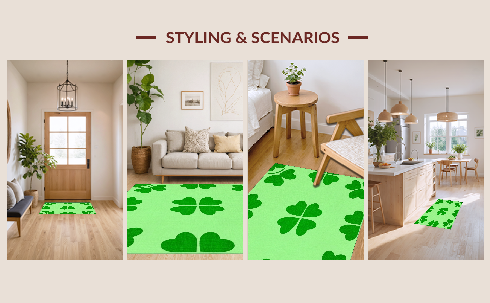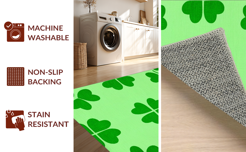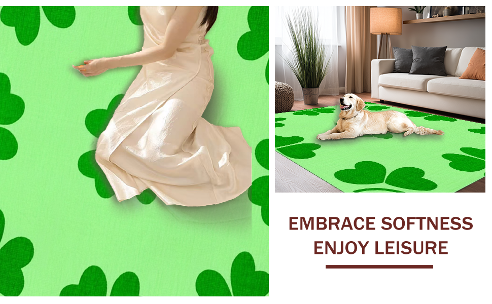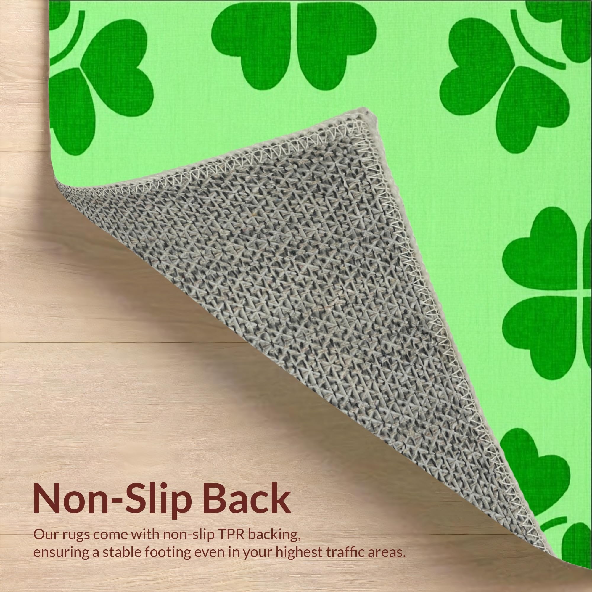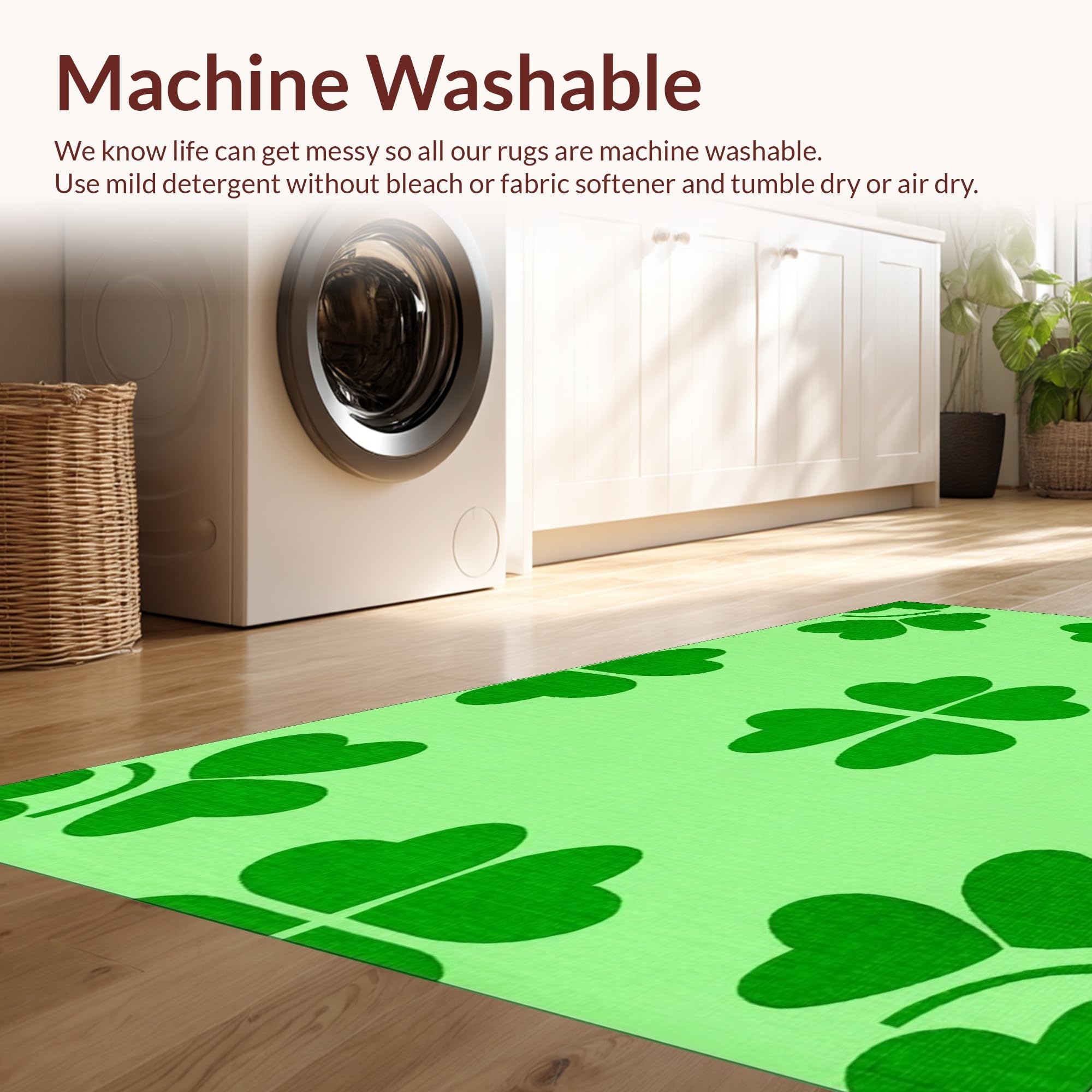 Ultra Soft Area Rug, Non Slip, Stain Resistant, Washable Area Rugs for Living Room, Bedroom, Charming Green Clover Aesthetic(Green) Overview: