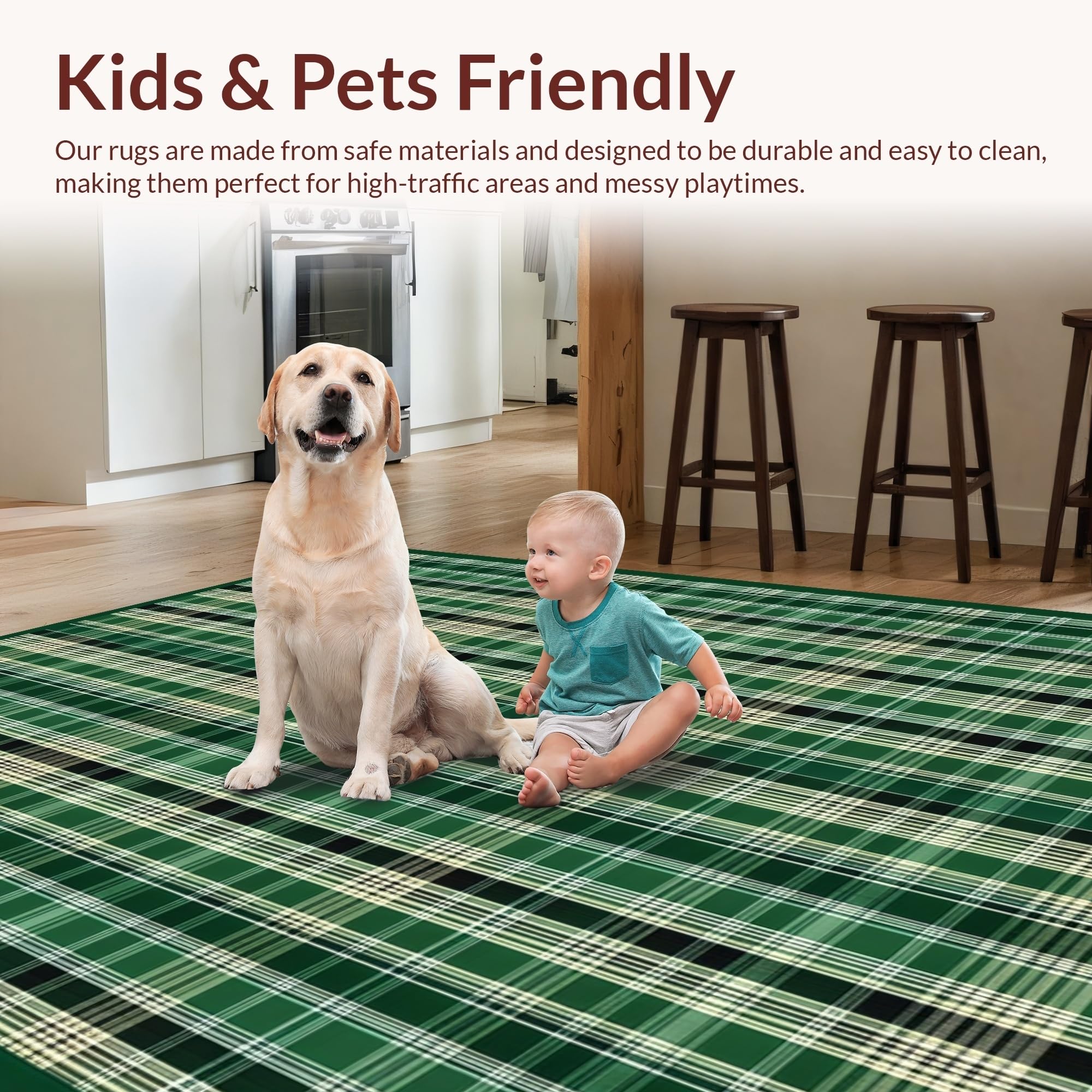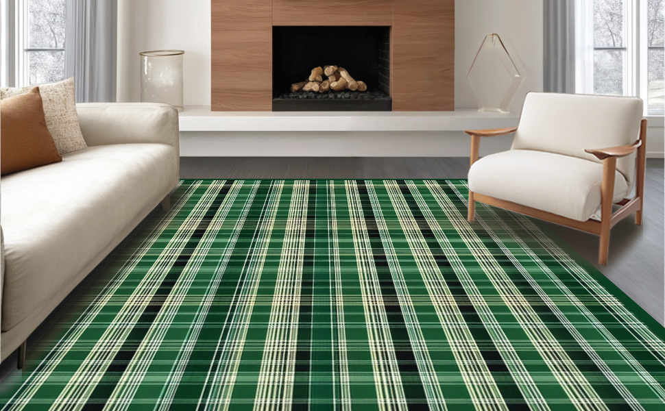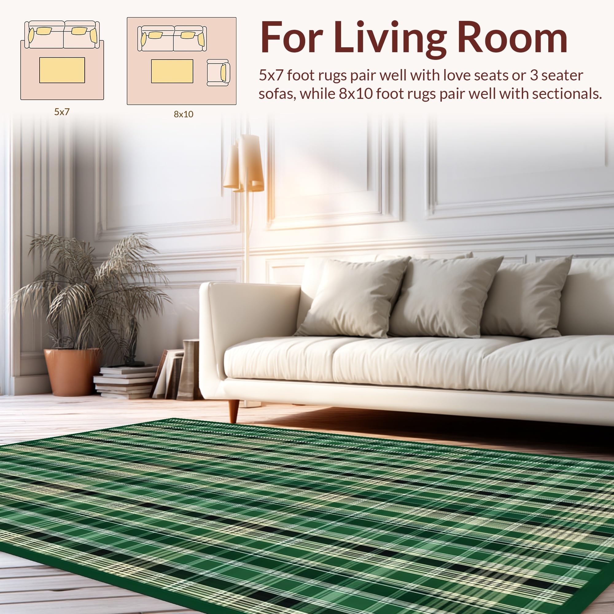 Ultra Soft Area Rug, Non Slip, Stain Resistant, Washable Area Rugs for Living Room, Bedroom, Charming Green Diamond Layout(Green) Overview: