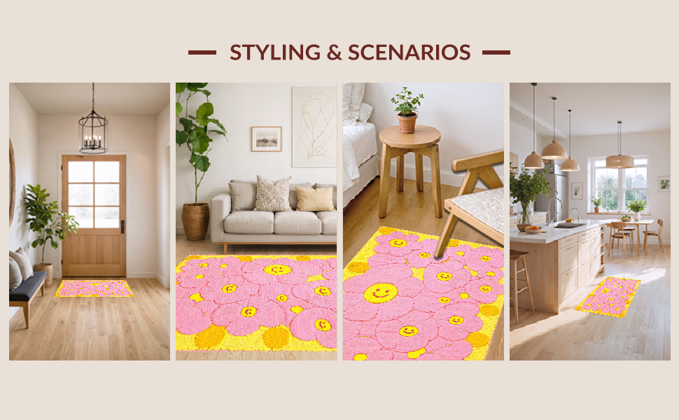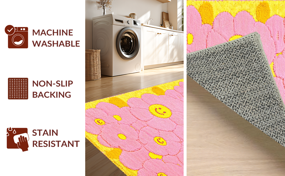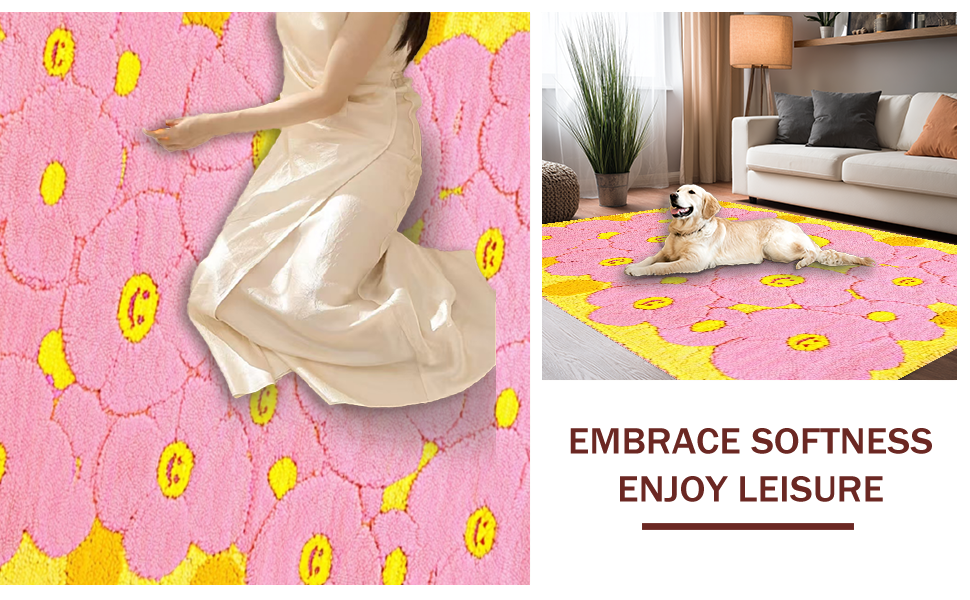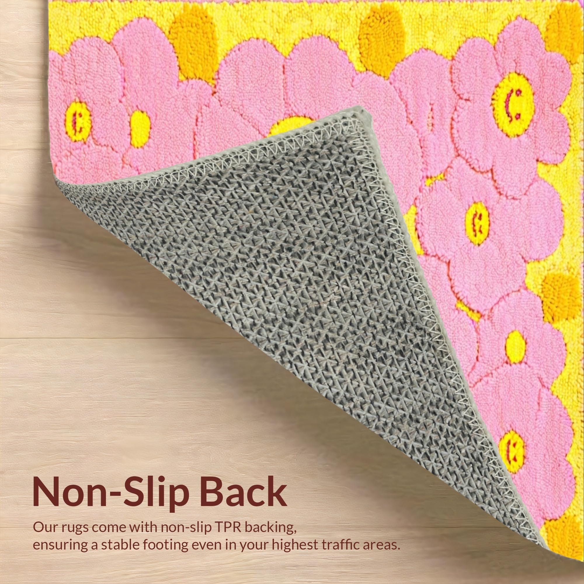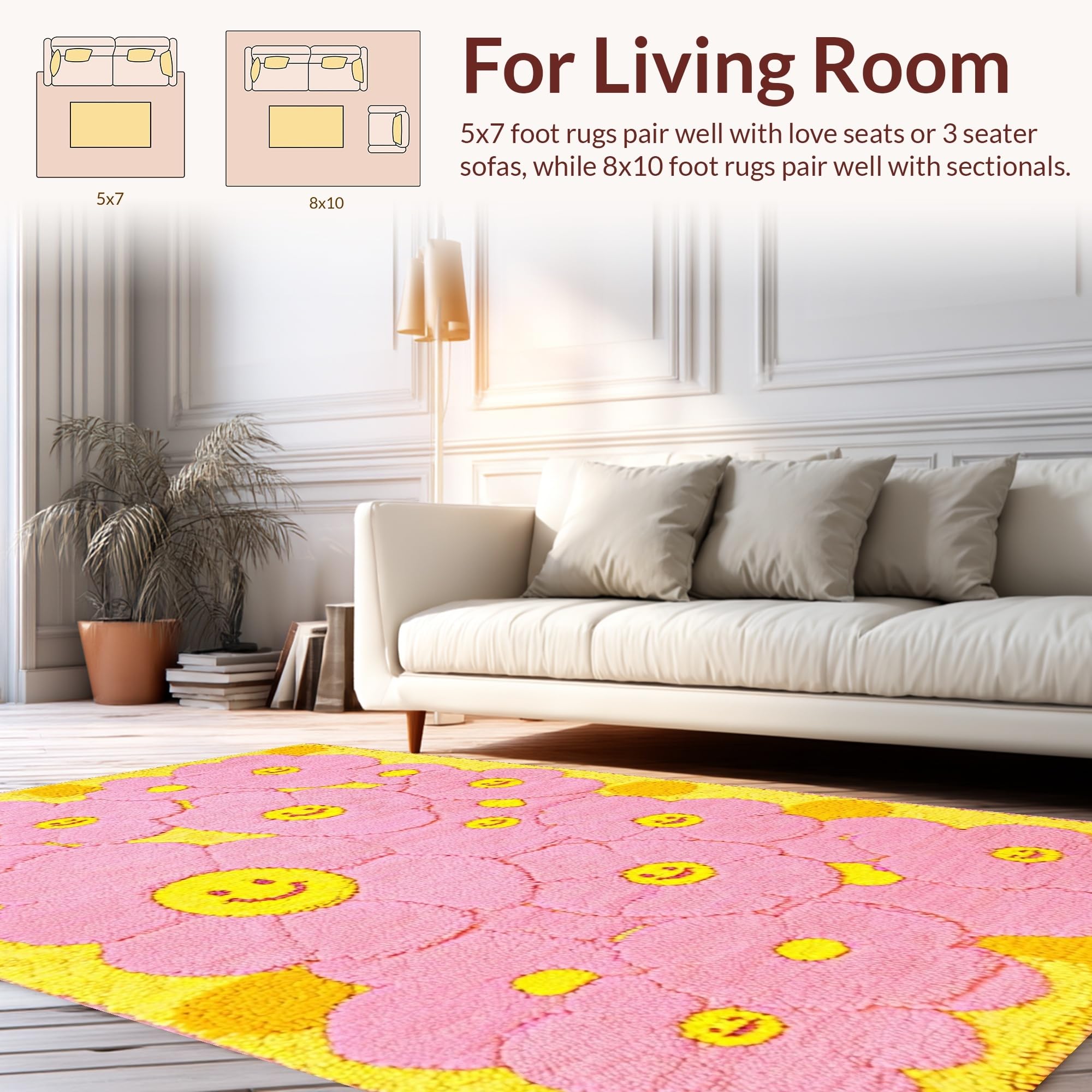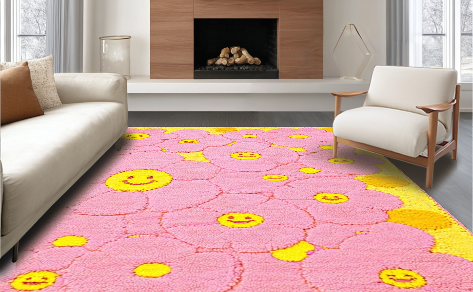 Ultra Soft Area Rug, Non Slip, Stain Resistant, Washable Area Rugs for Living Room, Bedroom, Charming Happy Face Design(Pink) Overview: