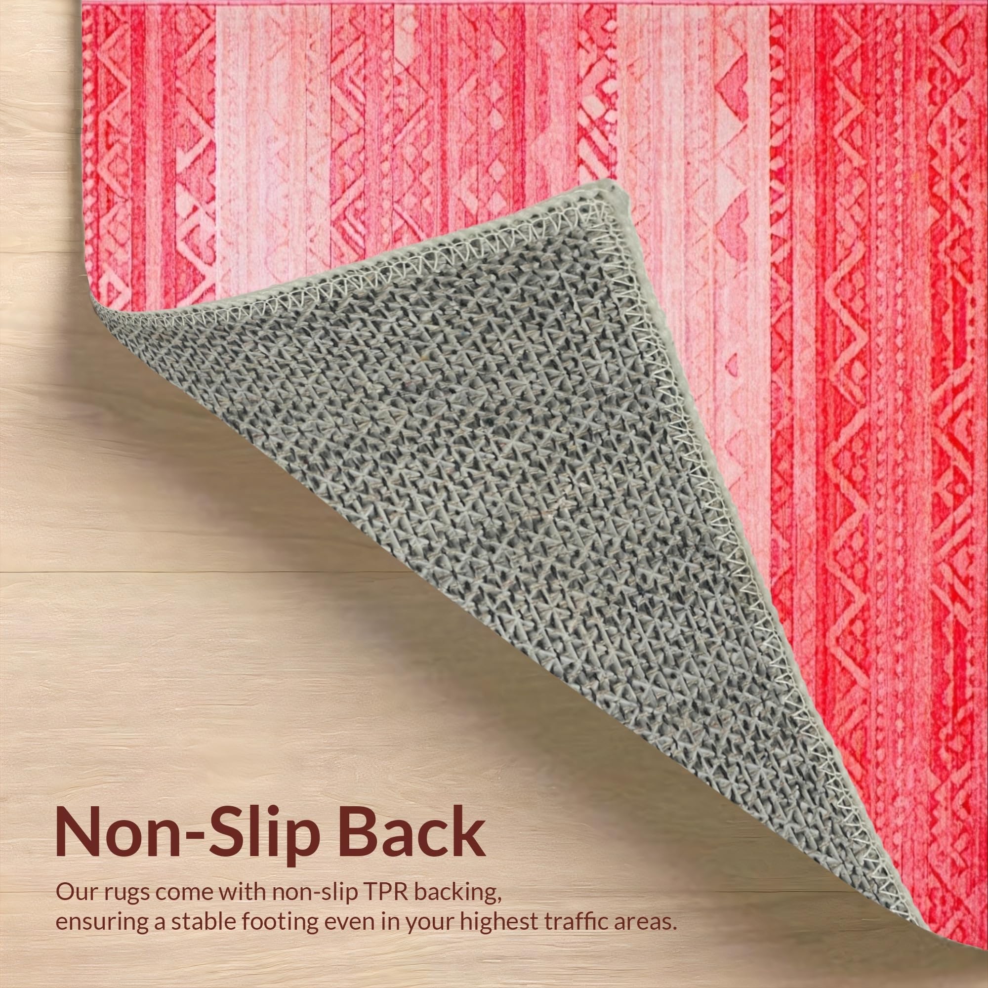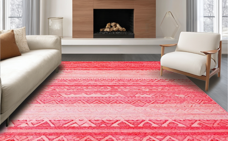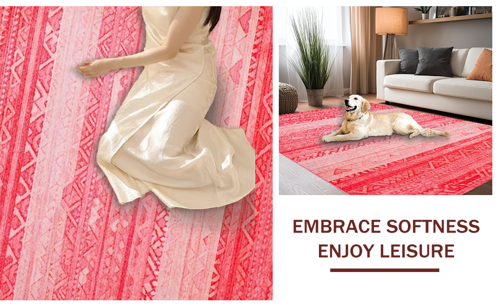 Ultra Soft Area Rug, Non Slip, Stain Resistant, Washable Area Rugs for Living Room, Bedroom, Charming Heart Motif in Red(Red) Overview: