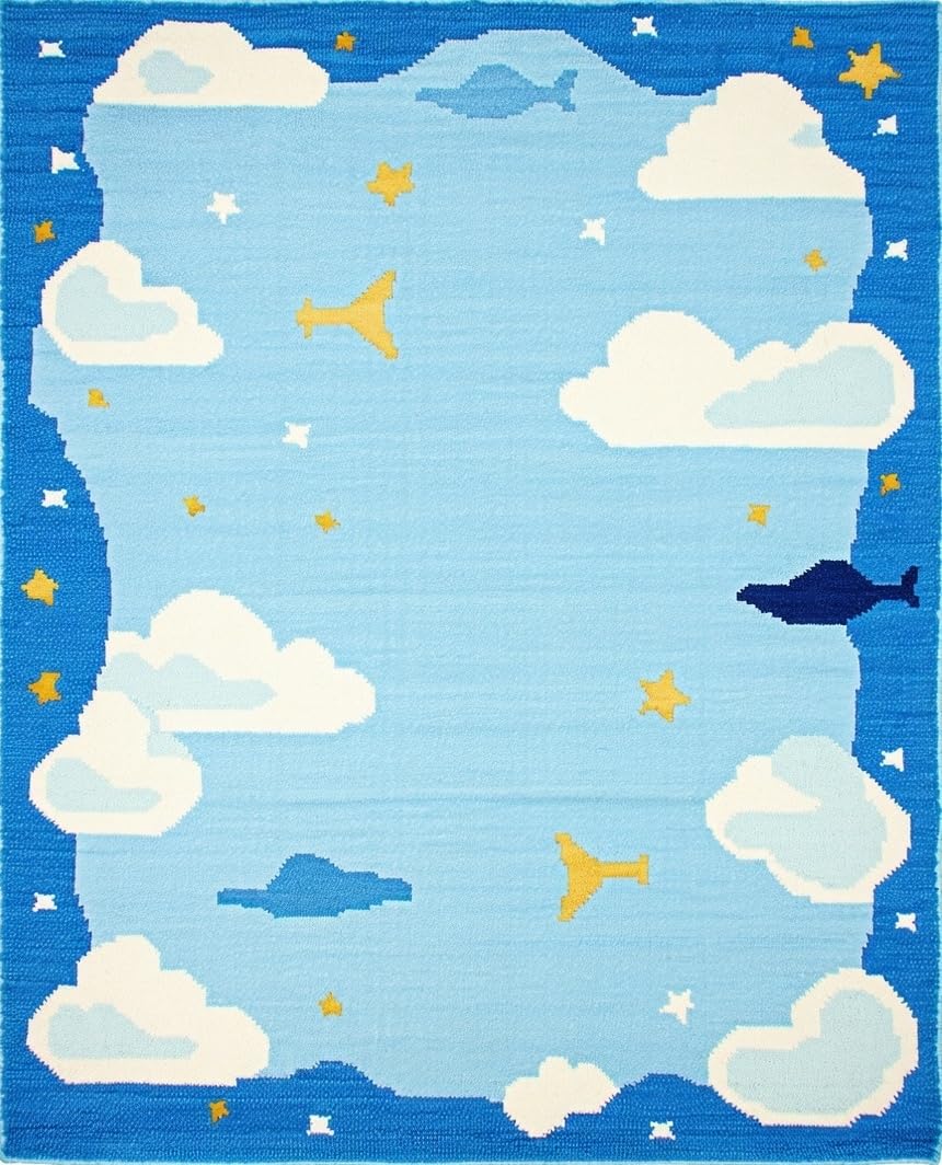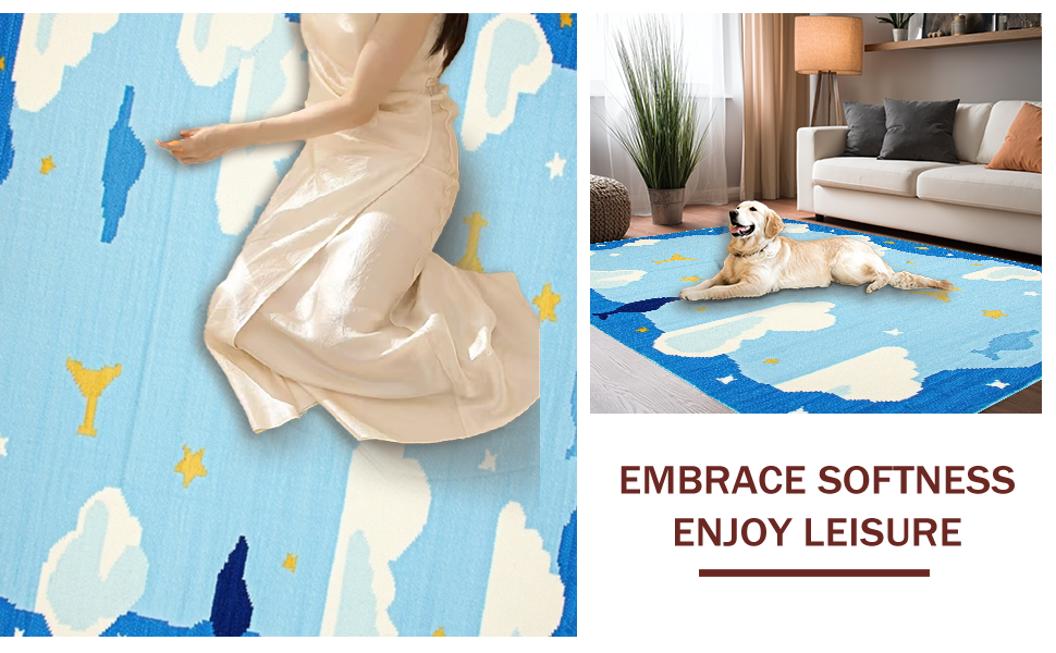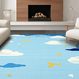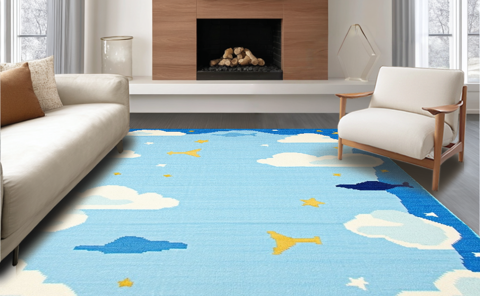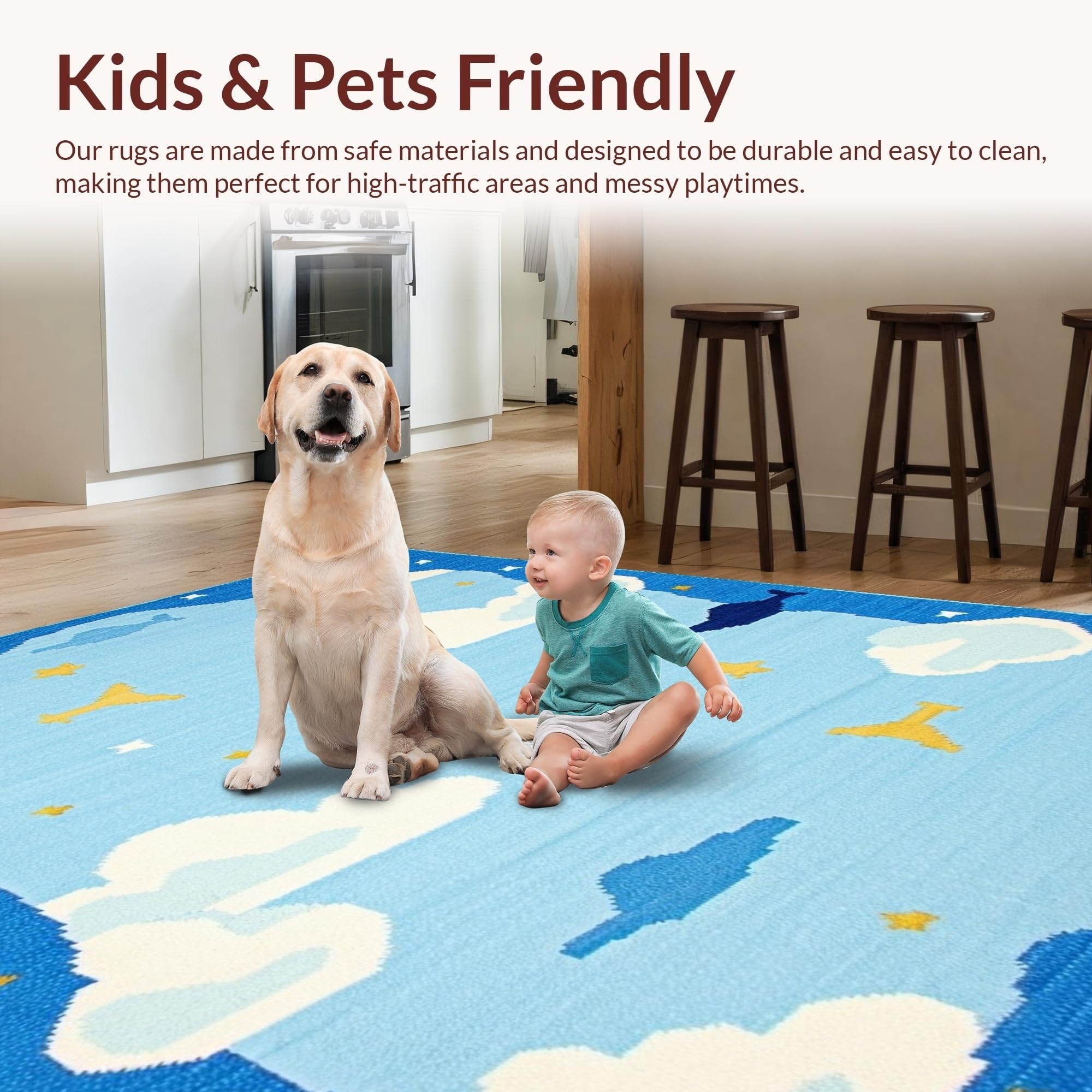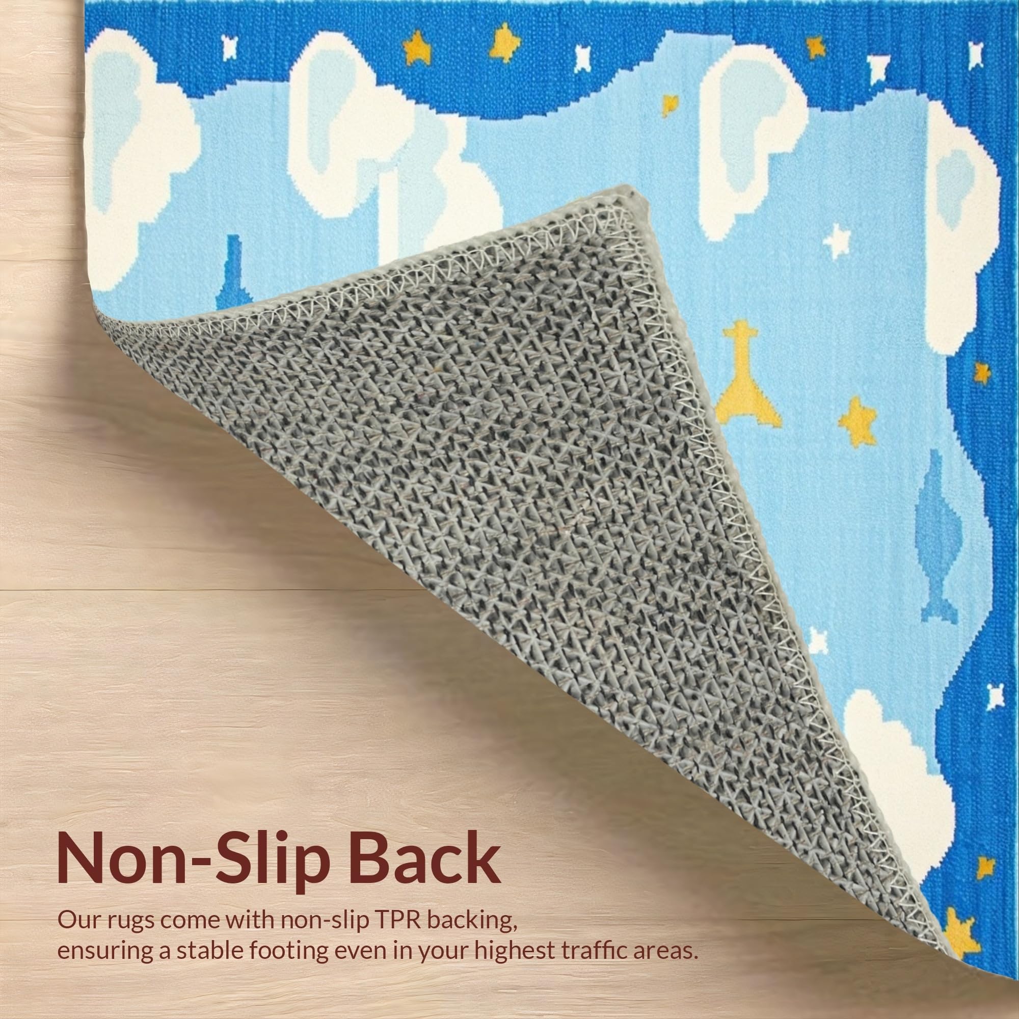 Ultra Soft Area Rug, Non Slip, Stain Resistant, Washable Area Rugs for Living Room, Bedroom, Charming Hot Air Balloon Adventure(Blue) Overview:
