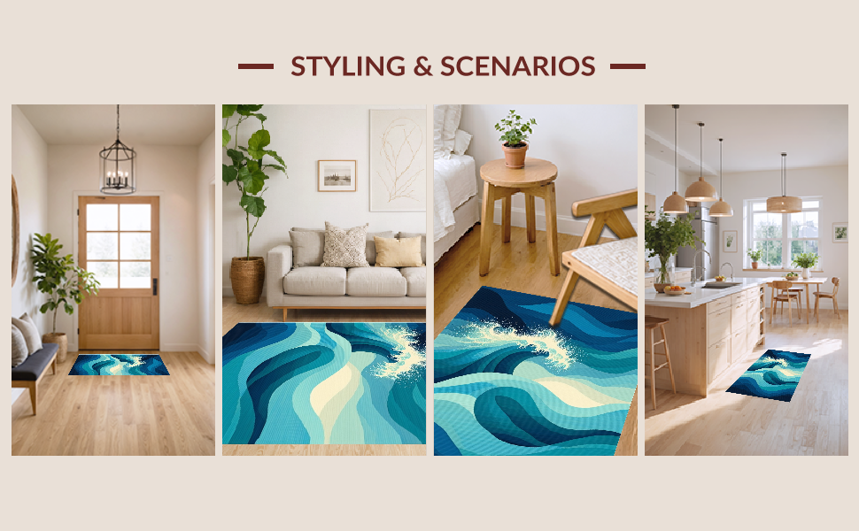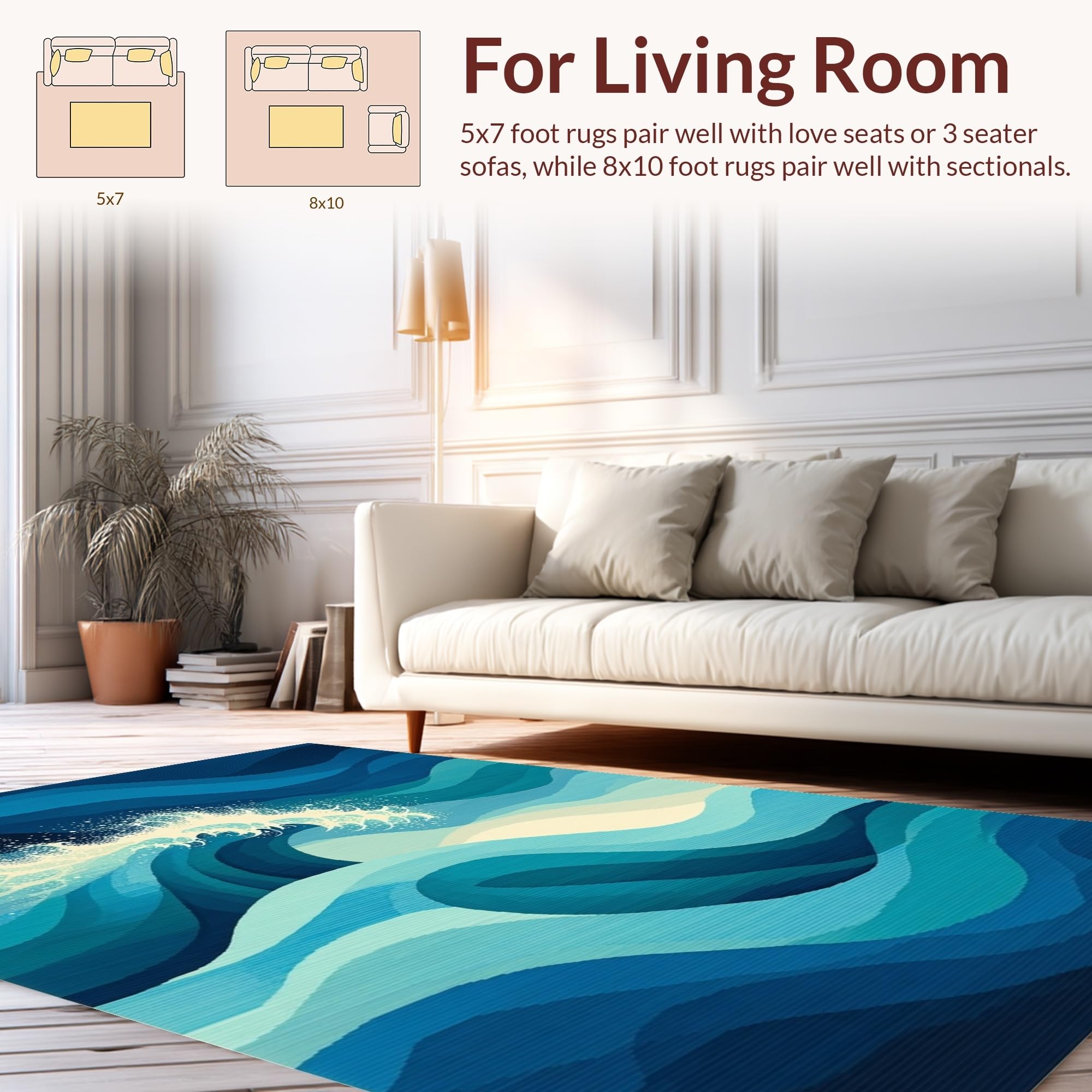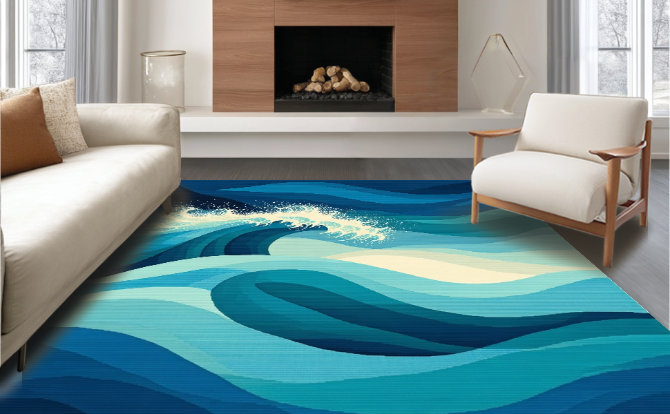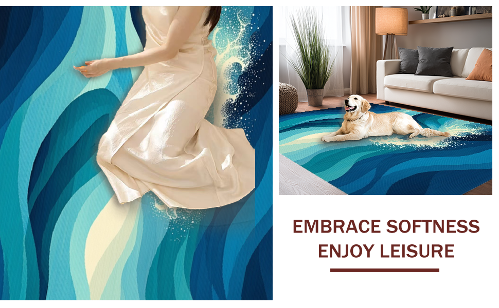 Ultra Soft Area Rug, Non Slip, Stain Resistant, Washable Area Rugs for Living Room, Bedroom, Charming Irregular Beach Pattern(Blue) Overview: