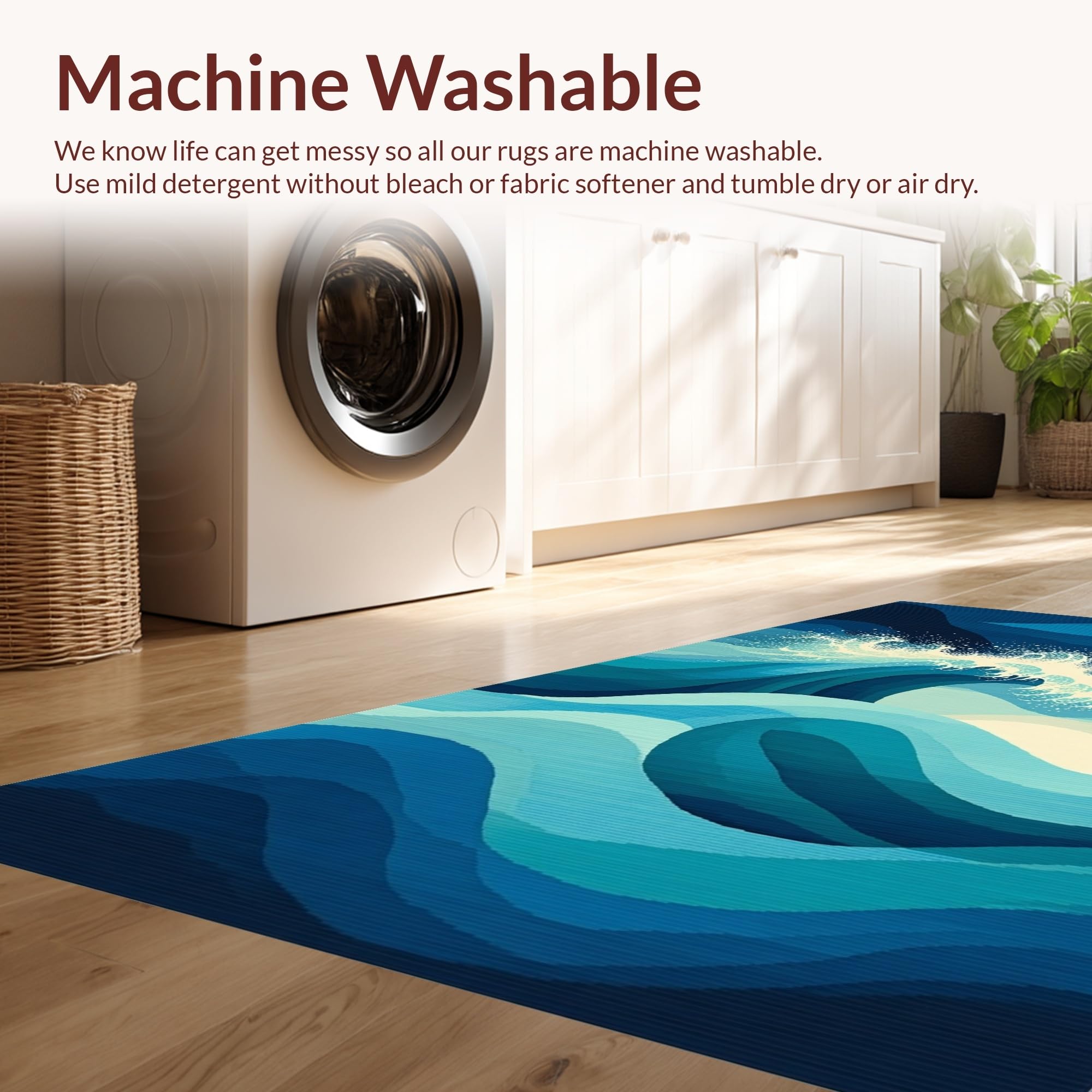 - Machine Washable: Our rugs can be easily thrown in the wash machine.