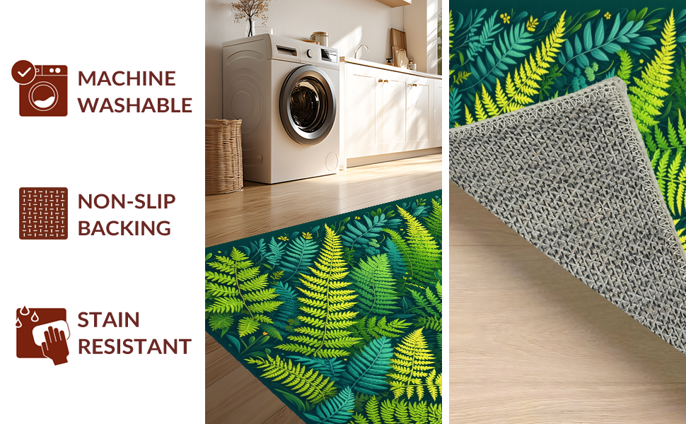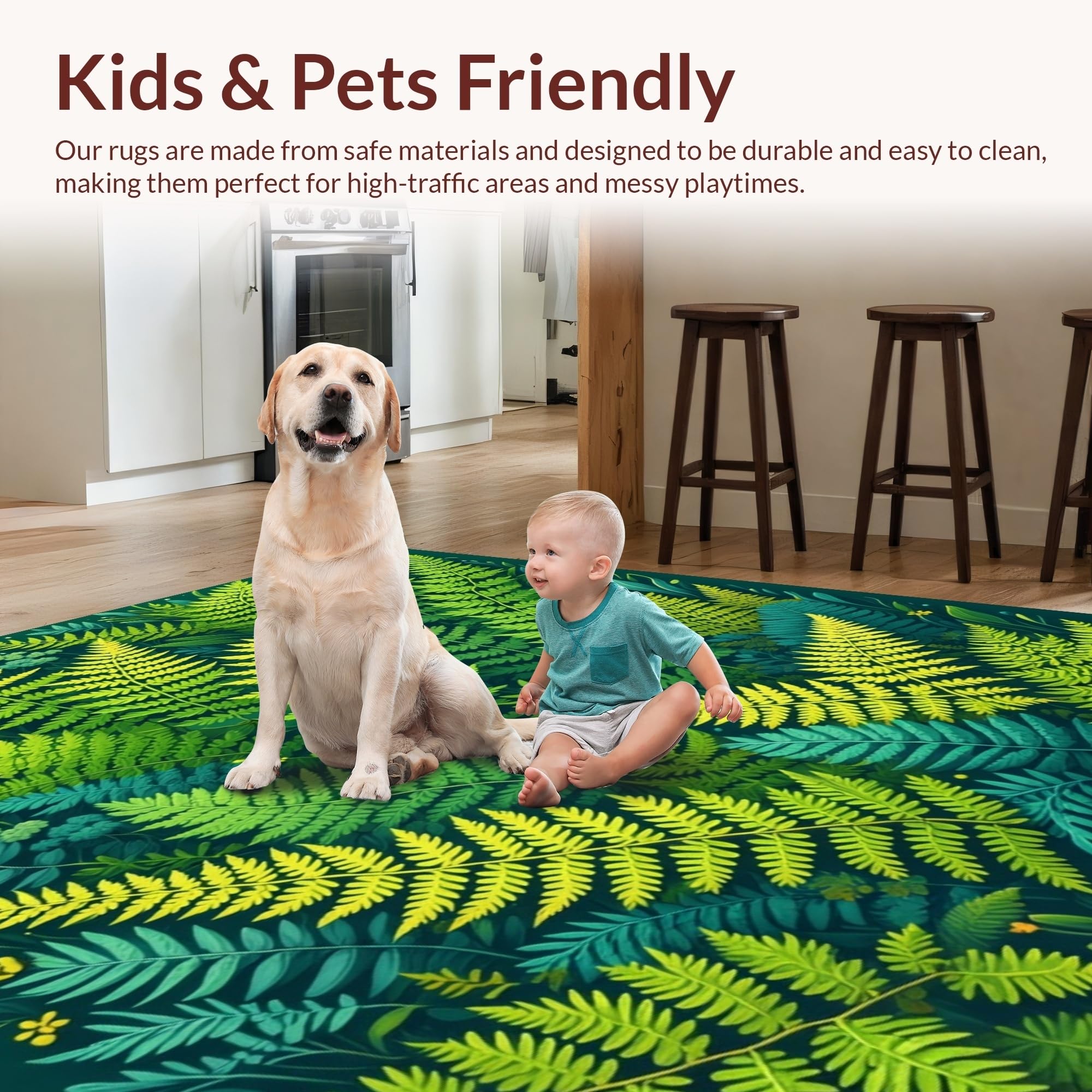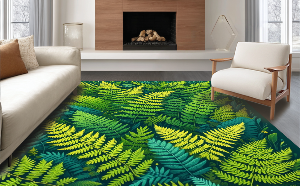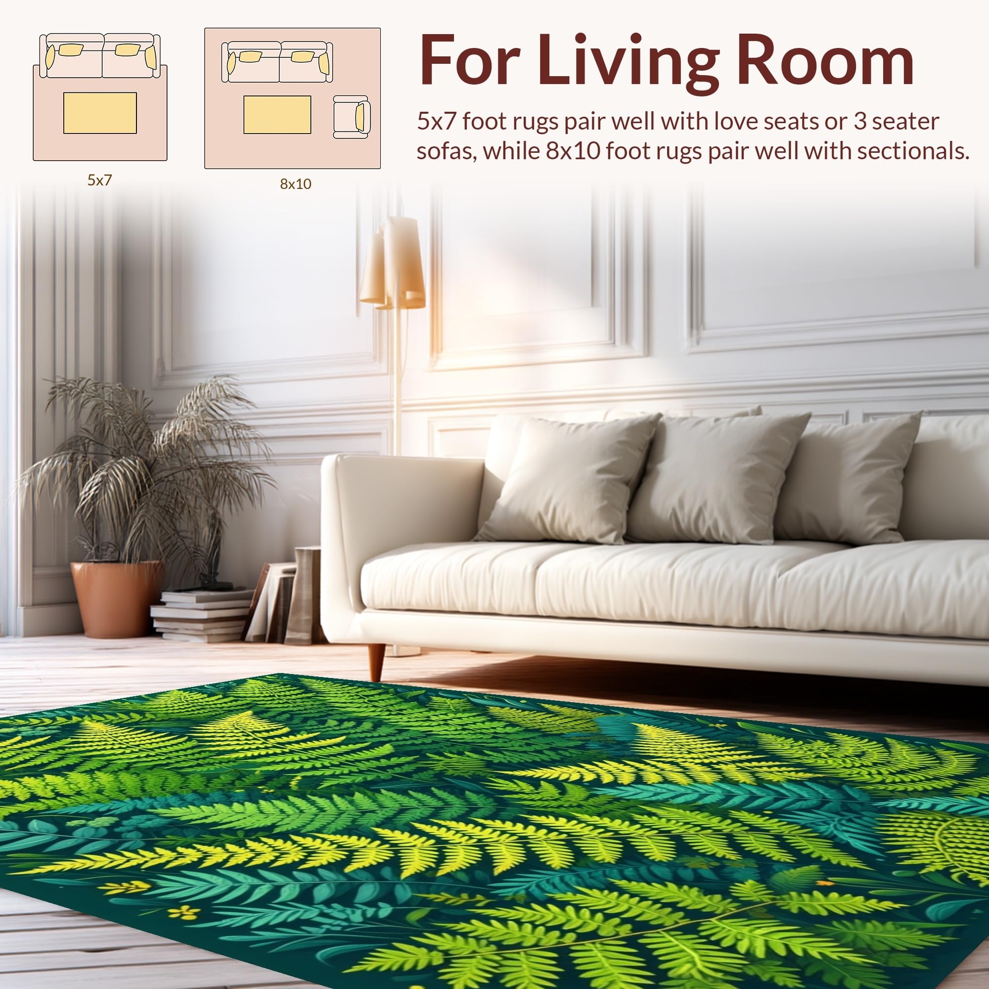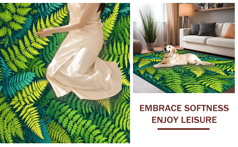 Ultra Soft Area Rug, Non Slip, Stain Resistant, Washable Area Rugs for Living Room, Bedroom, Charming Irregular Plant Motif(Green) Overview:
