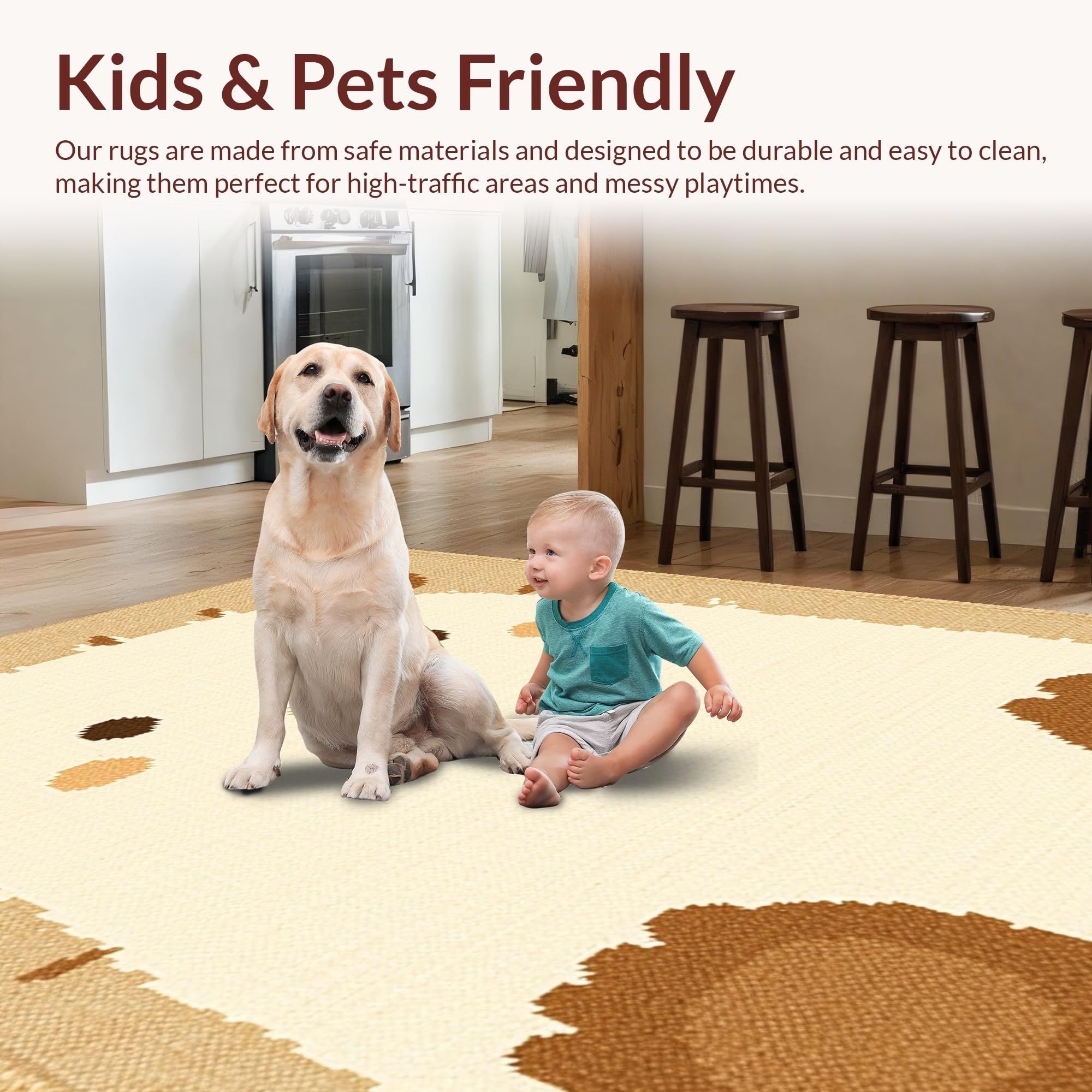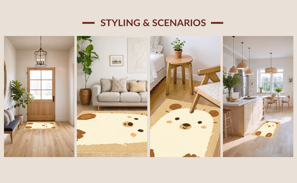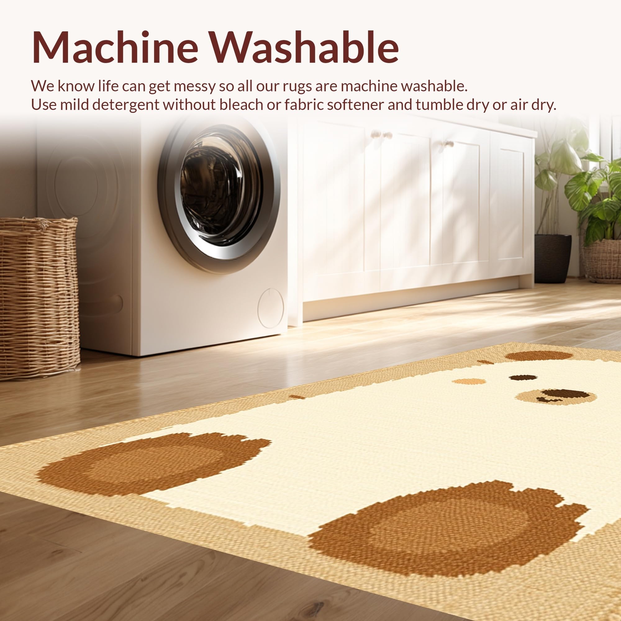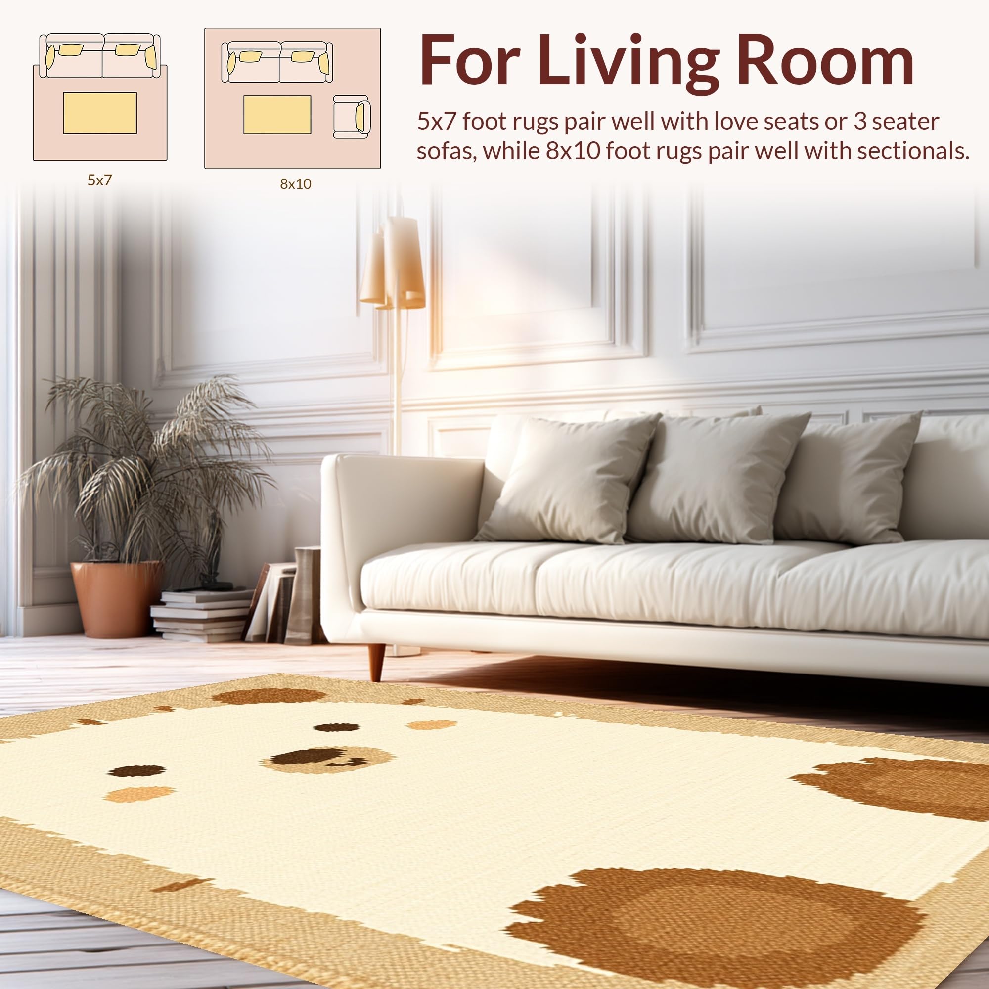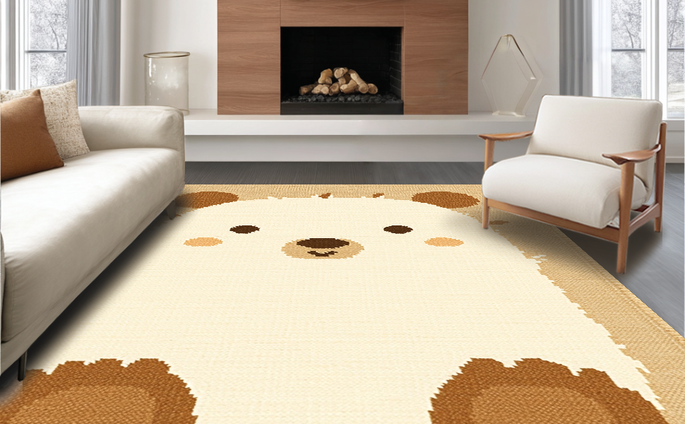 Ultra Soft Area Rug, Non Slip, Stain Resistant, Washable Area Rugs for Living Room, Bedroom, Charming Kawaii Bear Motif(Beige) Overview: